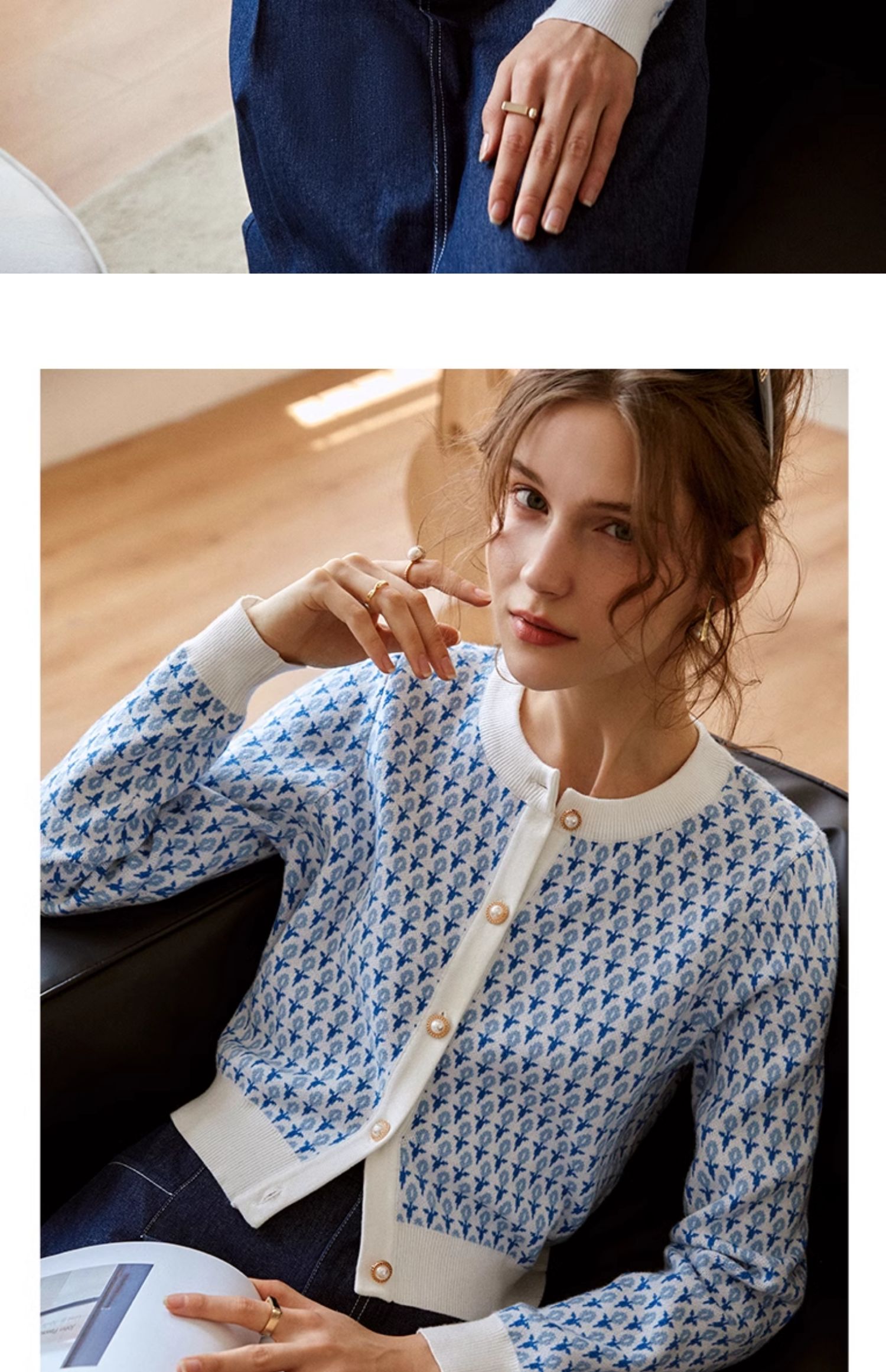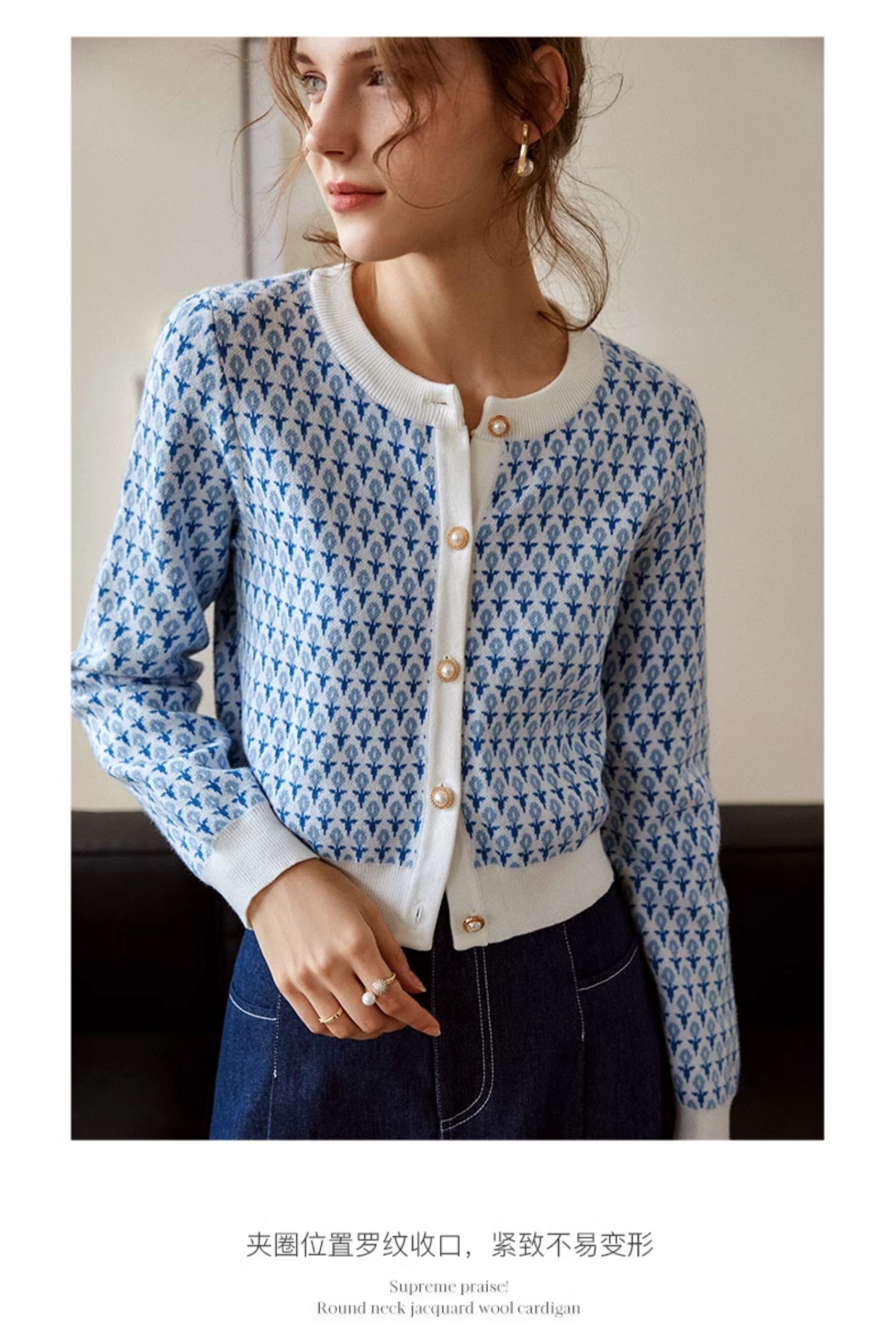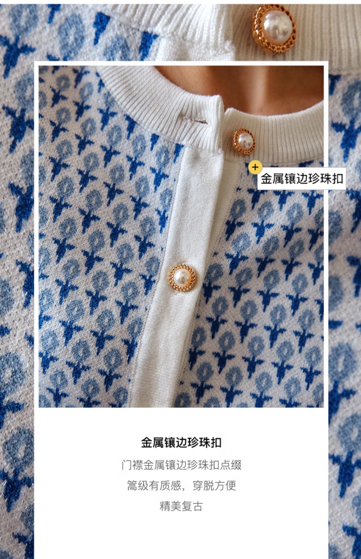 欧芮儿法式浅蓝色针织开衫女早春2025新款圆领长袖短款毛衣外套