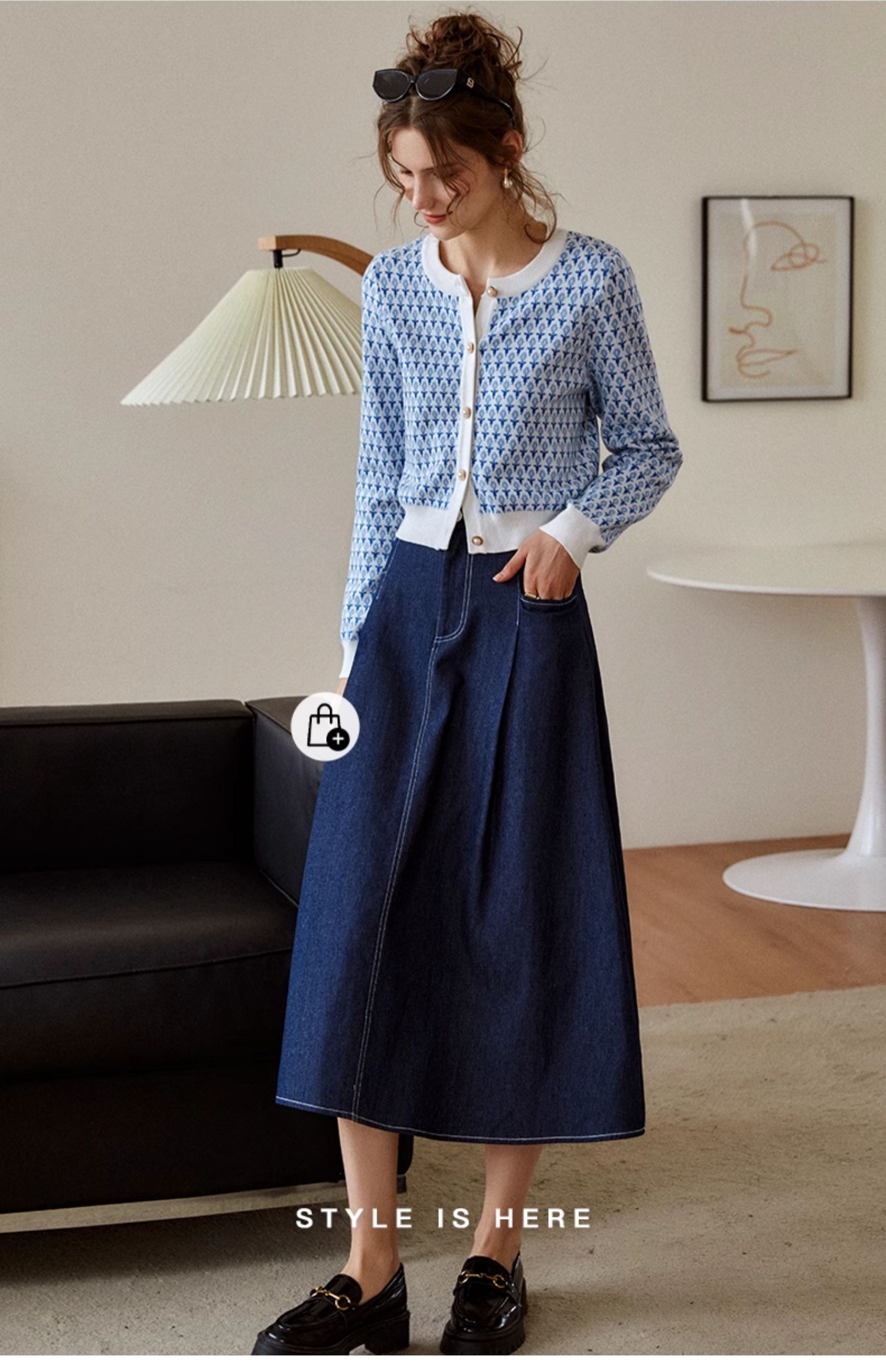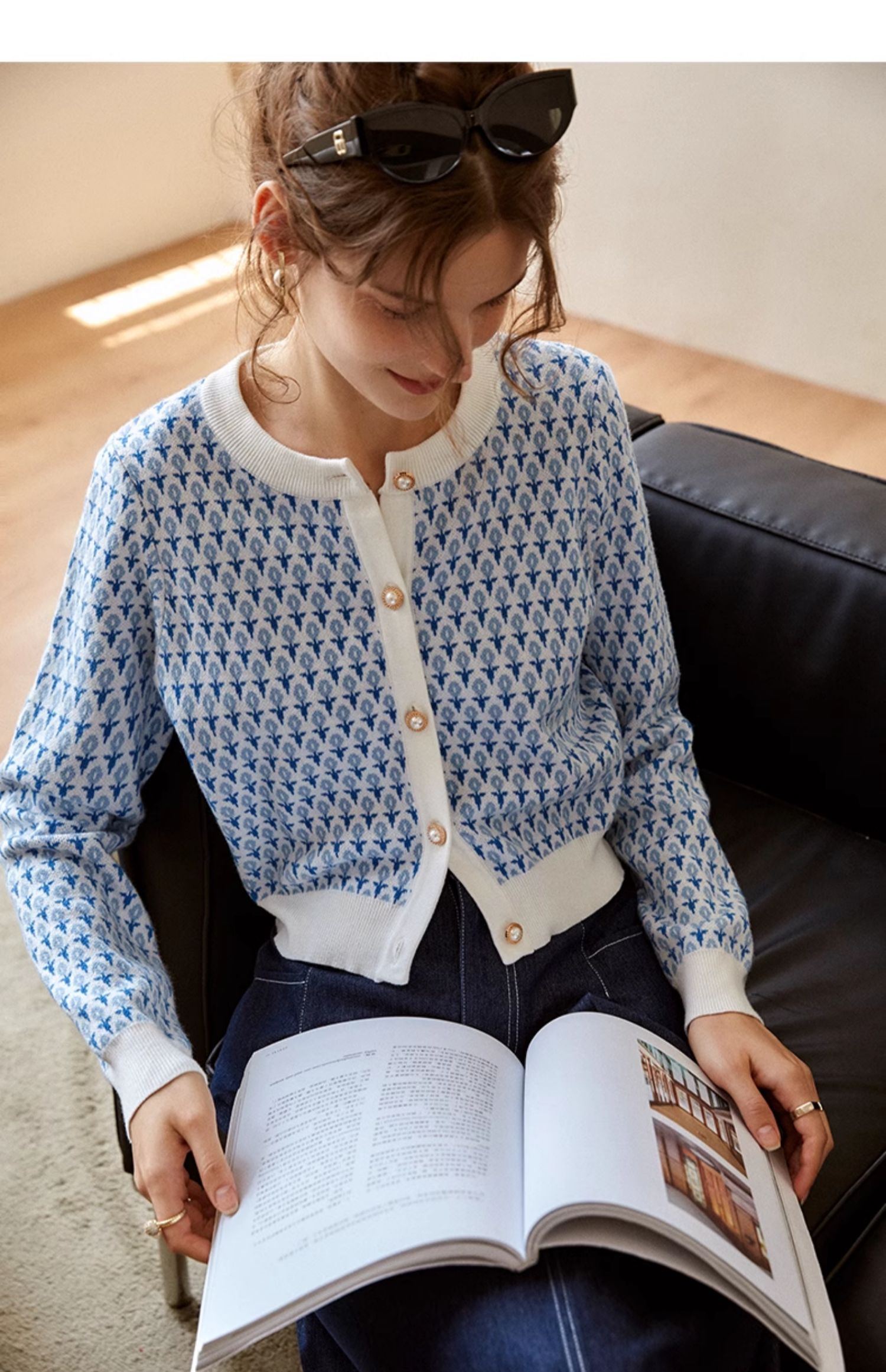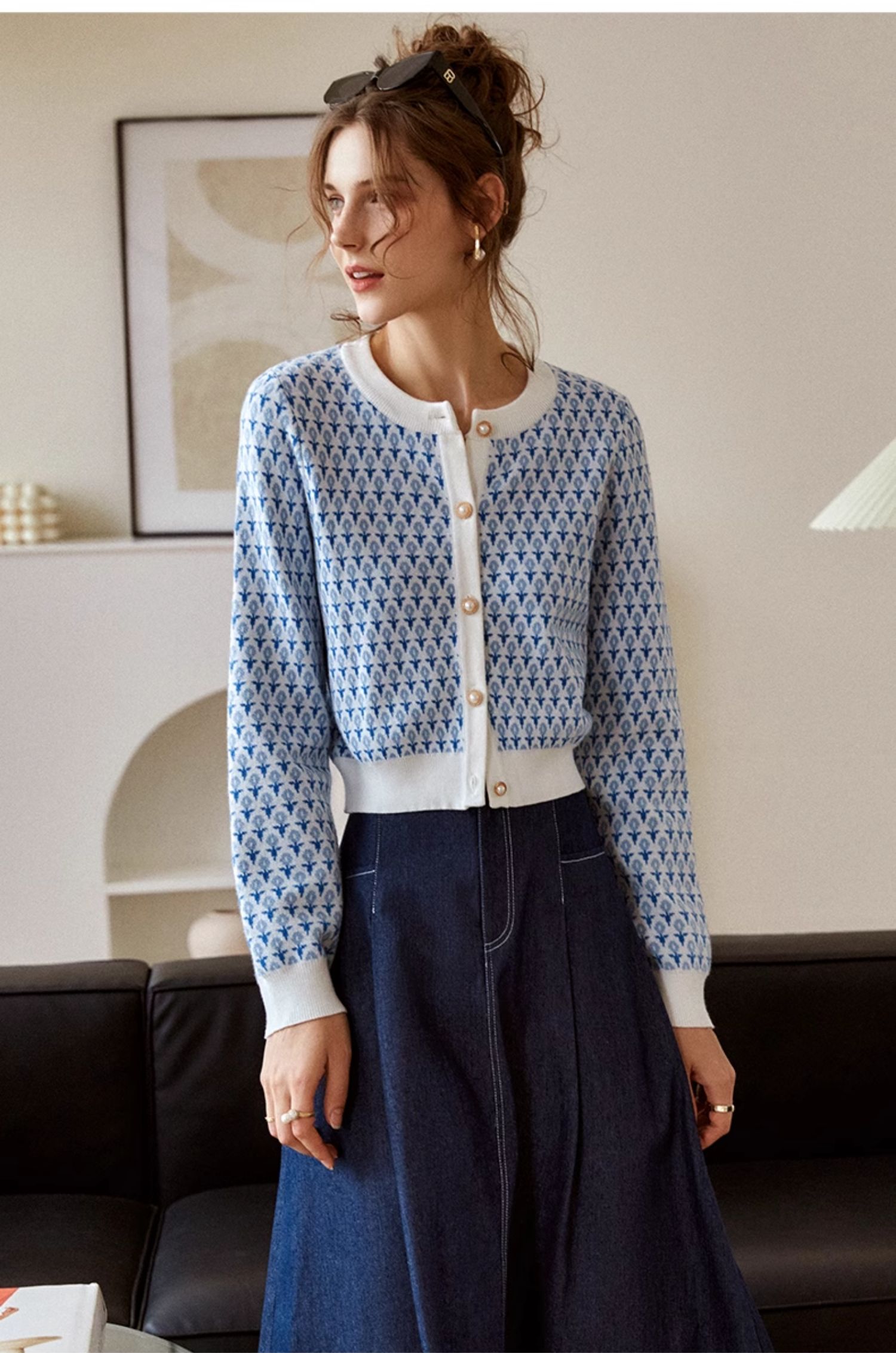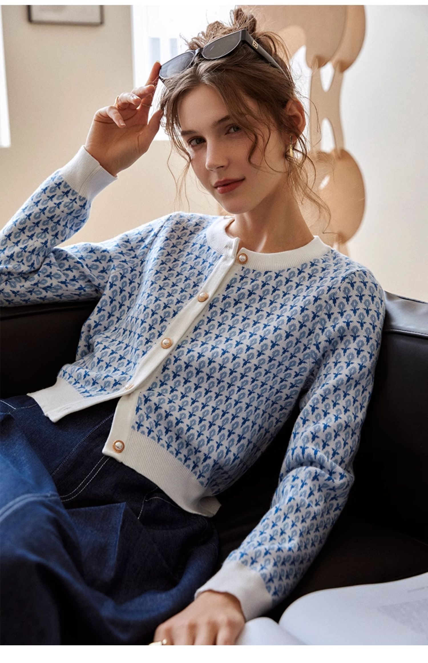 欧芮儿法式浅蓝色针织开衫女早春2025新款圆领长袖短款毛衣外套