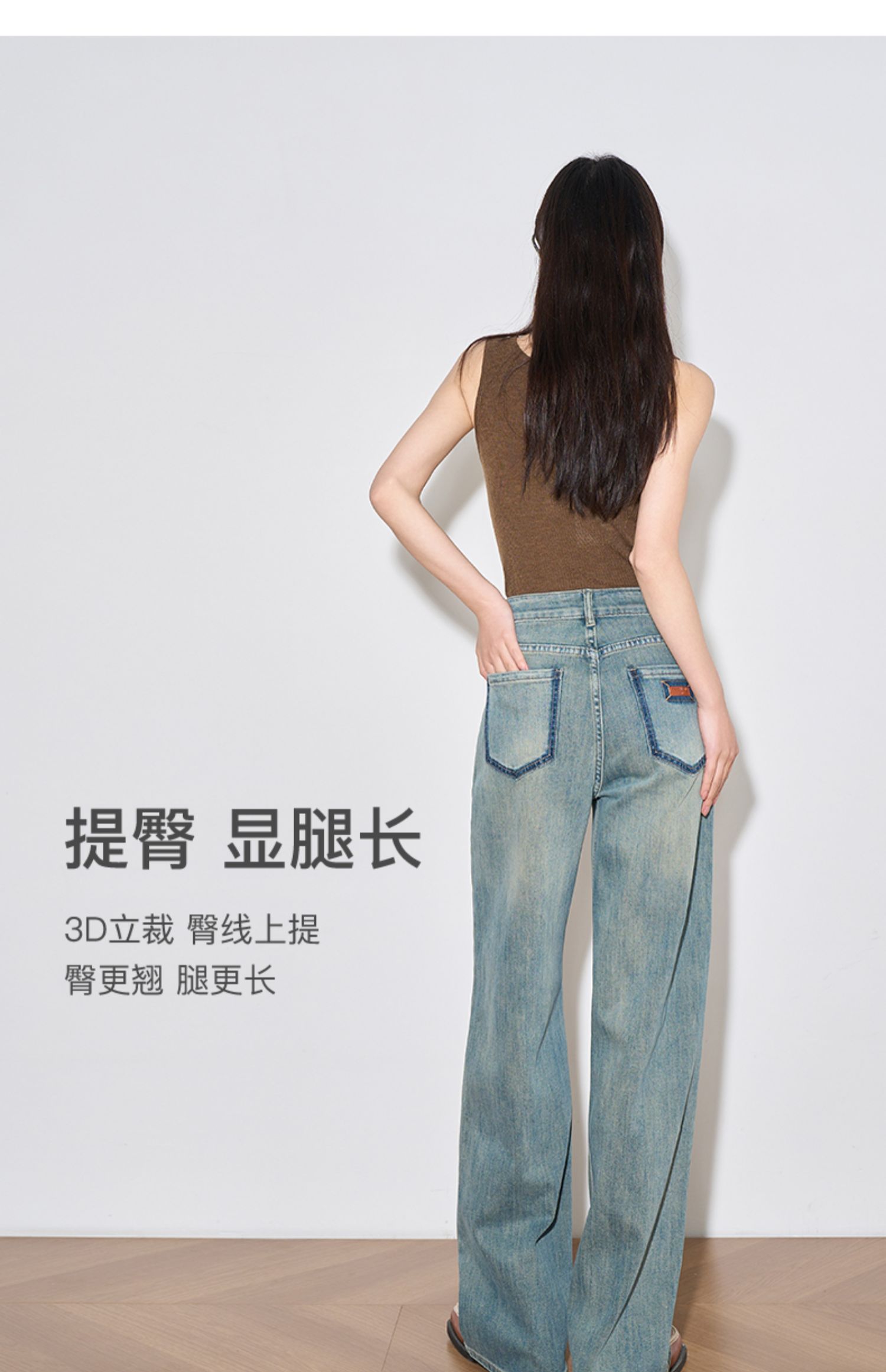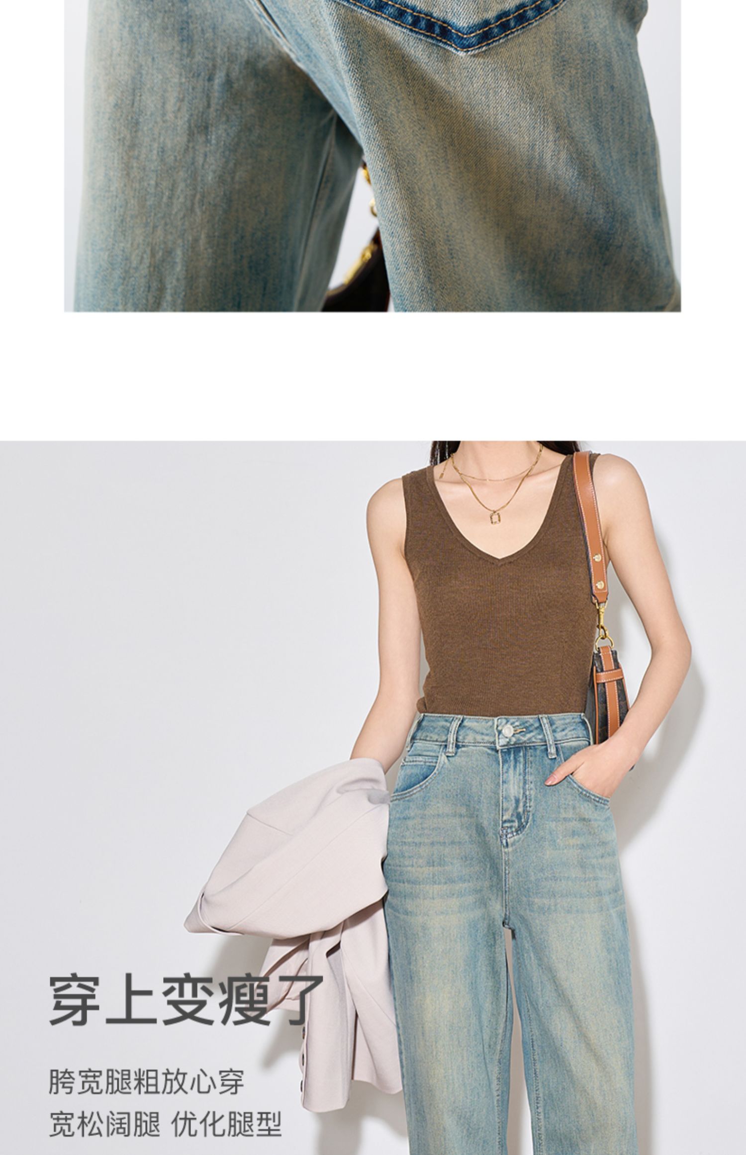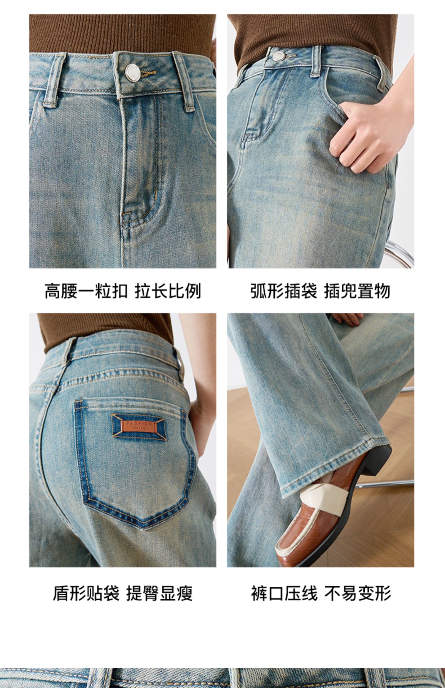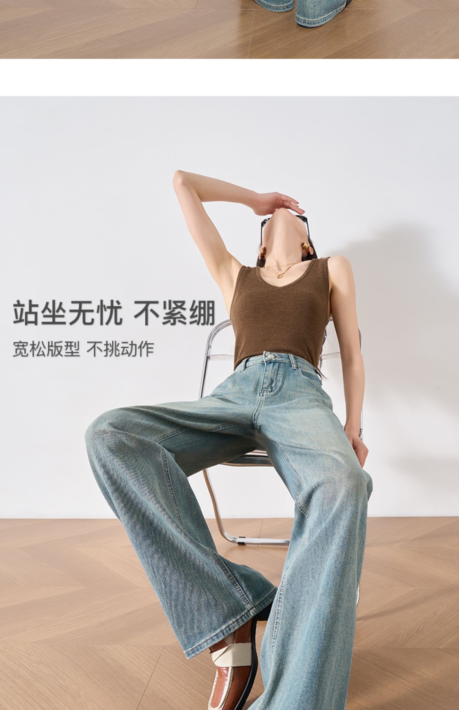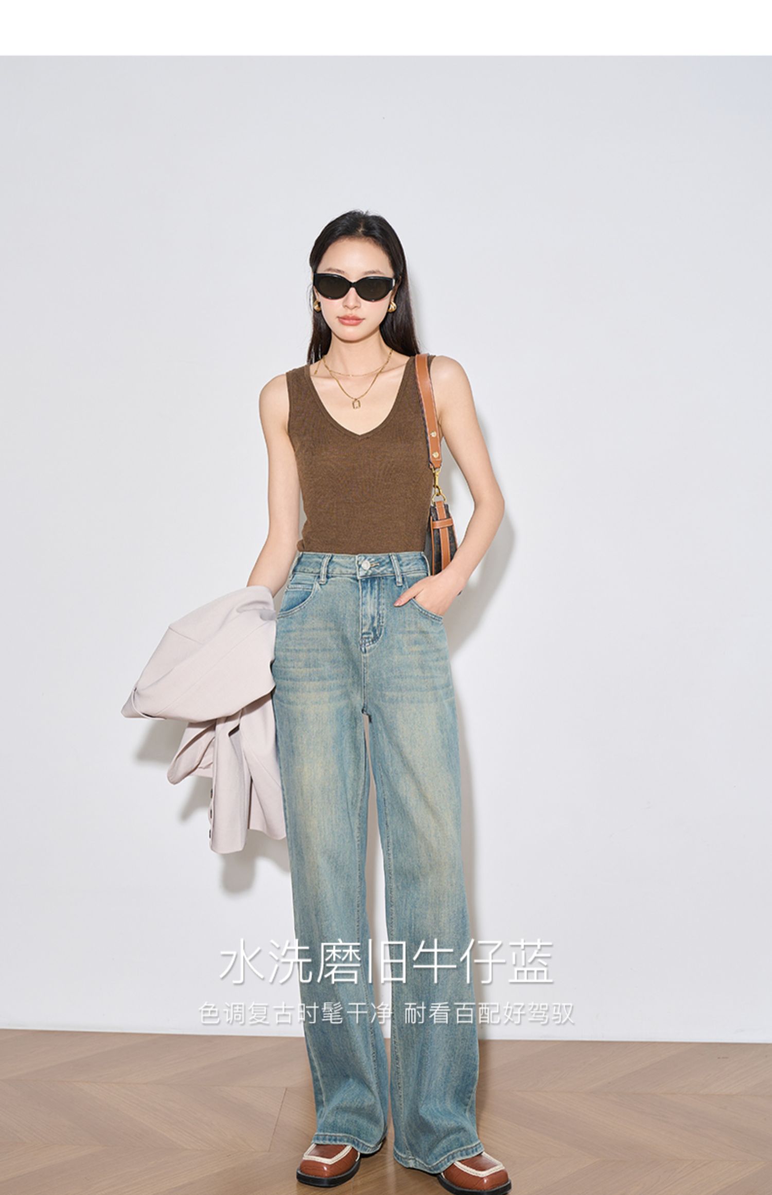 OLrain欧芮儿复古蓝牛仔裤女春季2024年新款高腰百搭直筒阔腿裤