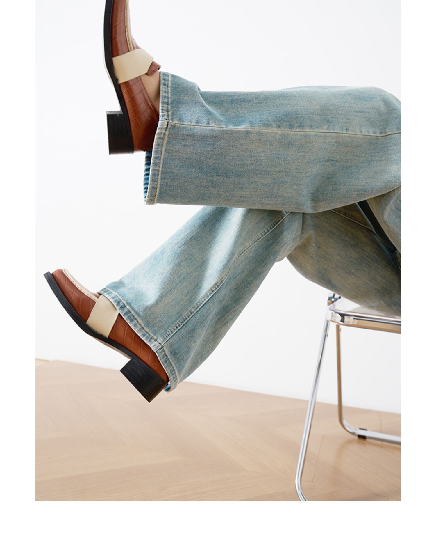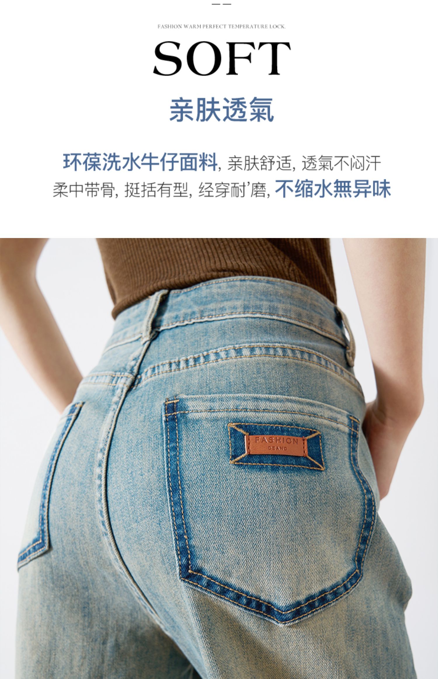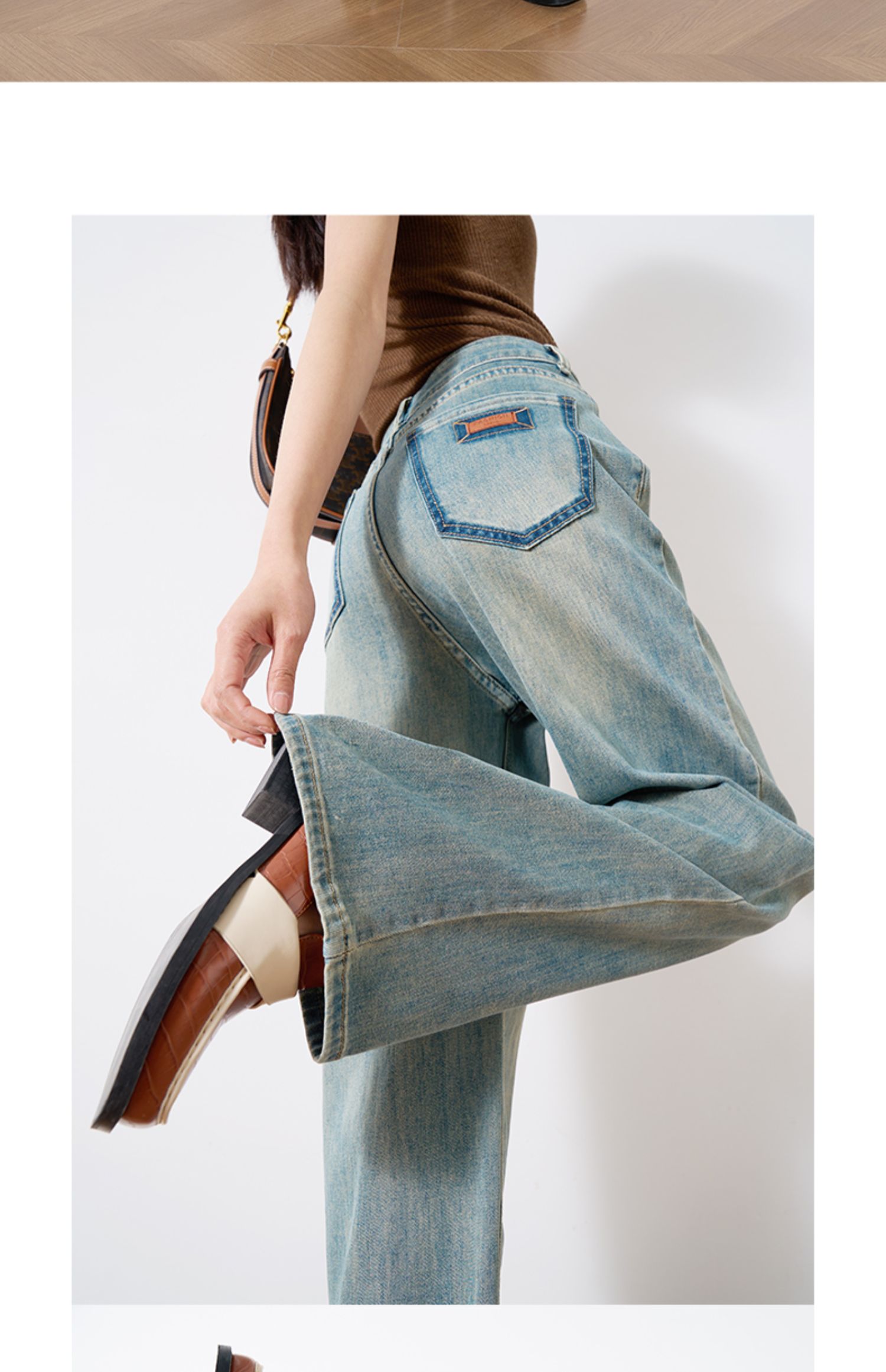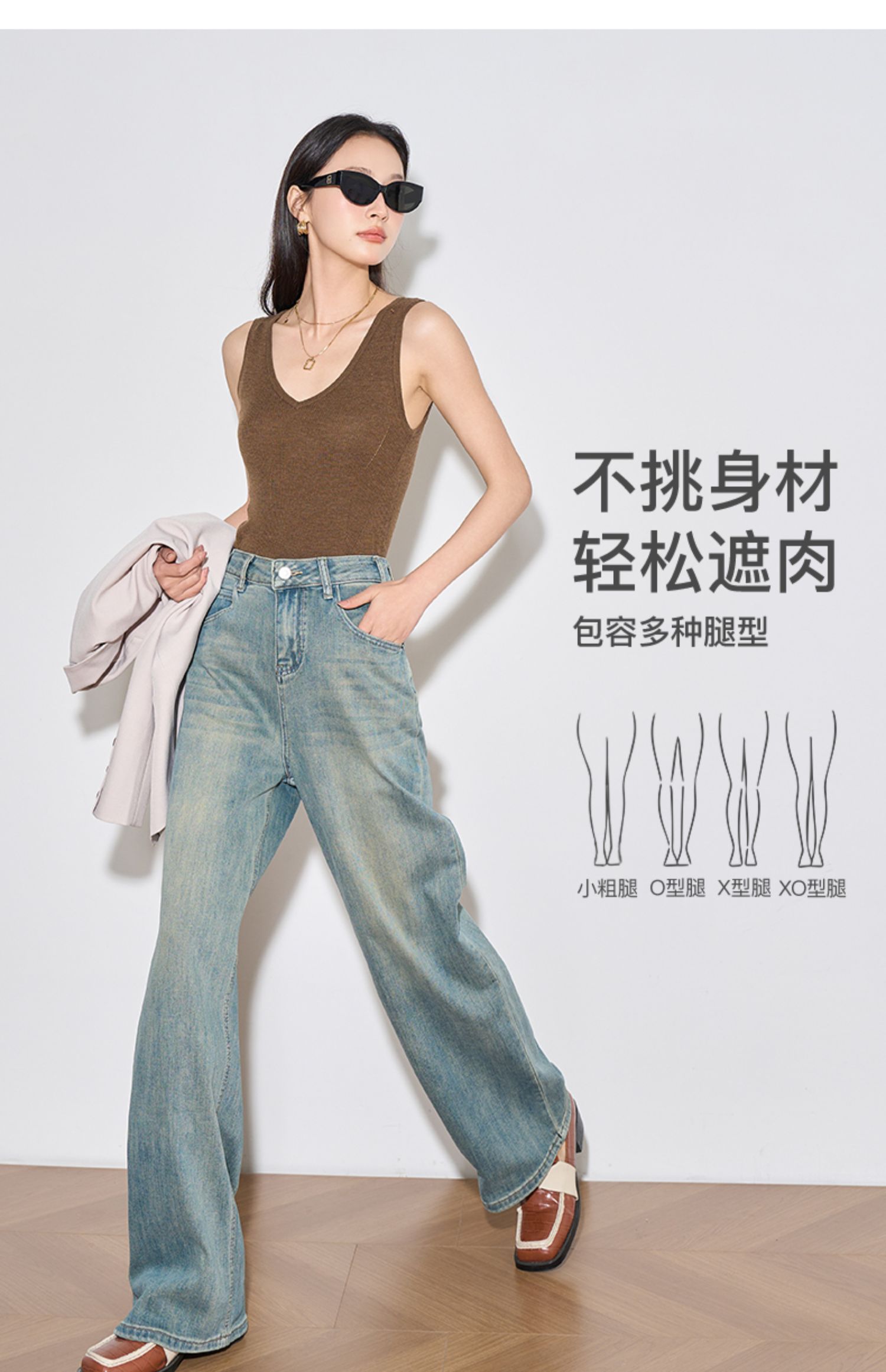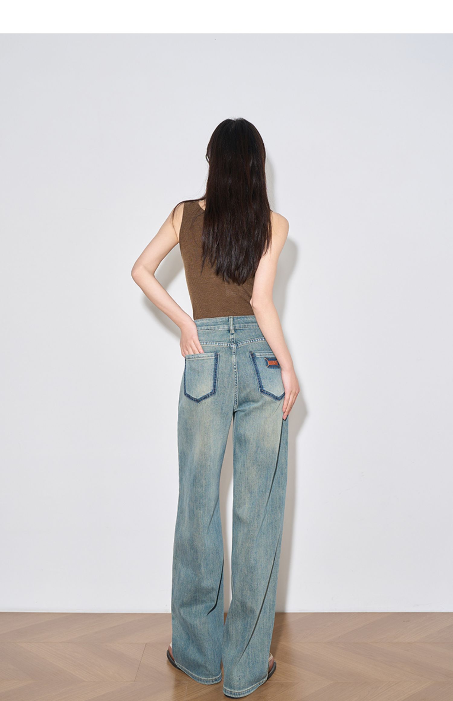 OLrain欧芮儿复古蓝牛仔裤女春季2024年新款高腰百搭直筒阔腿裤