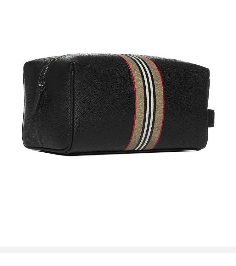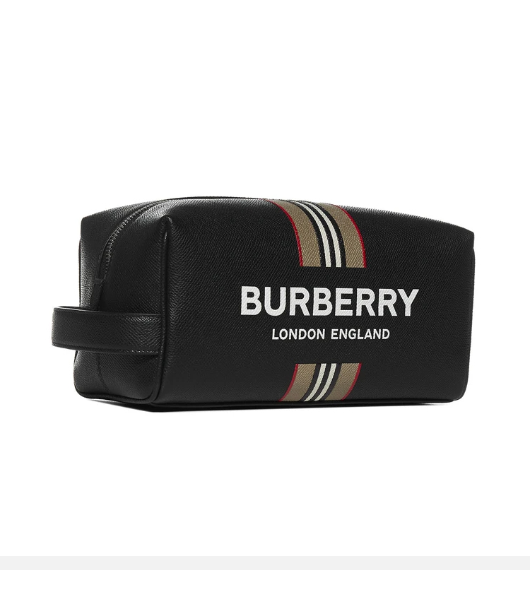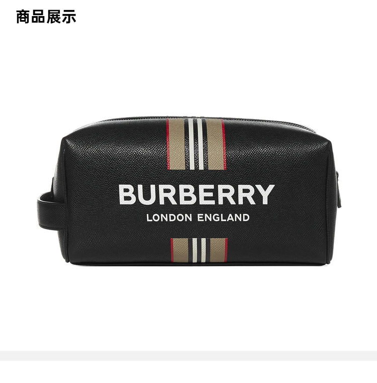 BURBERRY 巴宝莉 男士标志性条纹印花皮革手拿包 黑色 8033859 A1189