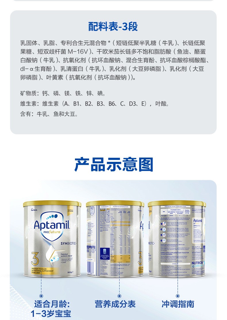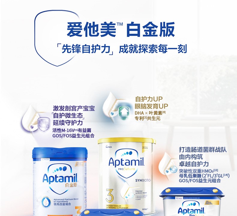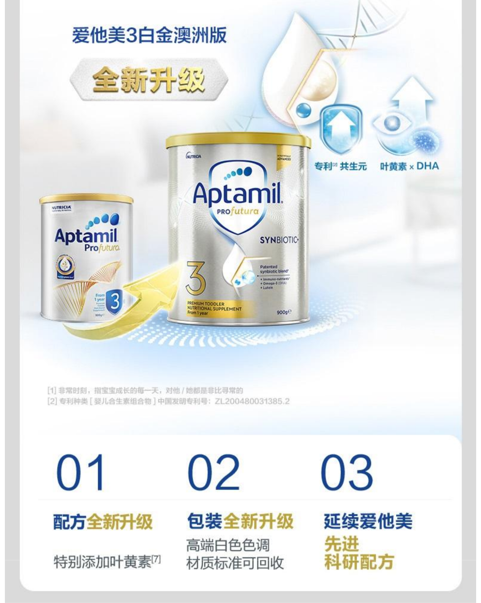 澳洲爱他美Aptamil白金幼儿配方奶粉900g(新包装)