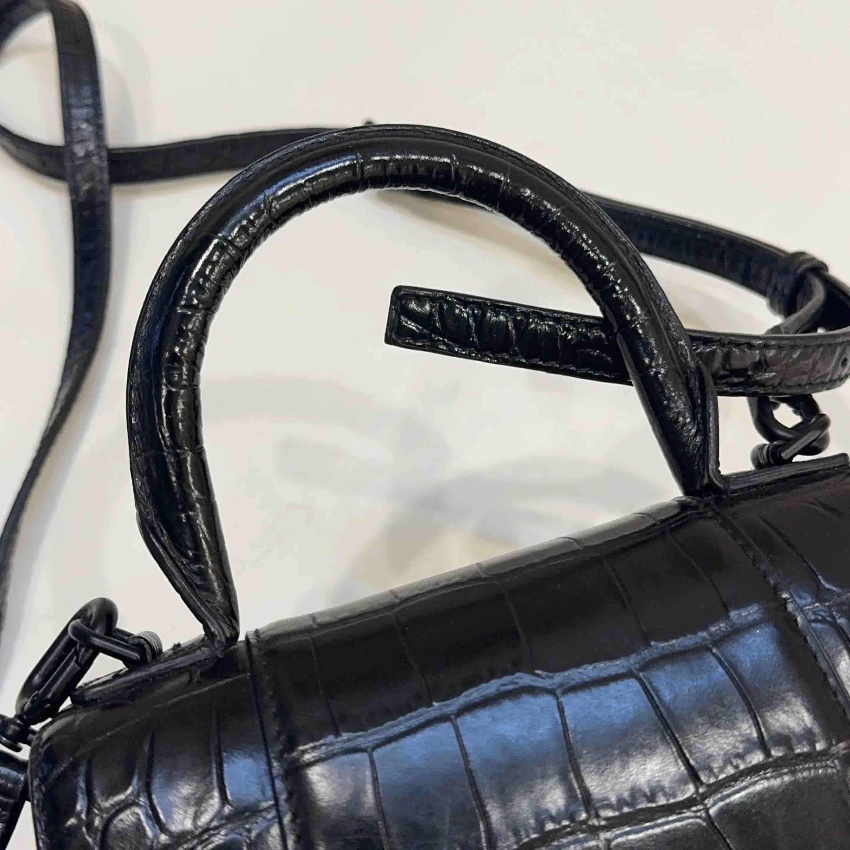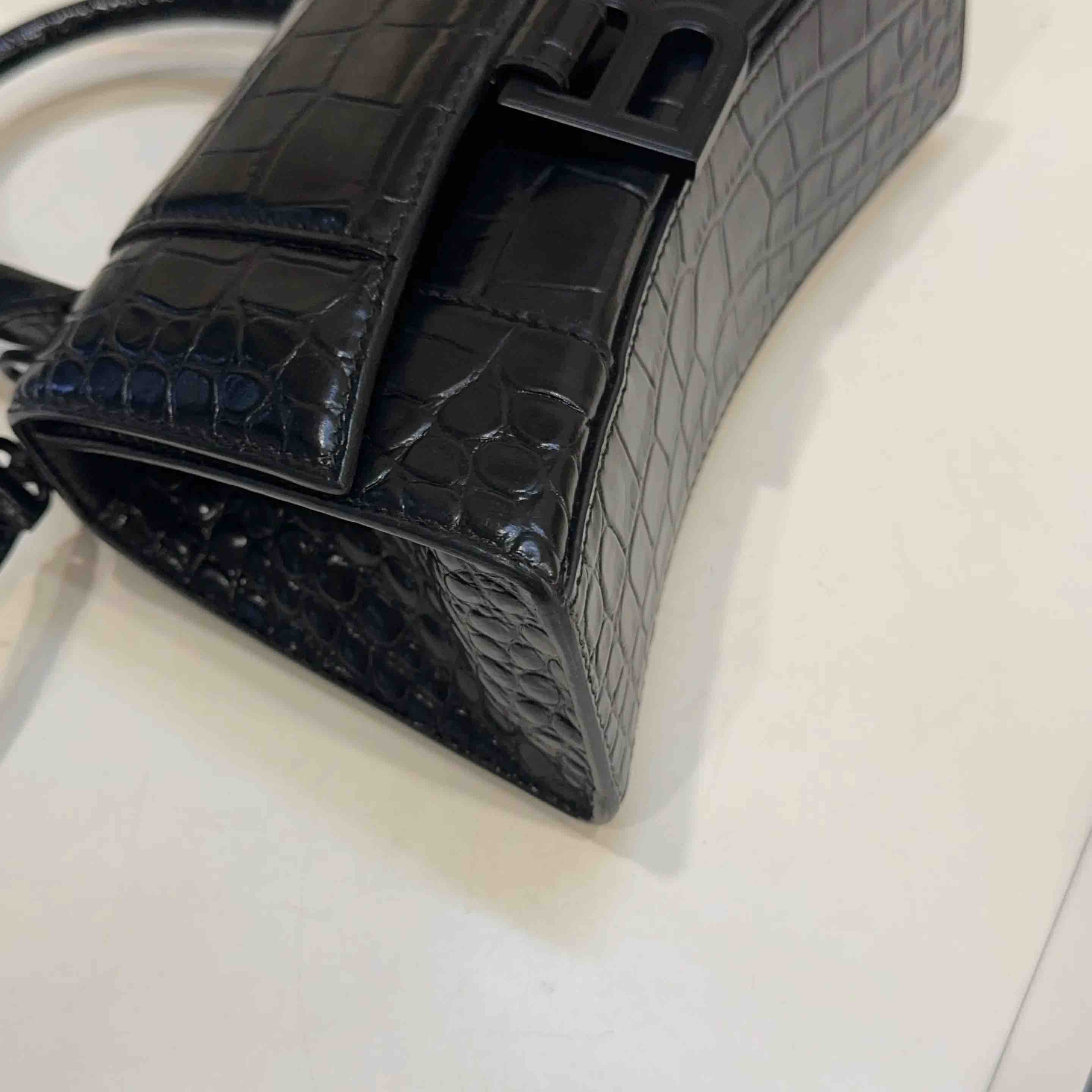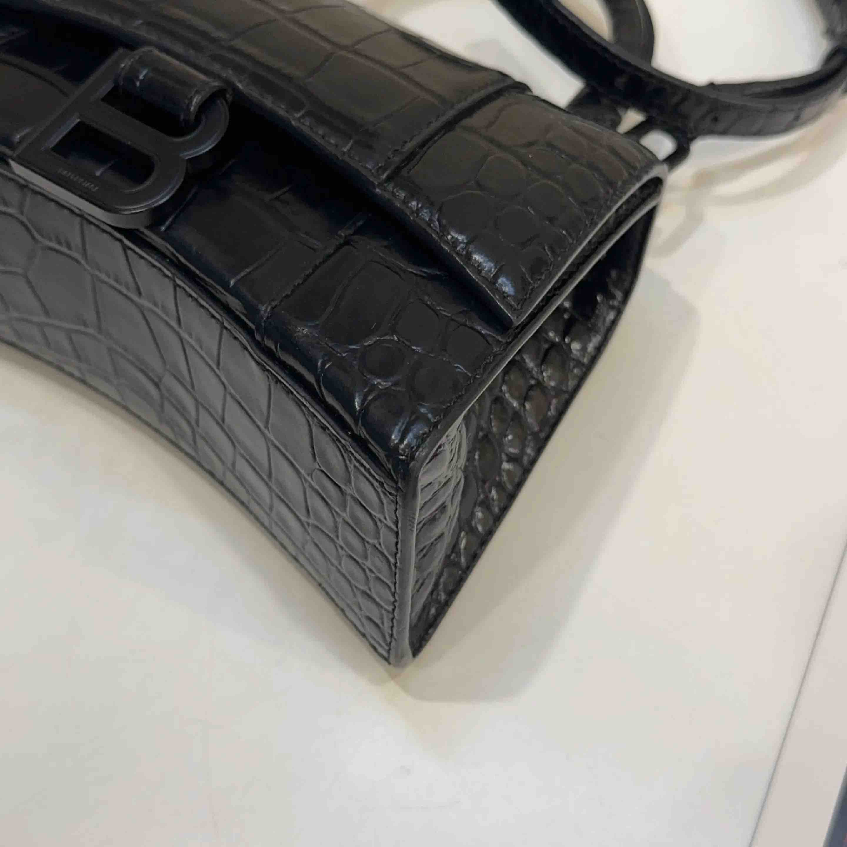 【商品详情】正品二手 巴黎世家 Hourglass xs 鳄鱼压纹牛皮 so black 沙漏包⏳ 95新 19*13 配件:肩带。内里正常使用感。硬挺有型 百搭高级