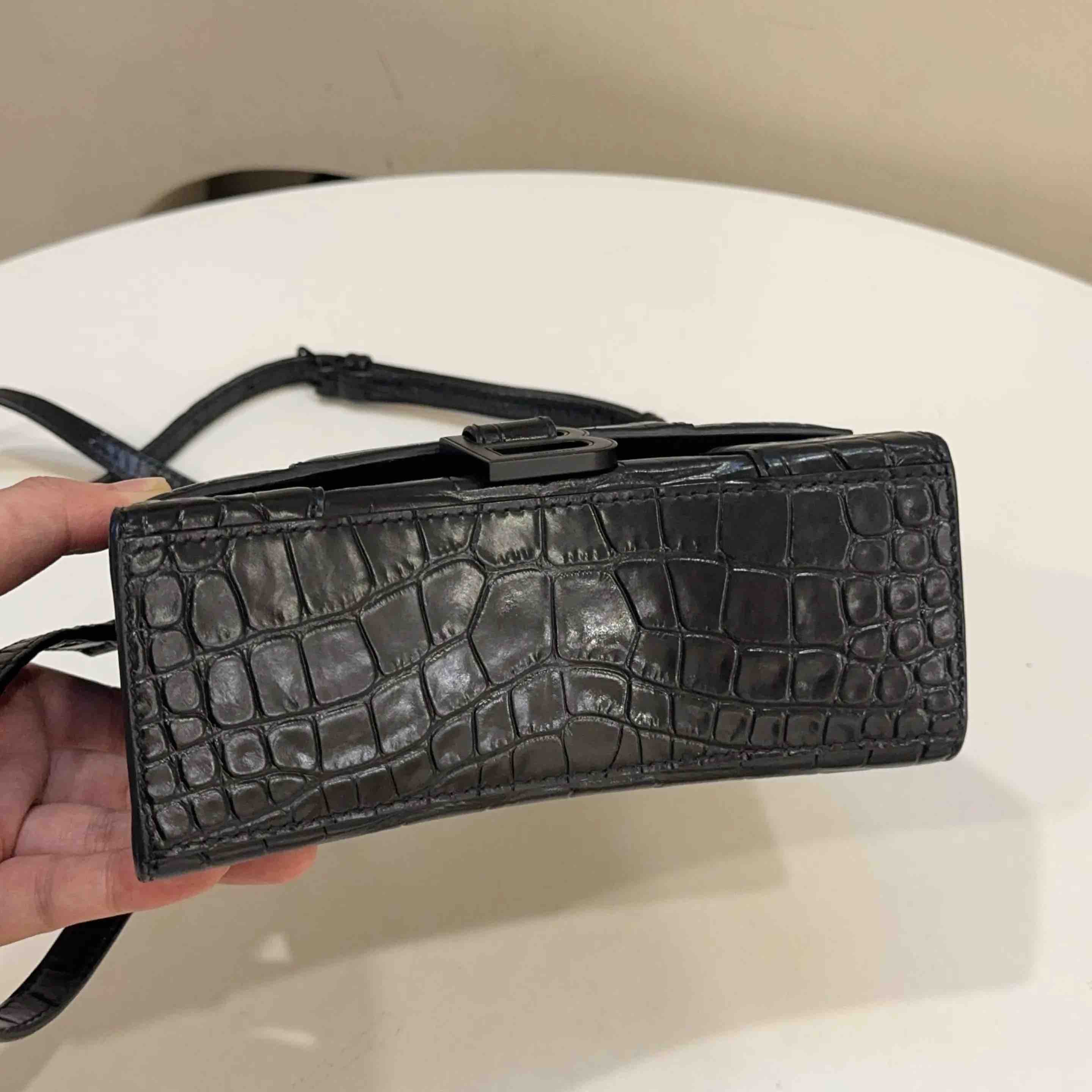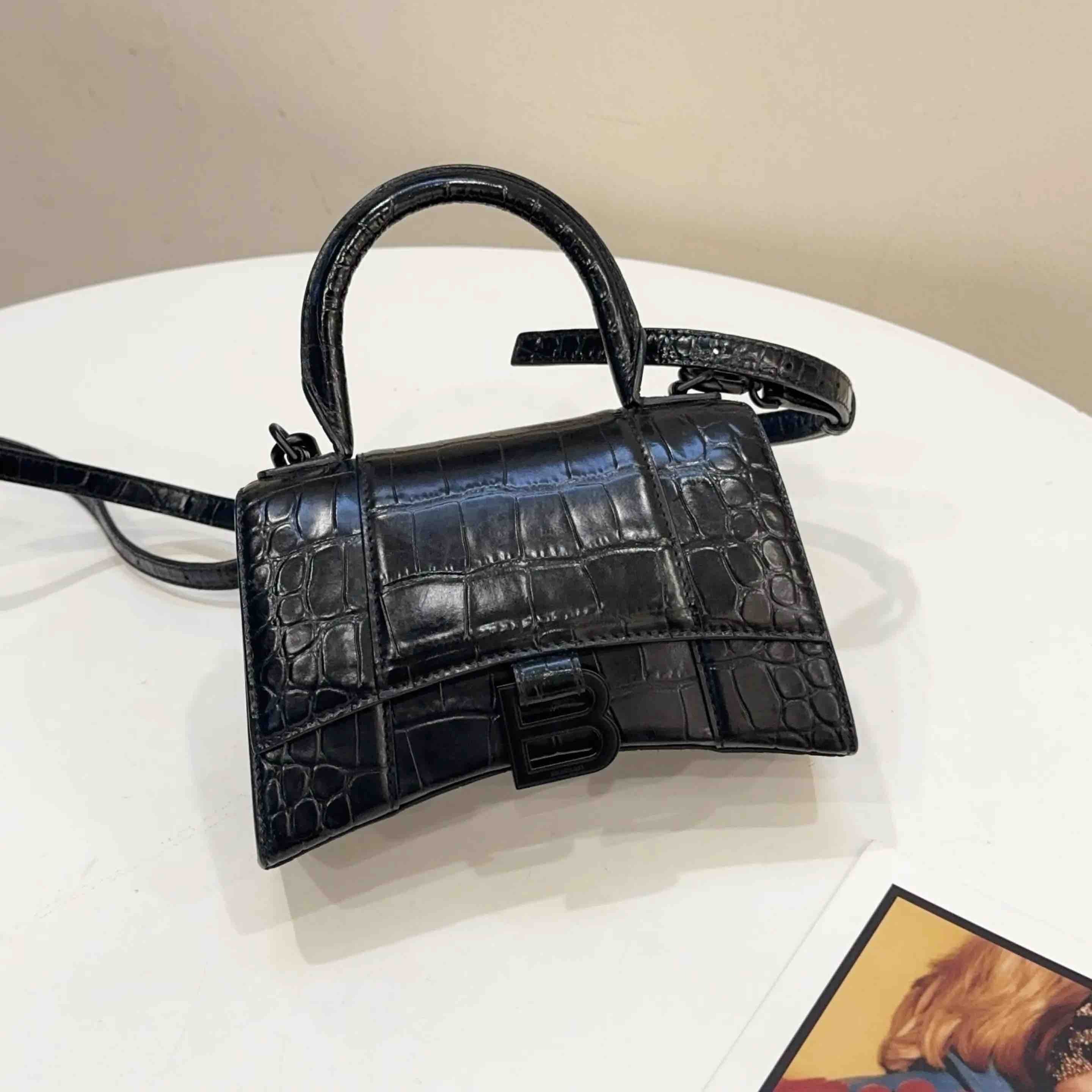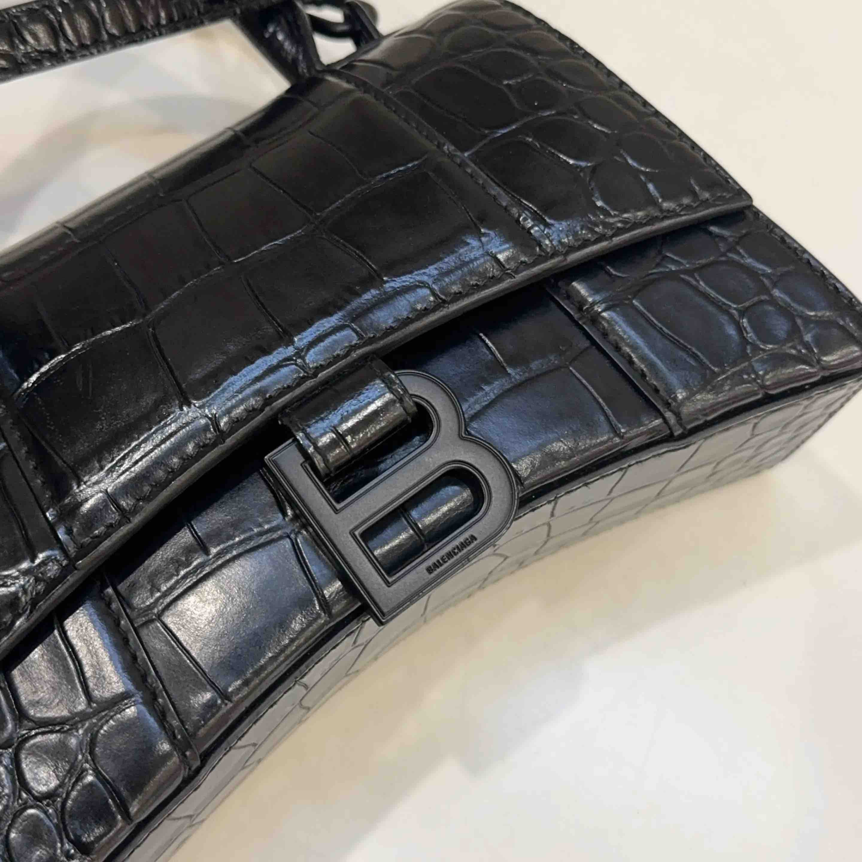 【商品详情】正品二手 巴黎世家 Hourglass xs 鳄鱼压纹牛皮 so black 沙漏包⏳ 95新 19*13 配件:肩带。内里正常使用感。硬挺有型 百搭高级