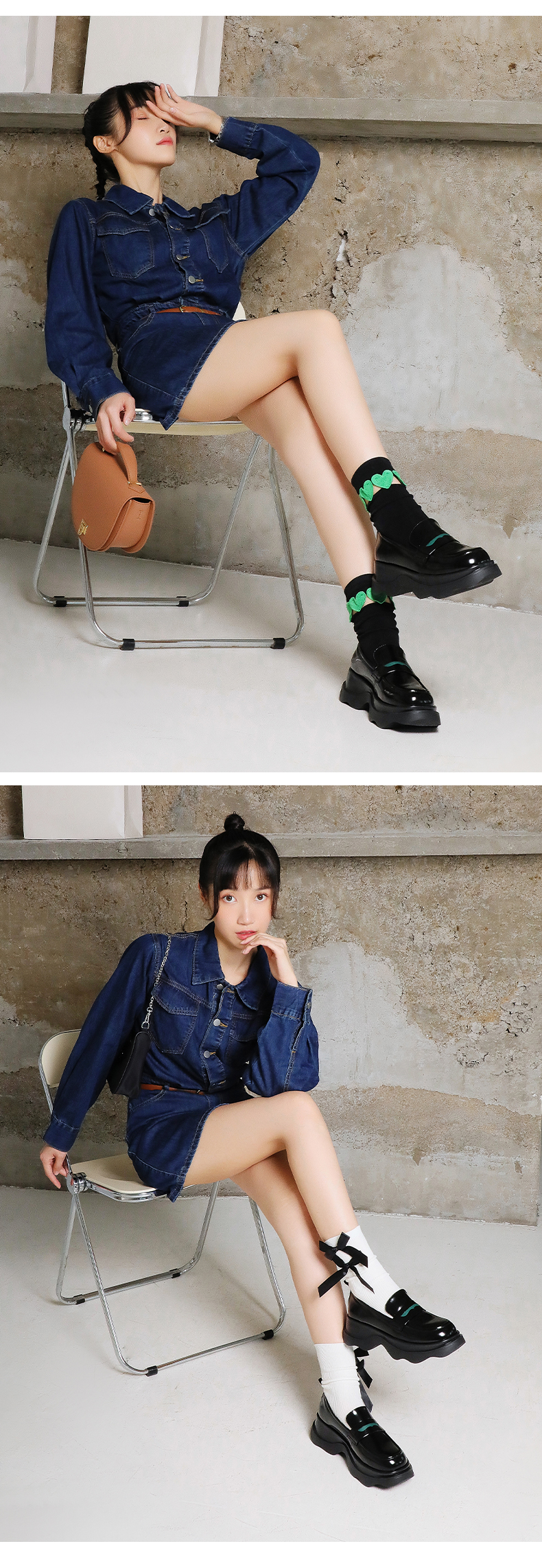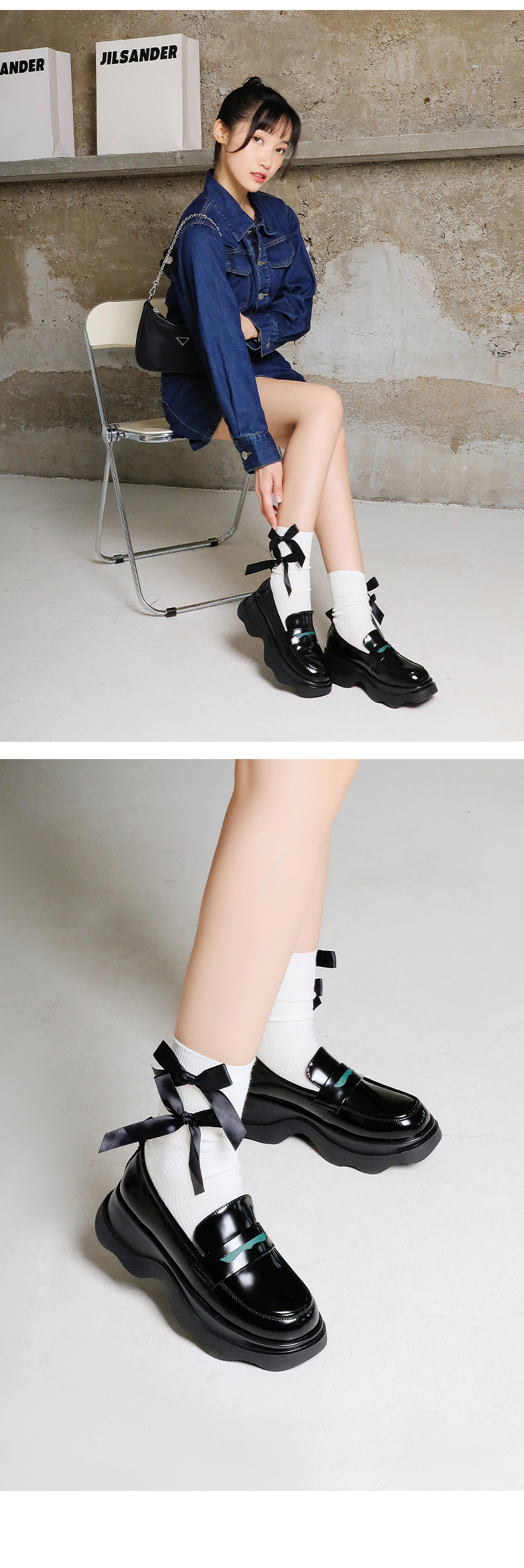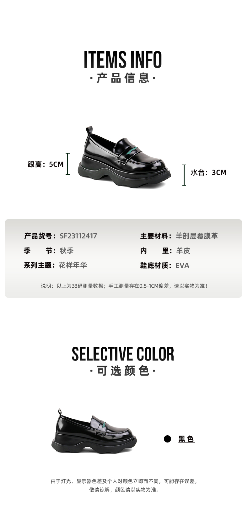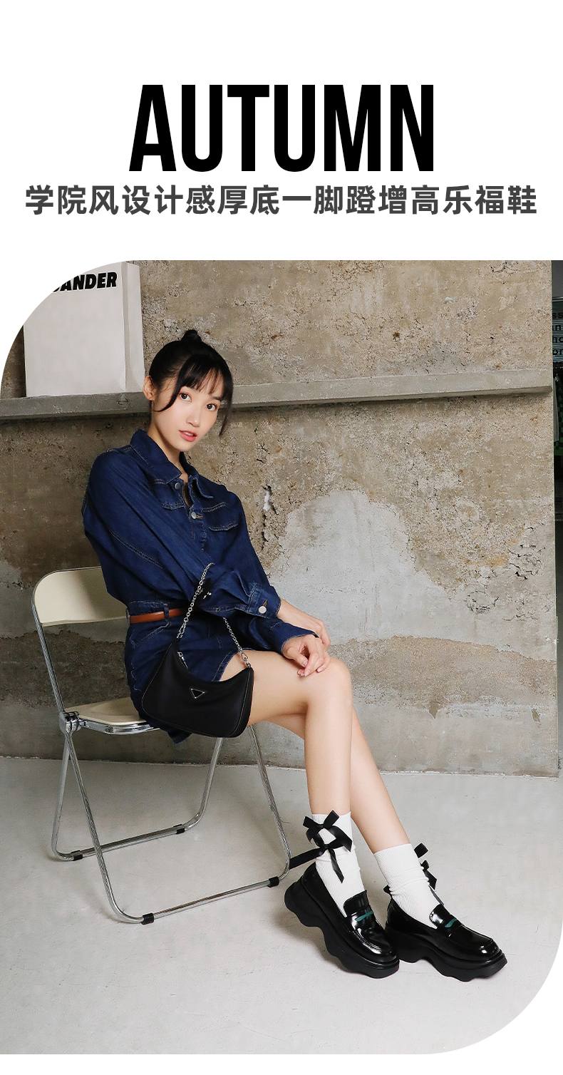 Safiya/索菲娅全羊皮小皮鞋2022早秋学院风厚底一脚蹬增高超轻系列乐福鞋 SF23112417