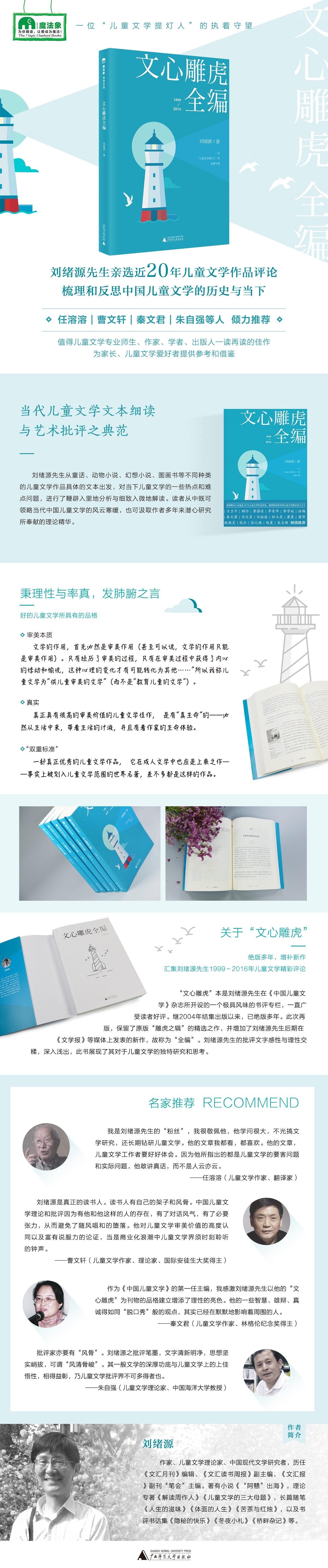| “文心雕虎”本是刘绪源在《中国儿童文学》杂志所开设的一个极具风味的书评专栏,一直广受读者好评。继2004年结集出版以来,已绝版多年。此次再版,保留了原版“雕虎之辑”的精选之作,并增加了作者后期在《文学报》等媒体上发表的新作,故称为“全篇”。从中既可领略当代中国儿童文学的风云寒暖,也可汲取作者多年来潜心研究所奉献的理论精华。 |