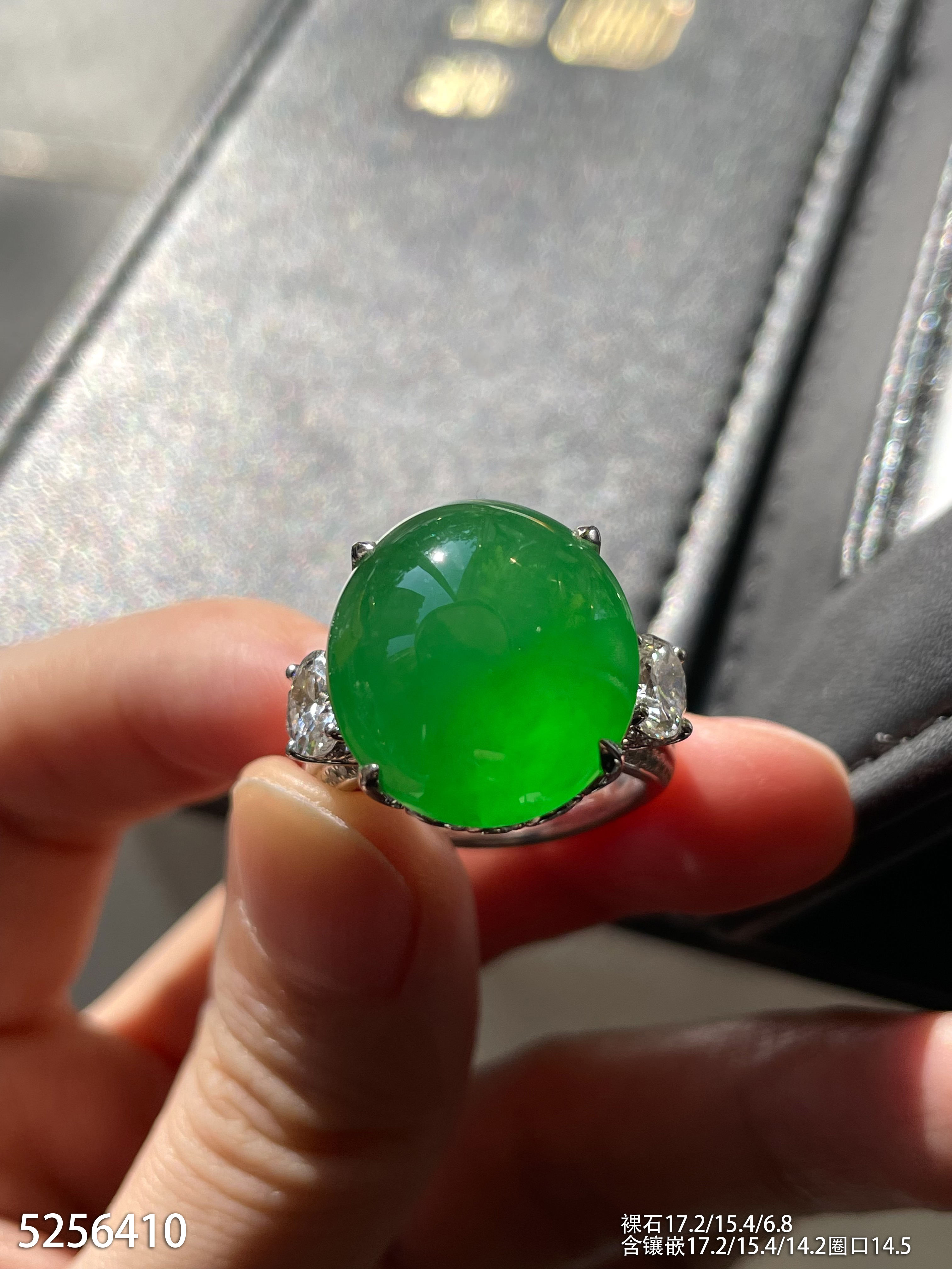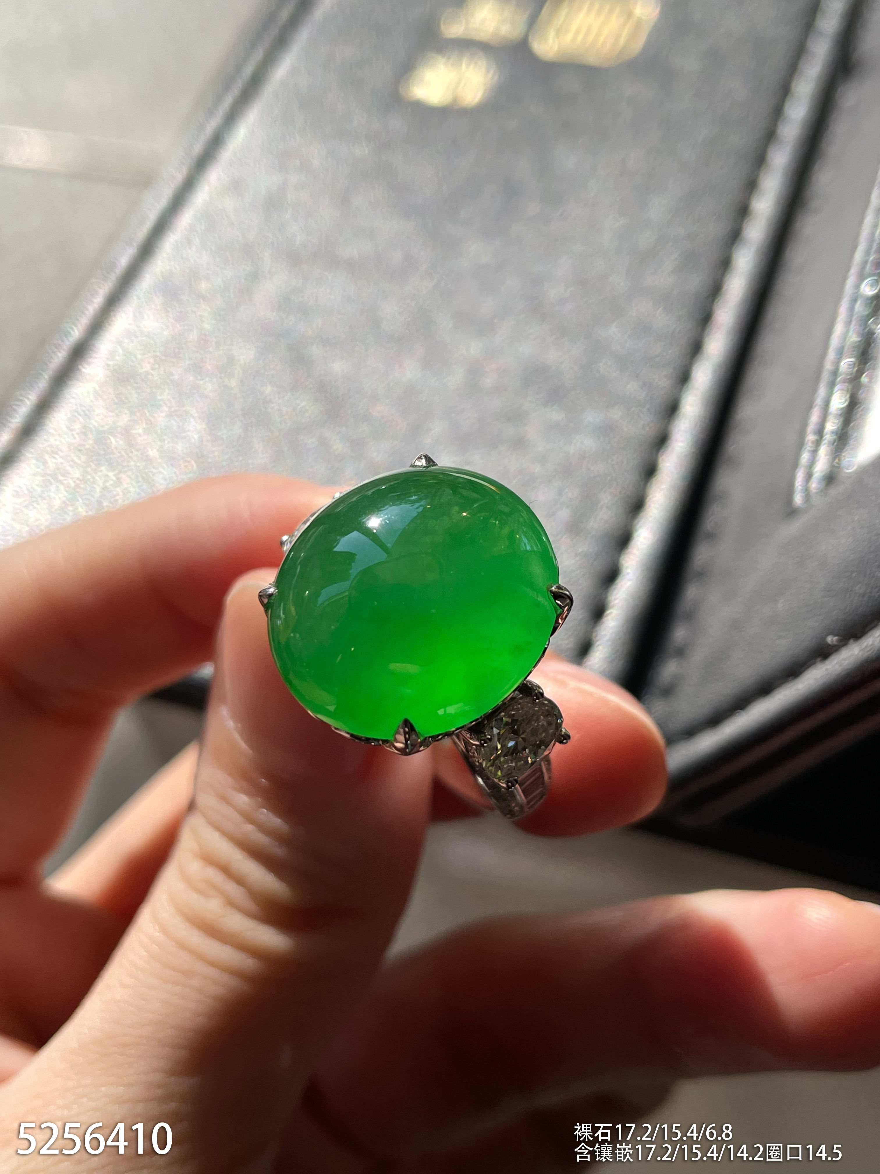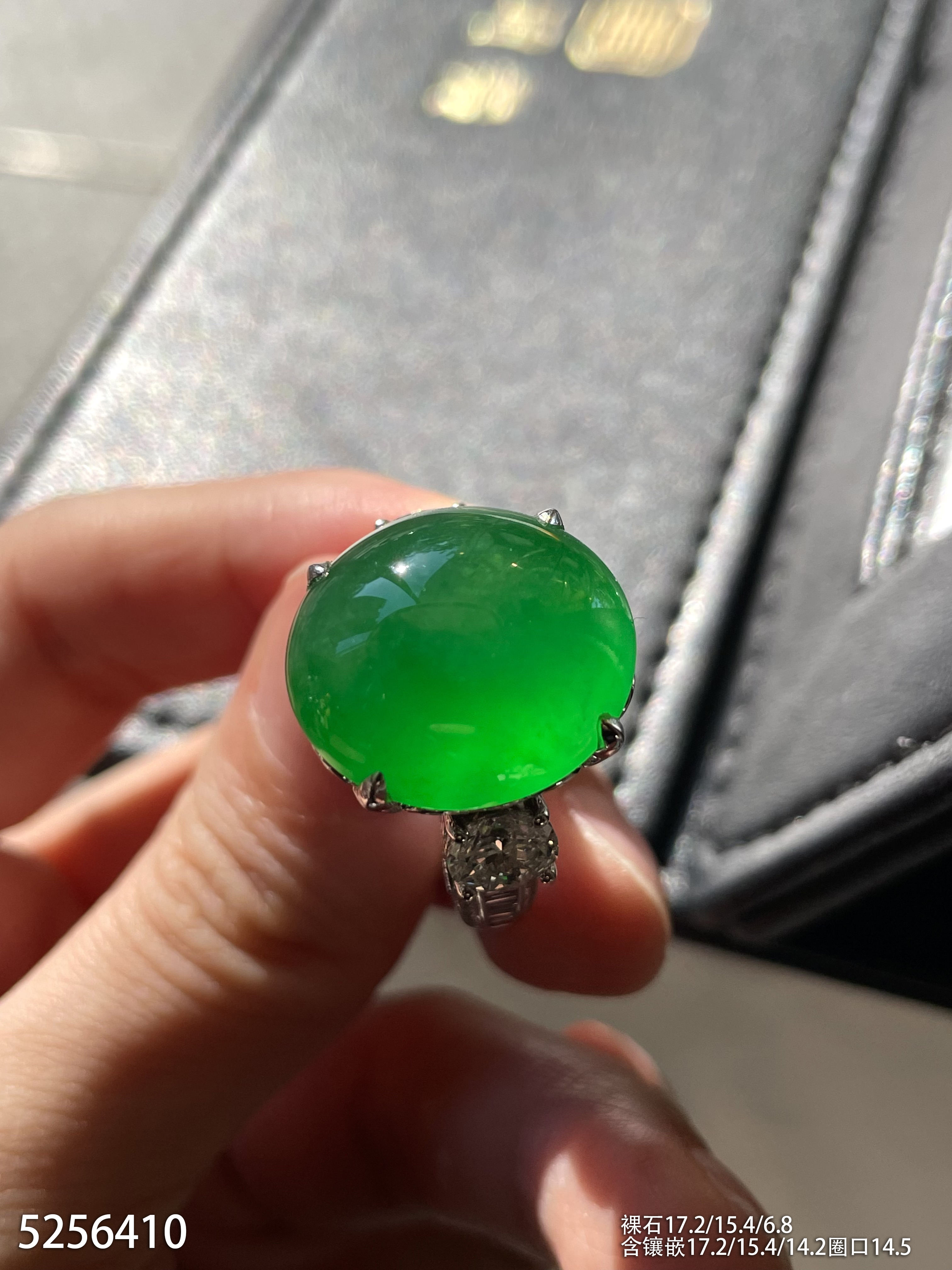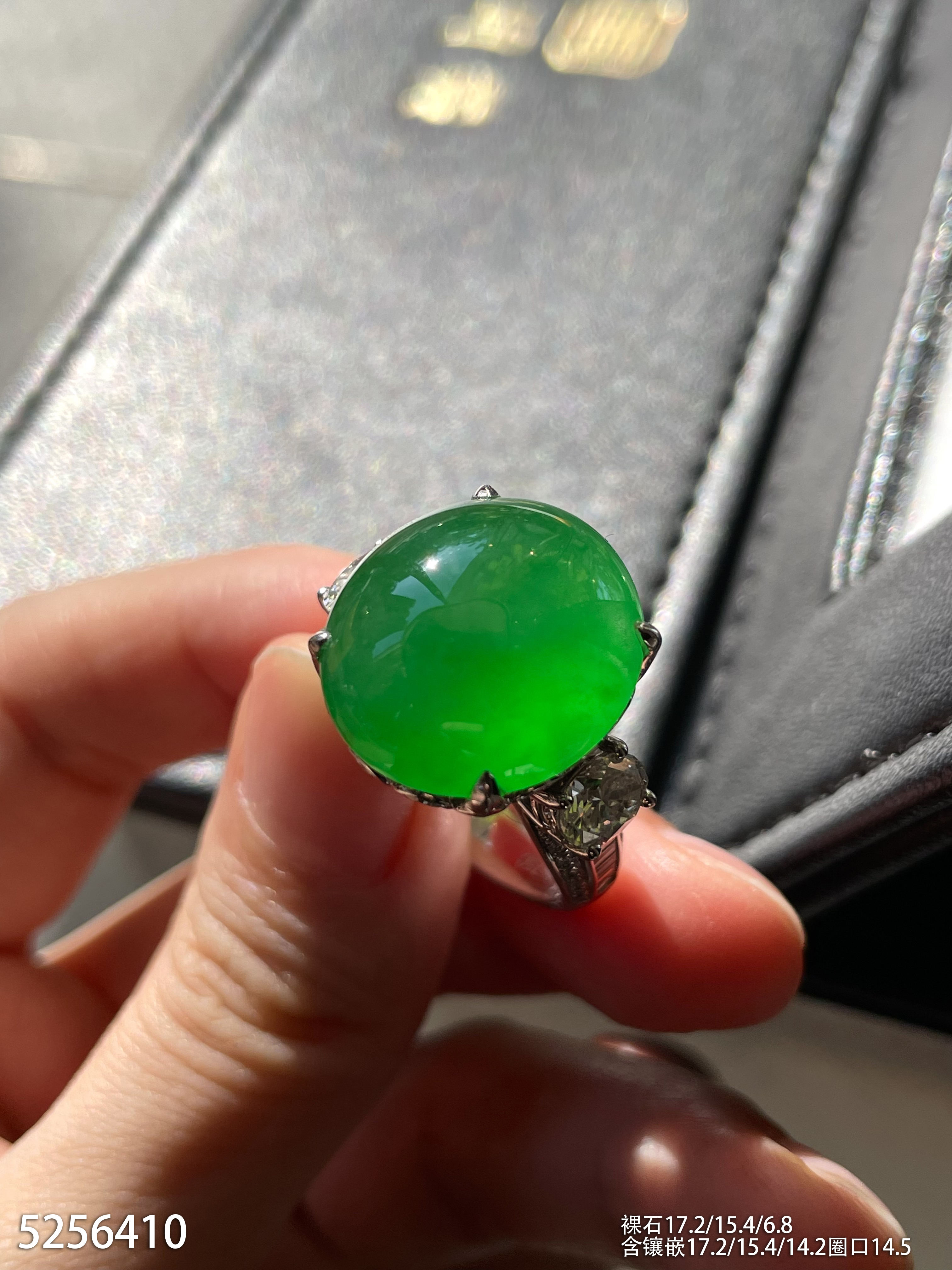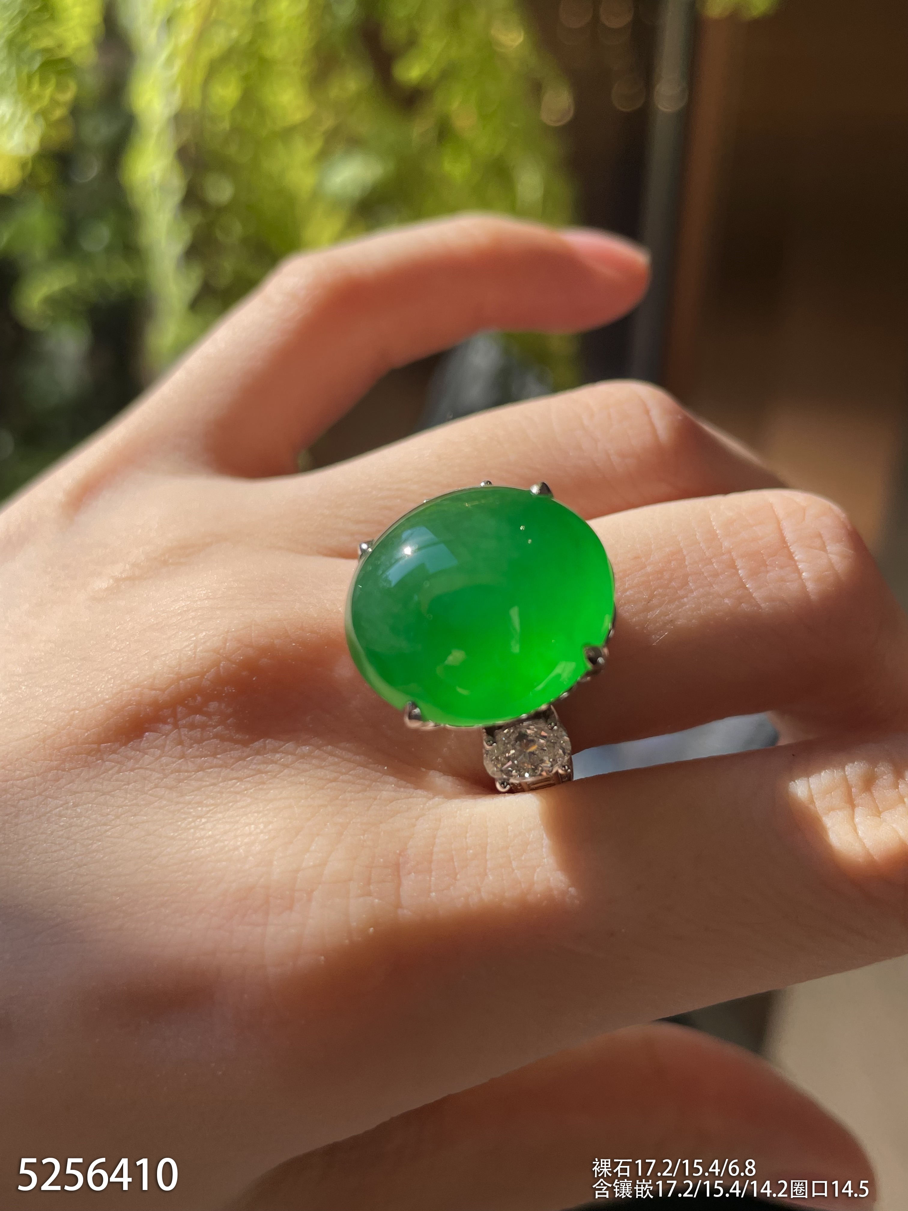 高冰种艳绿蛋面戒指【5256410】具体价格微信咨询
