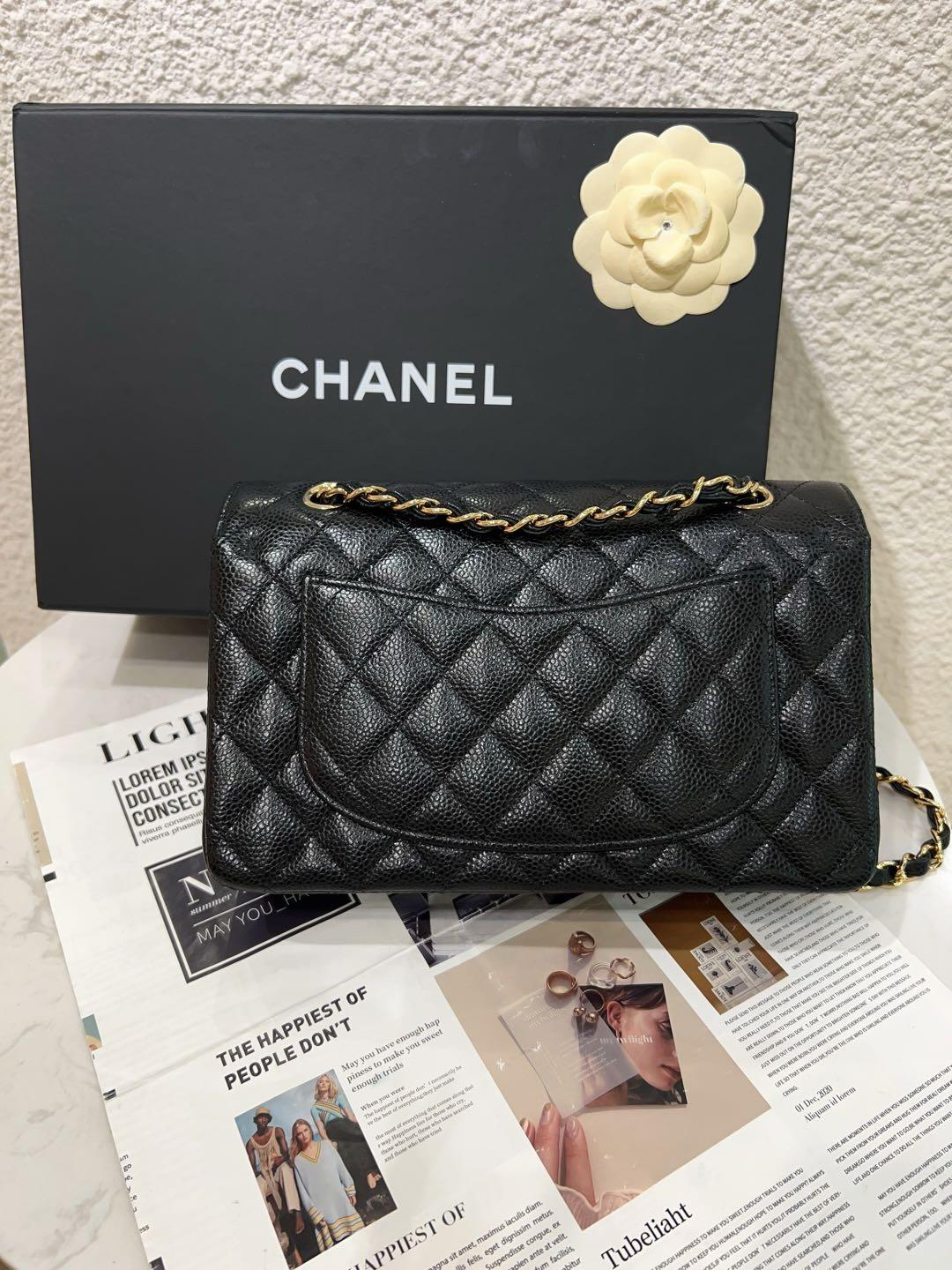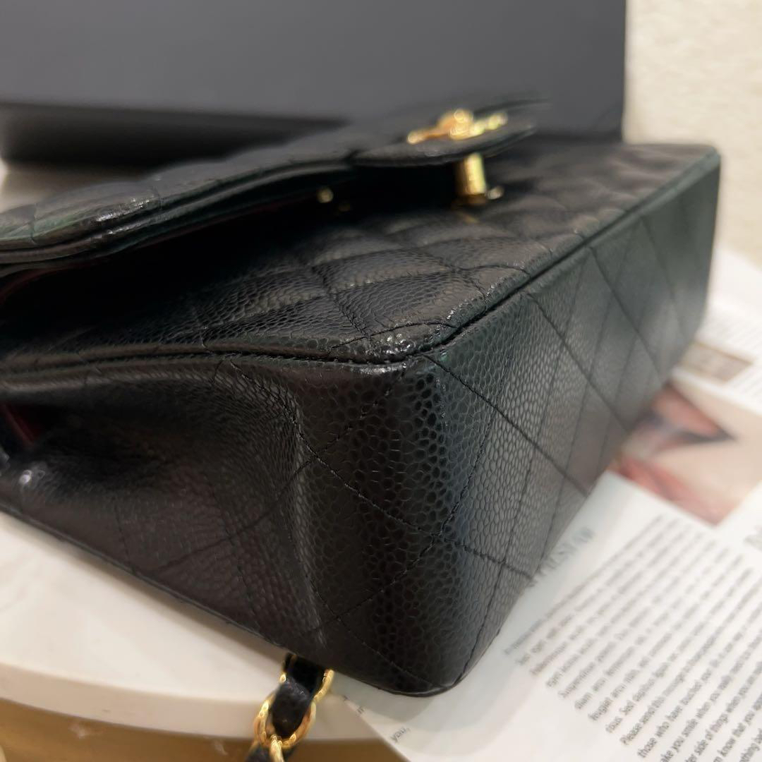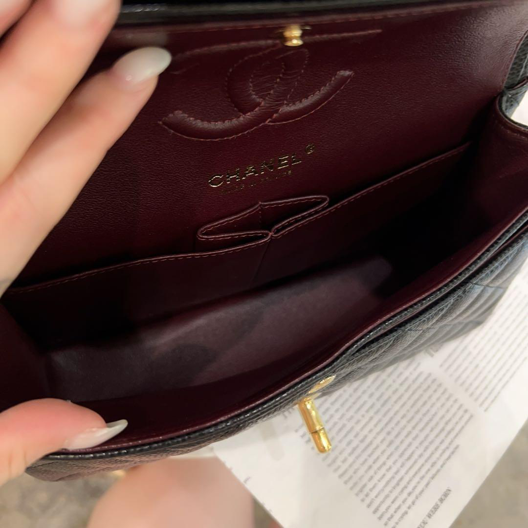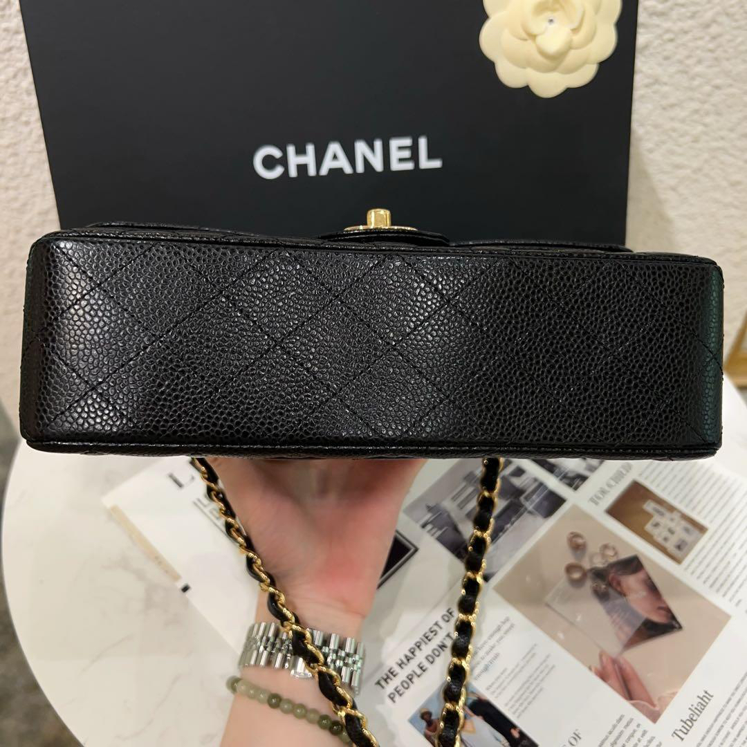 【商品詳情】正品二手 Chanel CF 小号 黑金 荔枝纹牛皮 单肩包🏝️98新 23*14 镭射31开 配件:说明书卡 防尘袋 盒子。经典保值系列