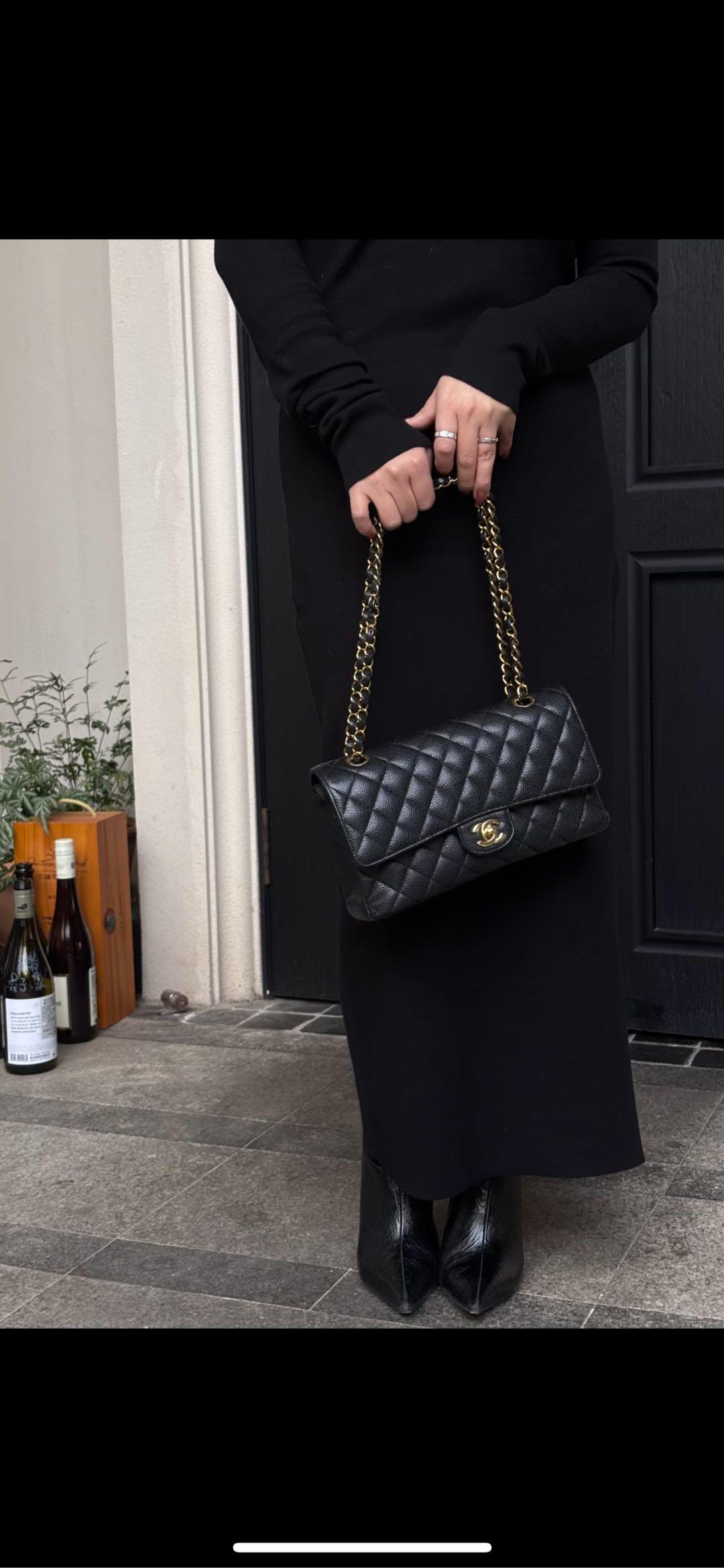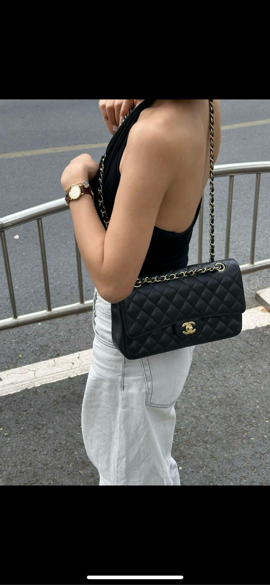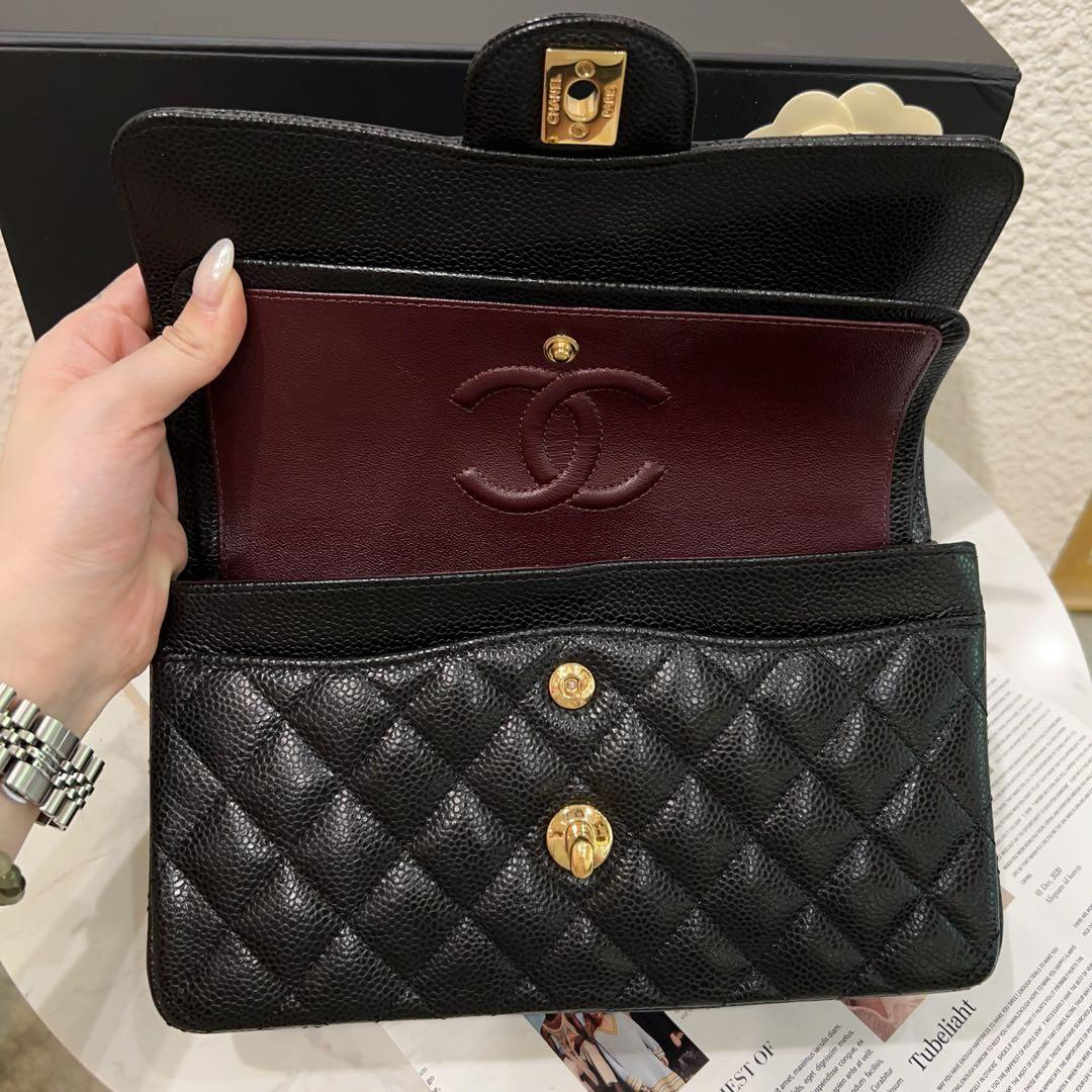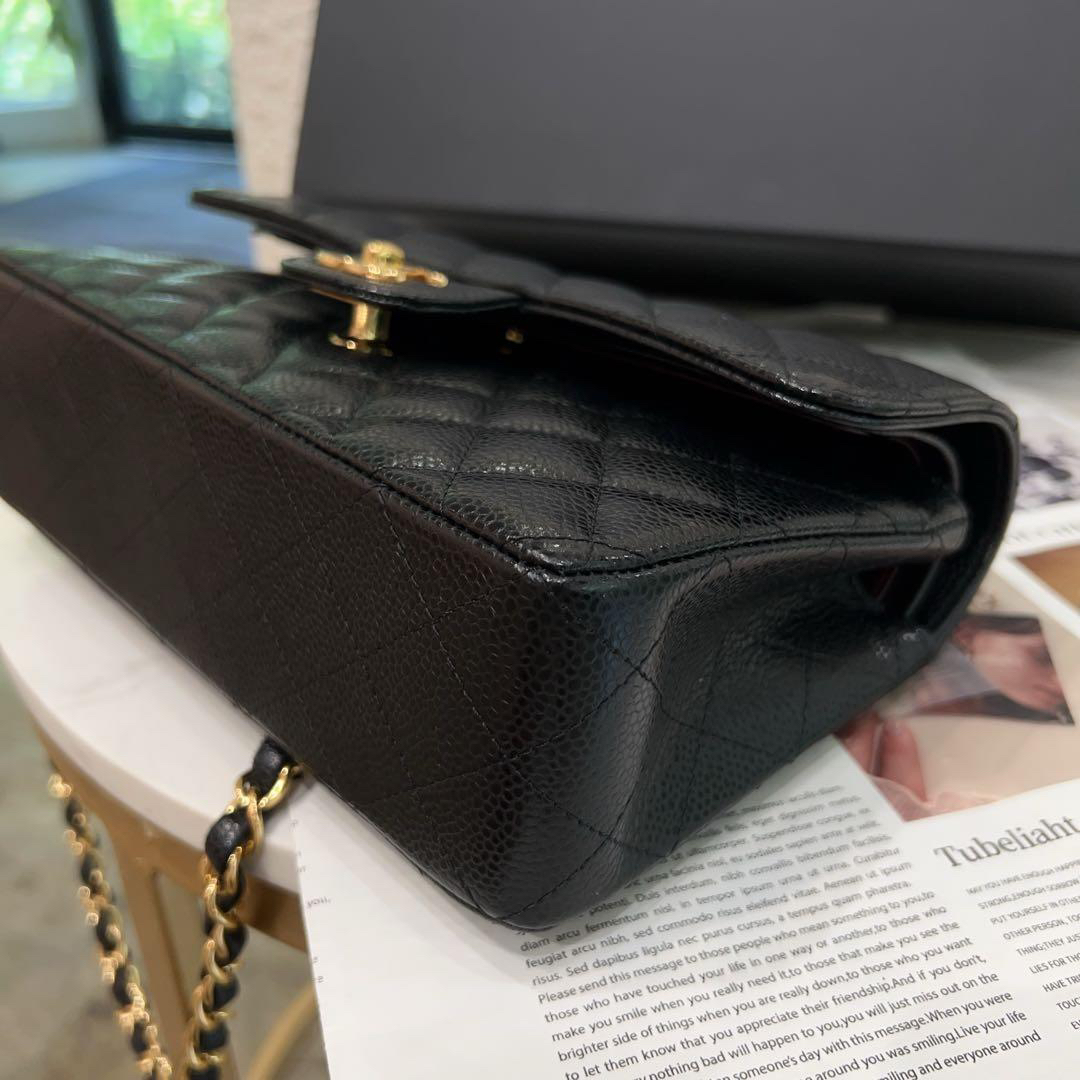 【商品詳情】正品二手 Chanel CF 小号 黑金 荔枝纹牛皮 单肩包🏝️98新 23*14 镭射31开 配件:说明书卡 防尘袋 盒子。经典保值系列