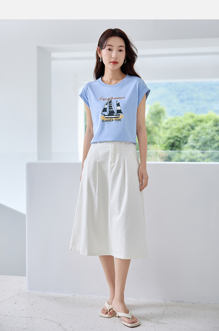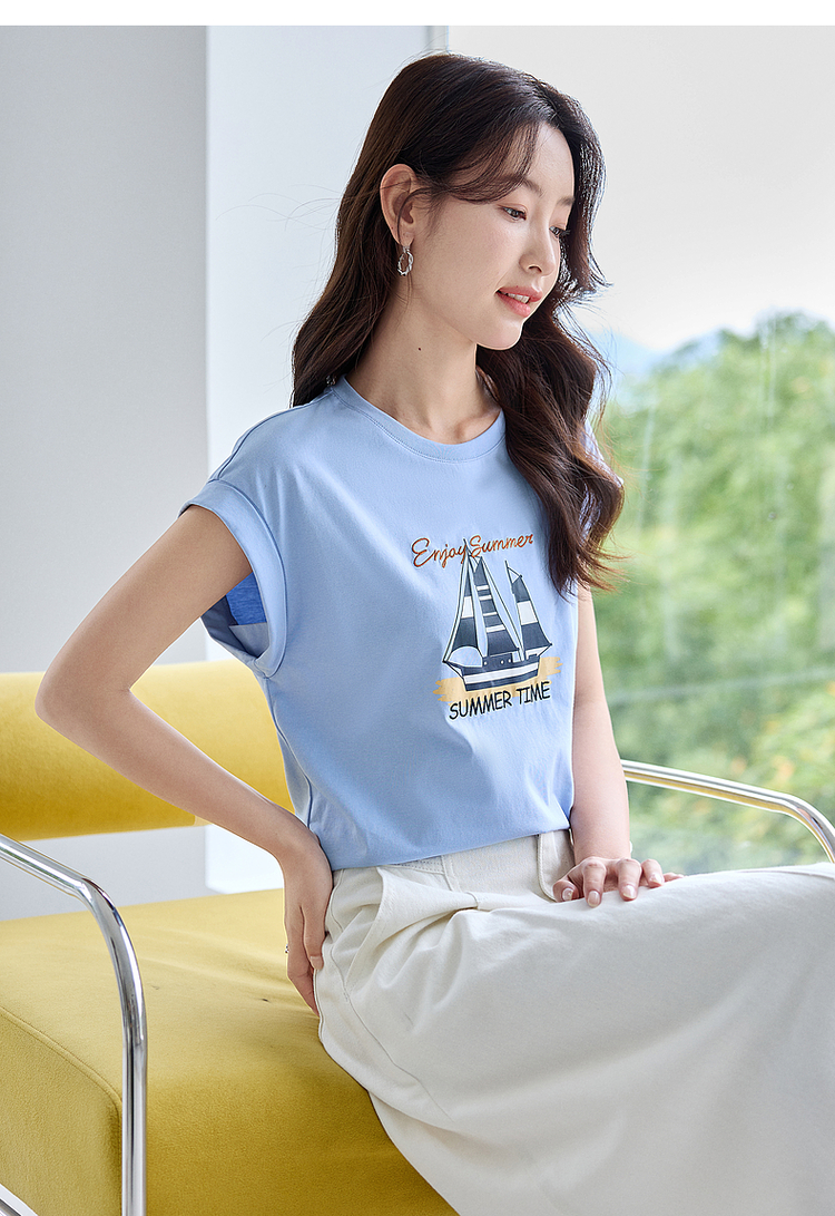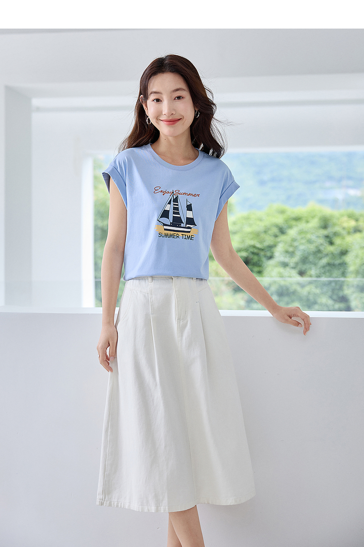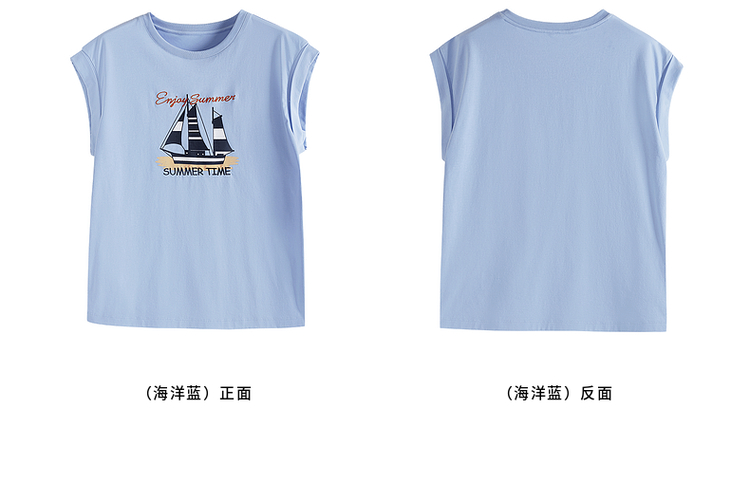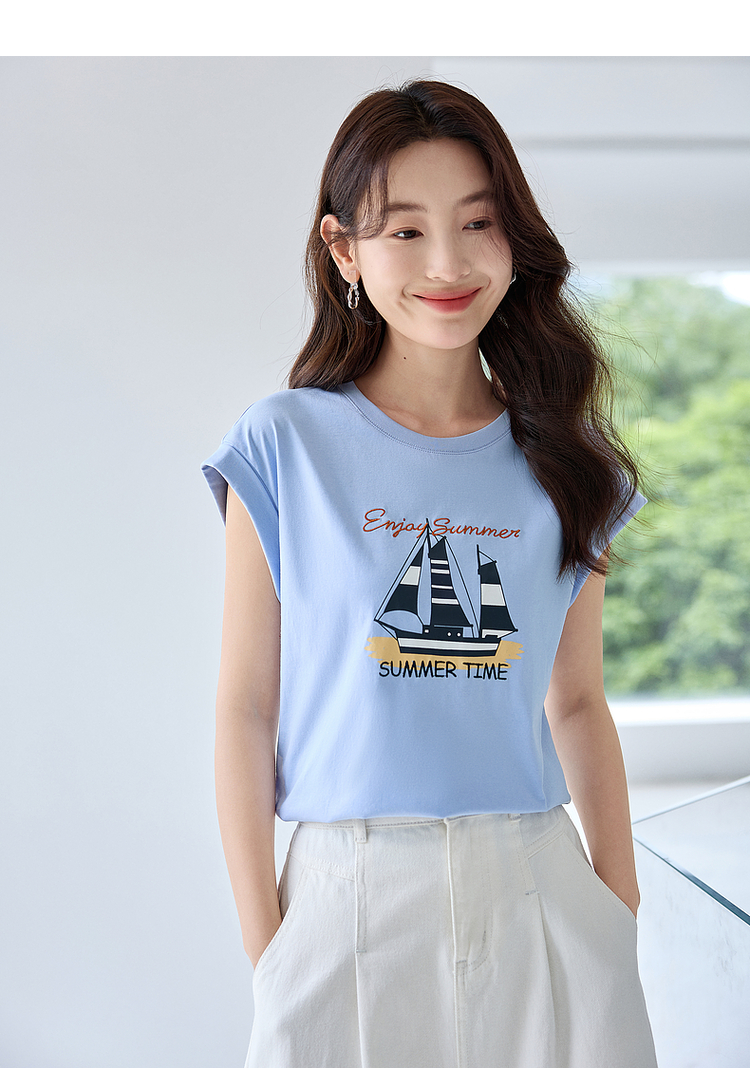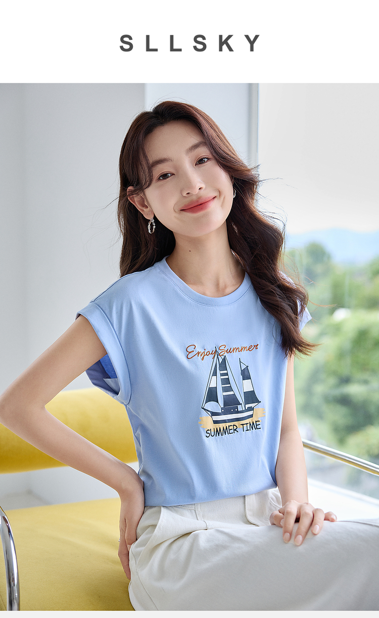 【专属特价】熙世界海军风帆船印花T恤2025夏季新款宽松显瘦圆领设计感上衣