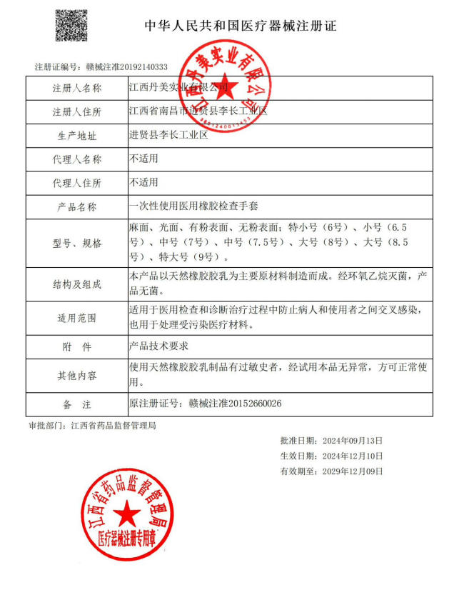 一次性使用橡胶检查手套(丹美 医用橡胶有粉检查手套/一次性使用手套 200只*1)