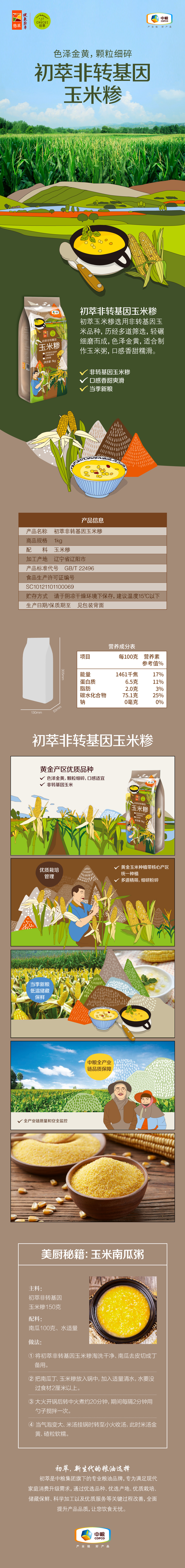 中粮初萃非转基因玉米糁1kg五谷杂粮苞米碴