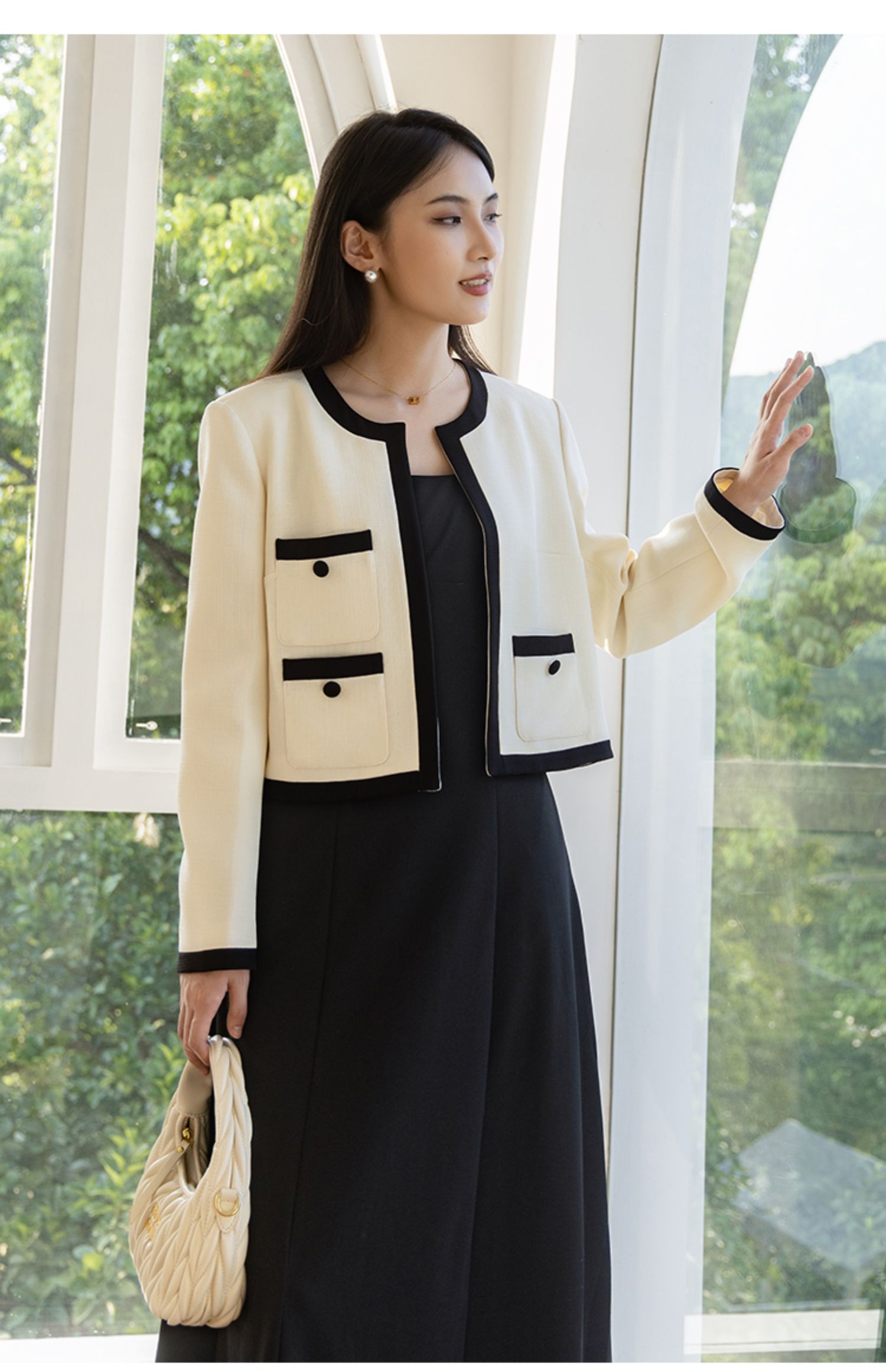 NUTS秋季新款高级感气质通勤小香风时尚撞色短款外套女4340402A1