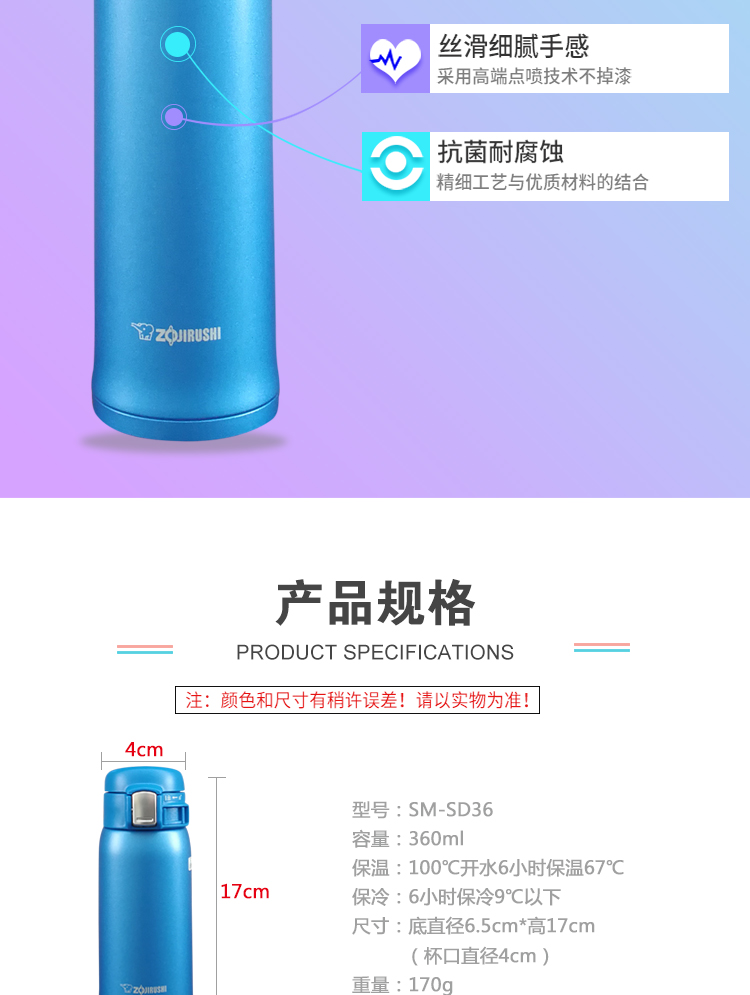 象印车载保温杯(黑)SM-SD36-BC
