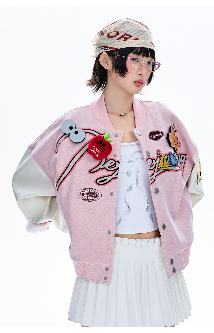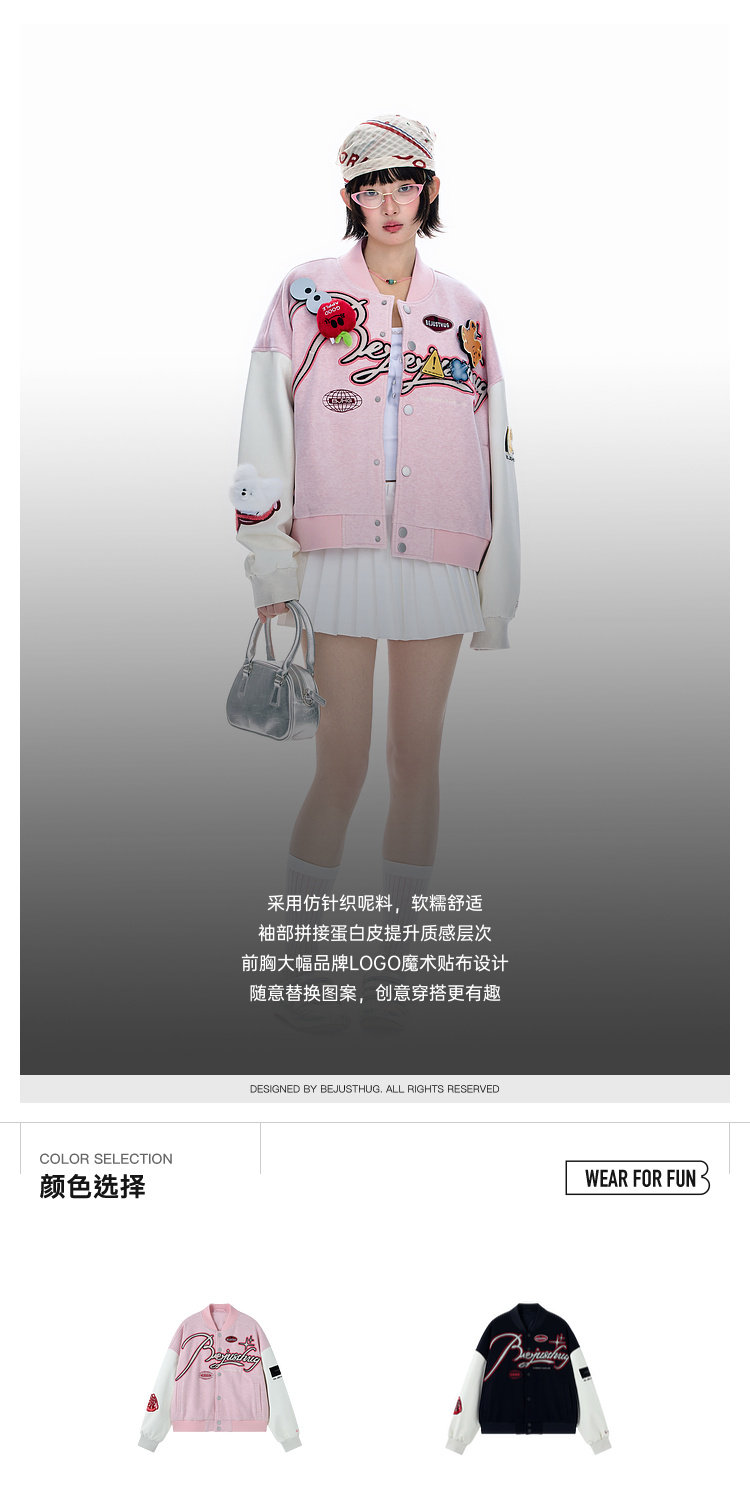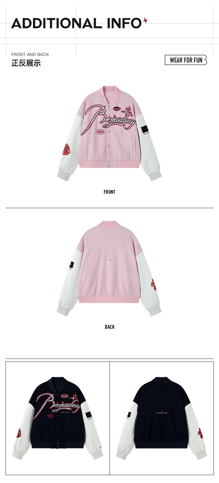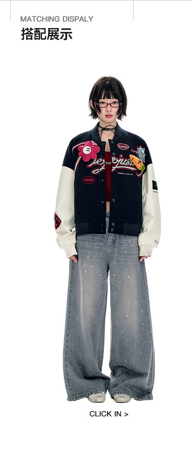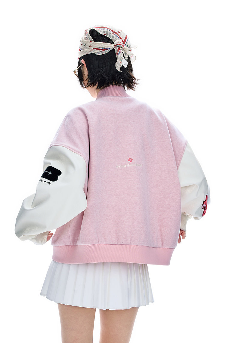 BJHG不计后果贴贴棒球服女款春季新款潮牌美式拼料蛋白皮夹克外套