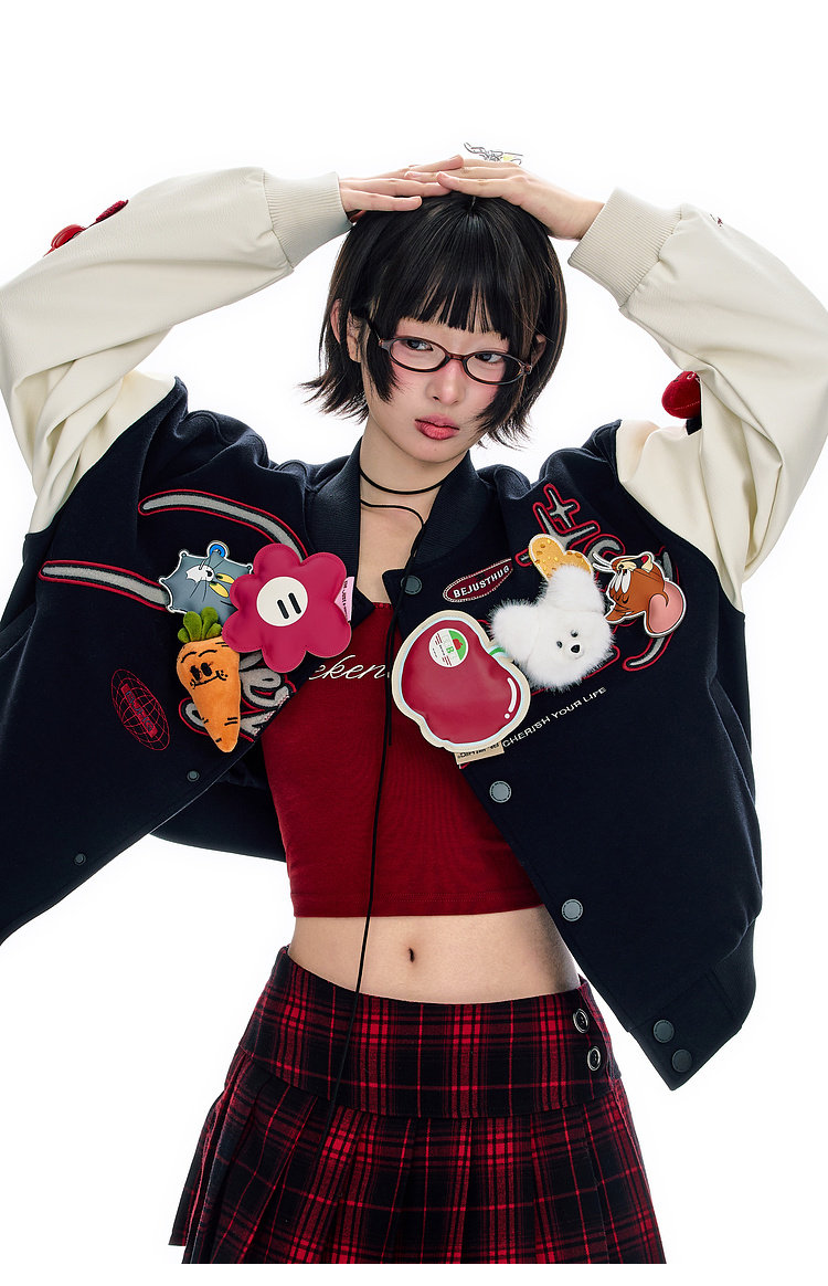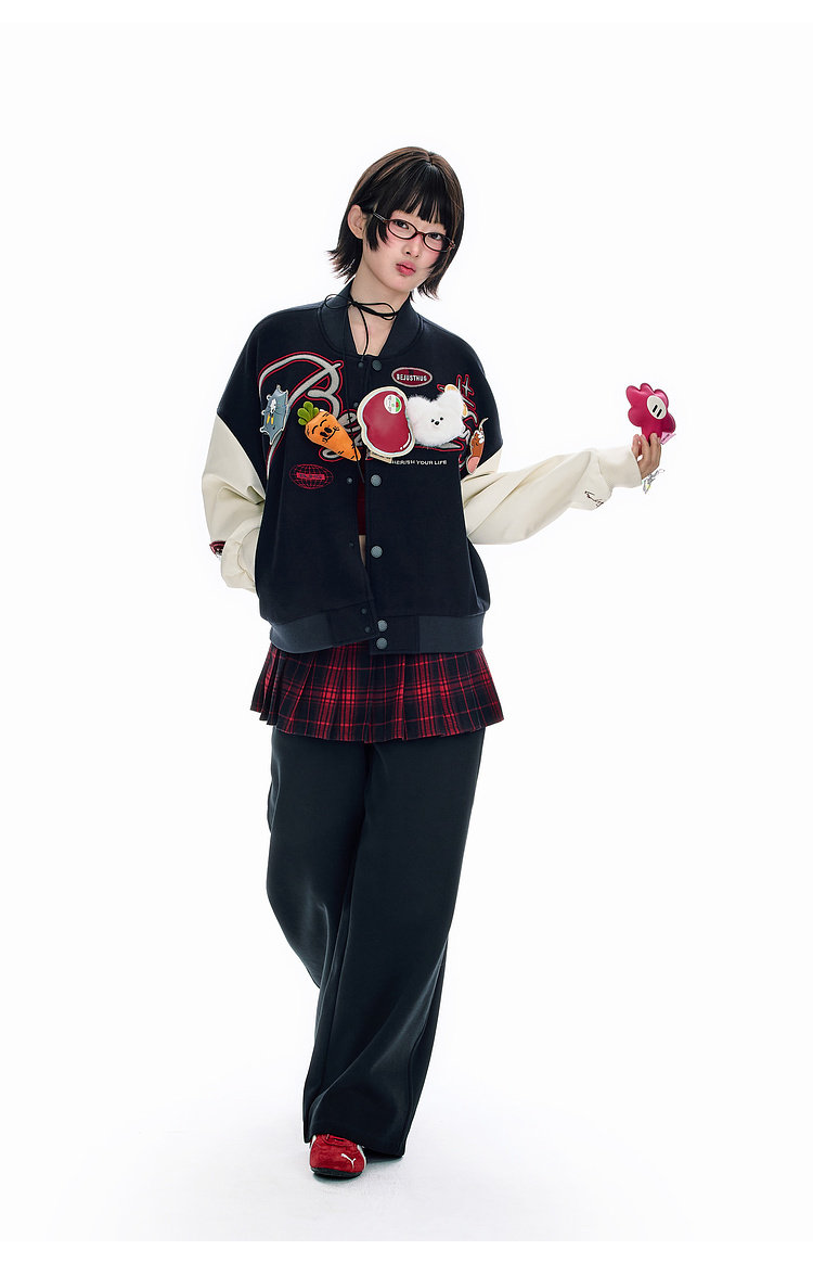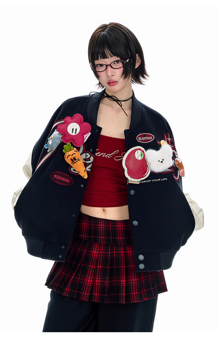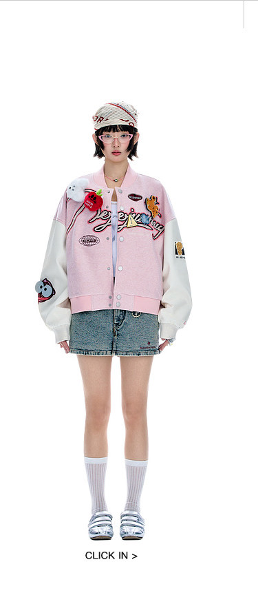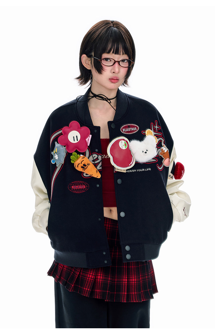 BJHG不计后果贴贴棒球服女款春季新款潮牌美式拼料蛋白皮夹克外套