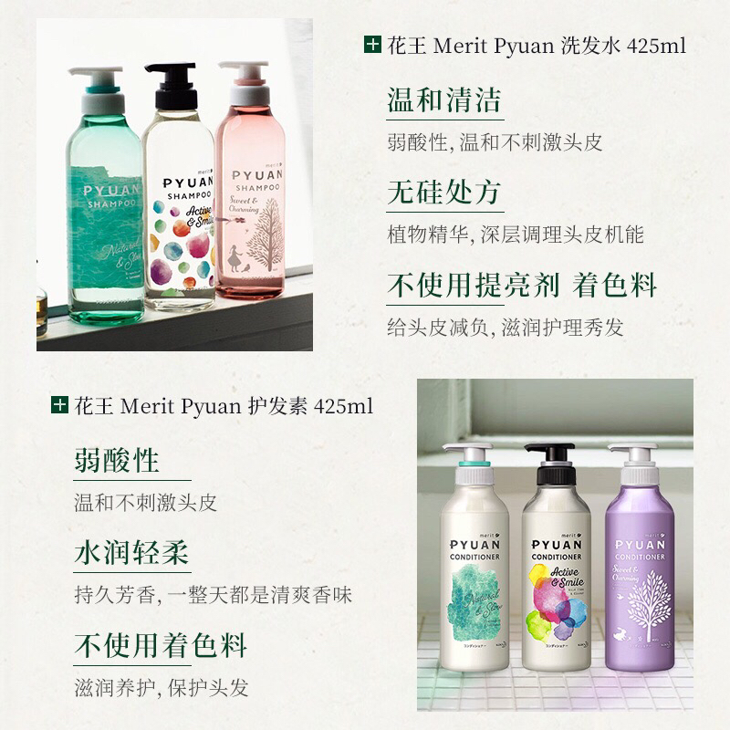 日本花王KAO Merit Pyuan弱酸性无硅洗护套盒-会员6折-图片参考