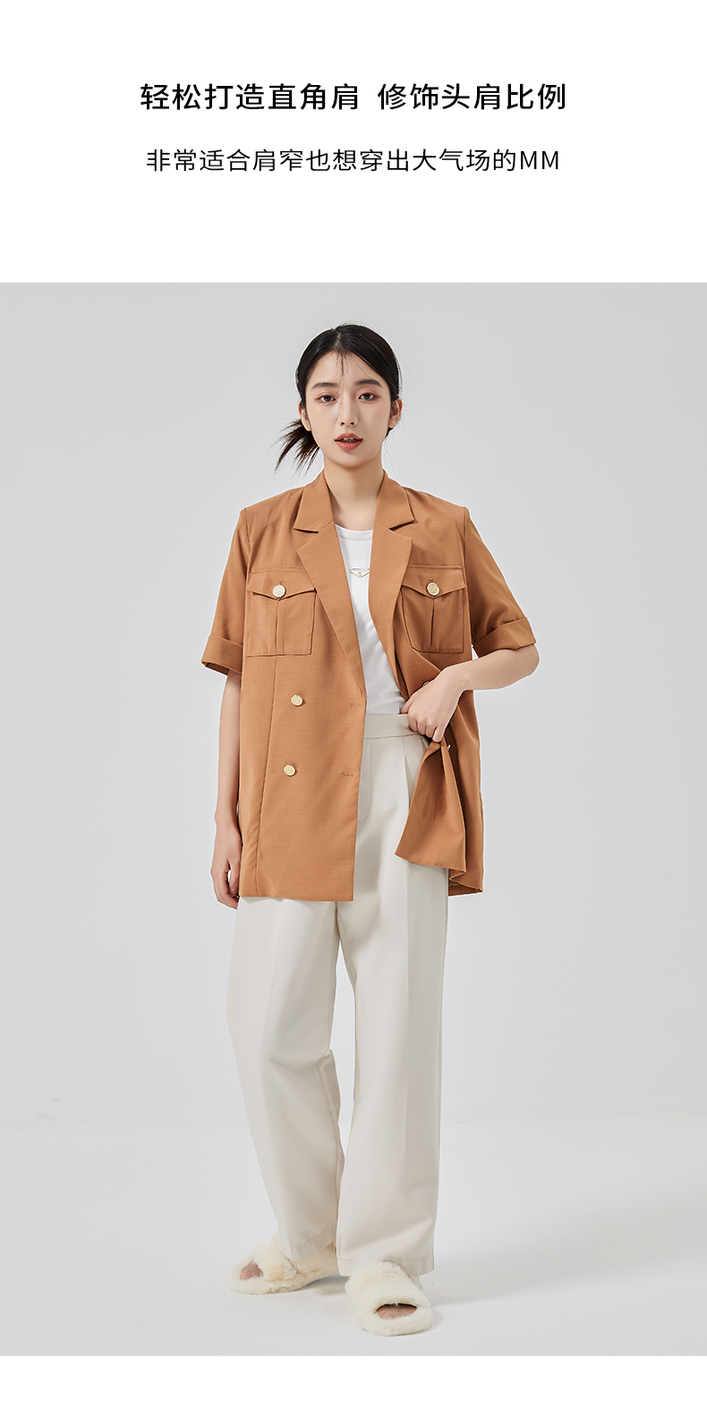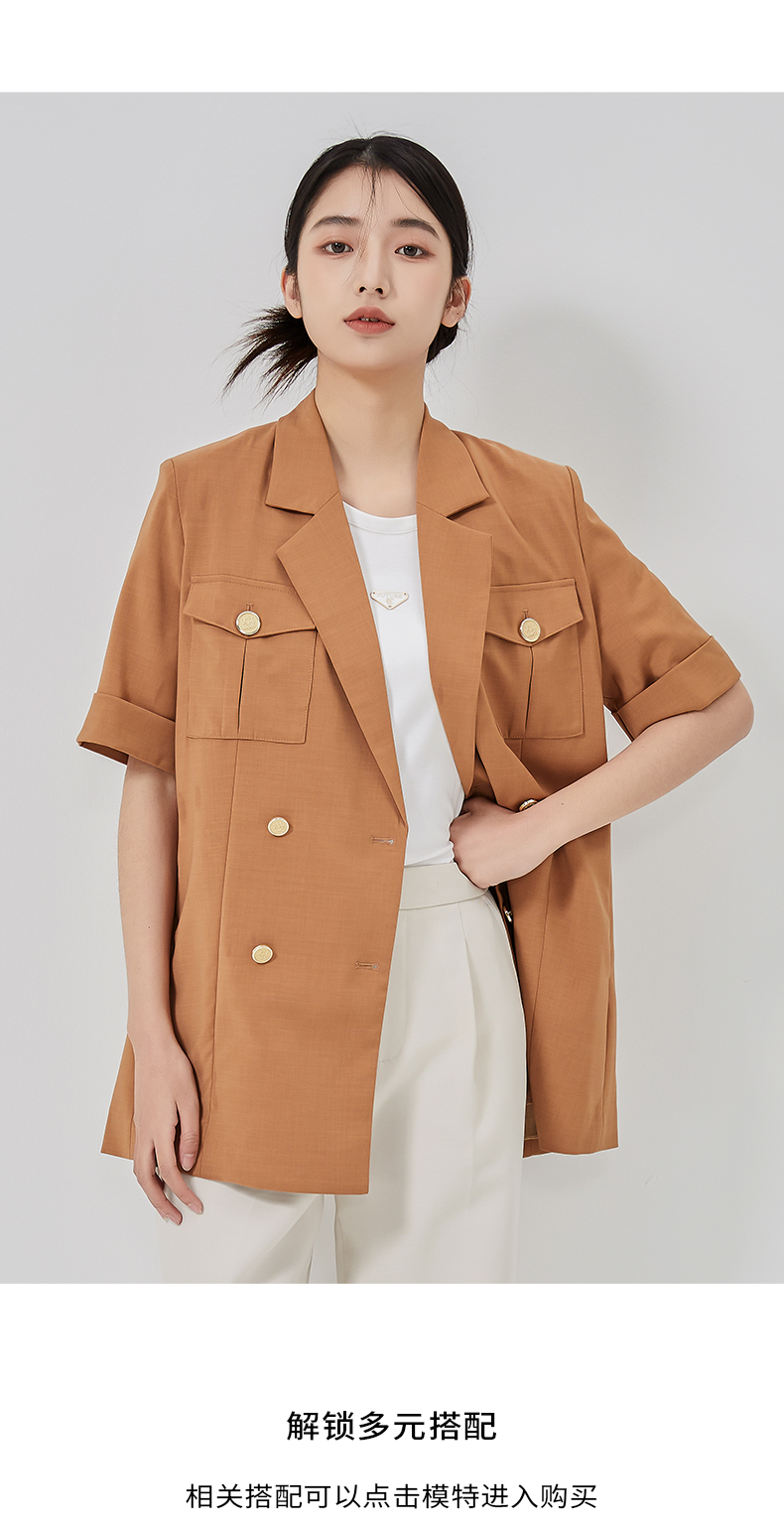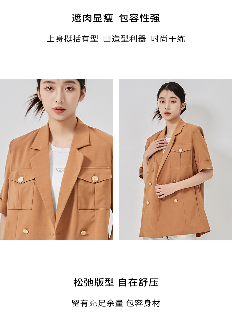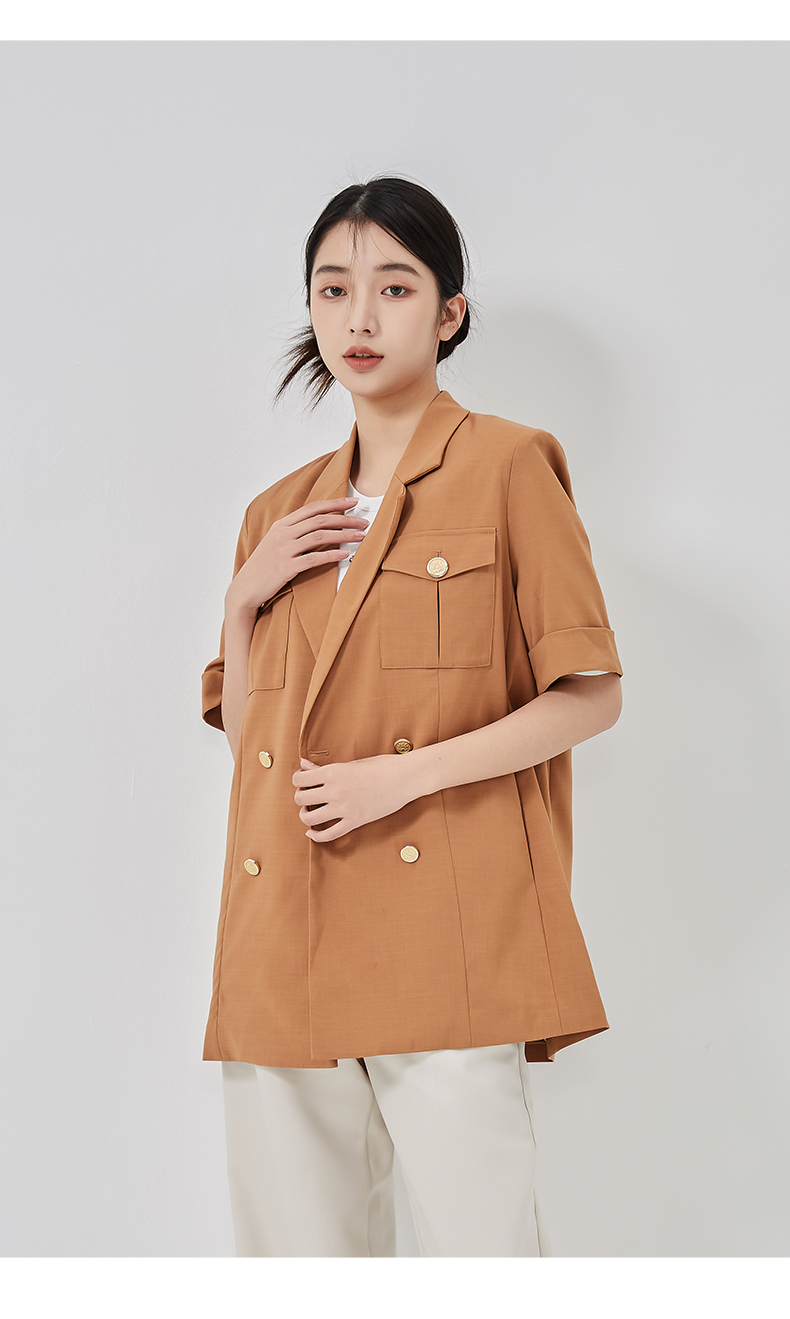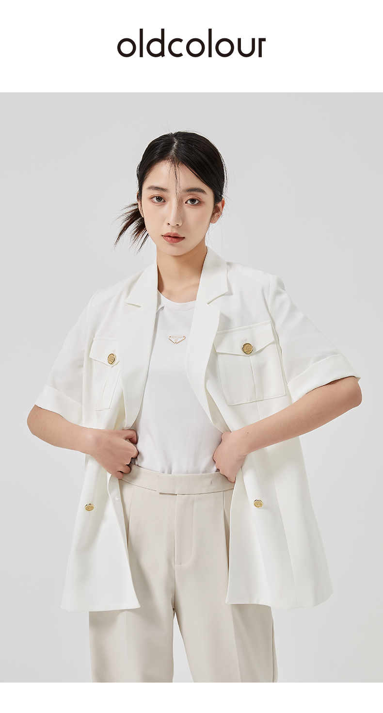 oldcolour2023春季新款休闲简约直筒宽松短袖西装外套女O13048327
