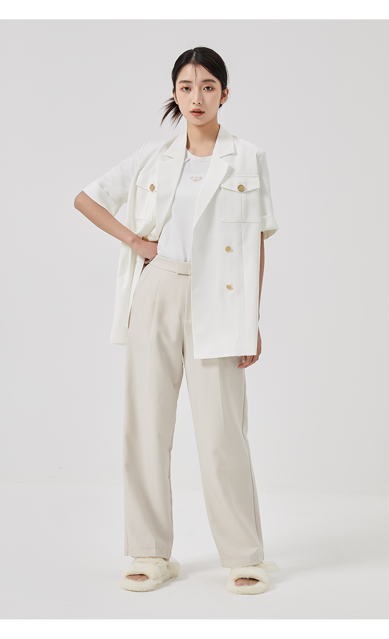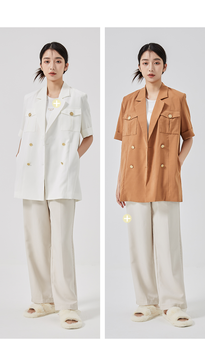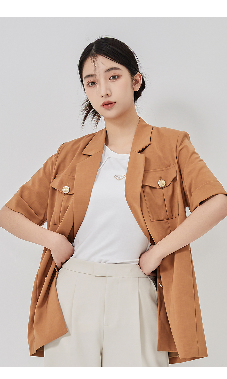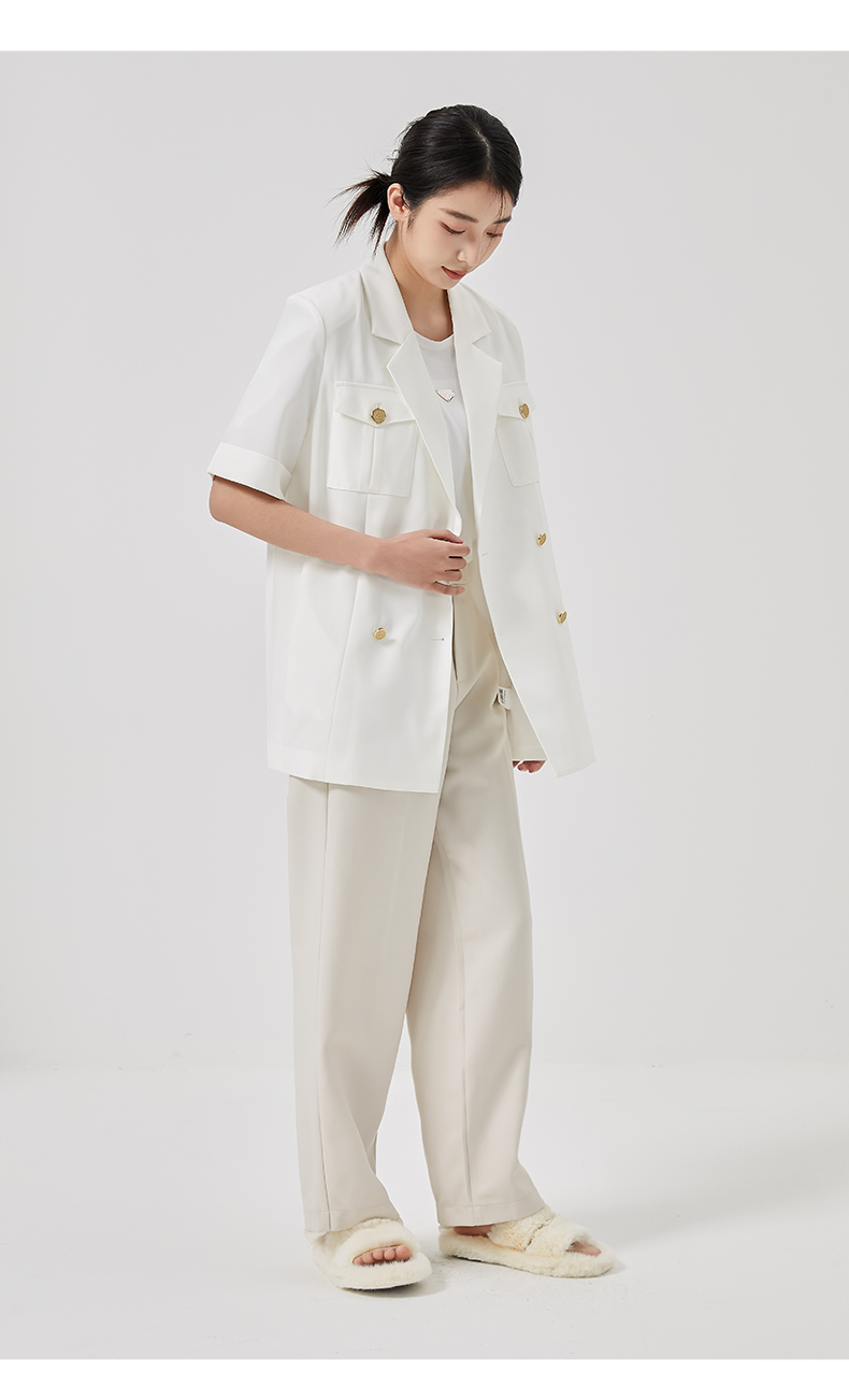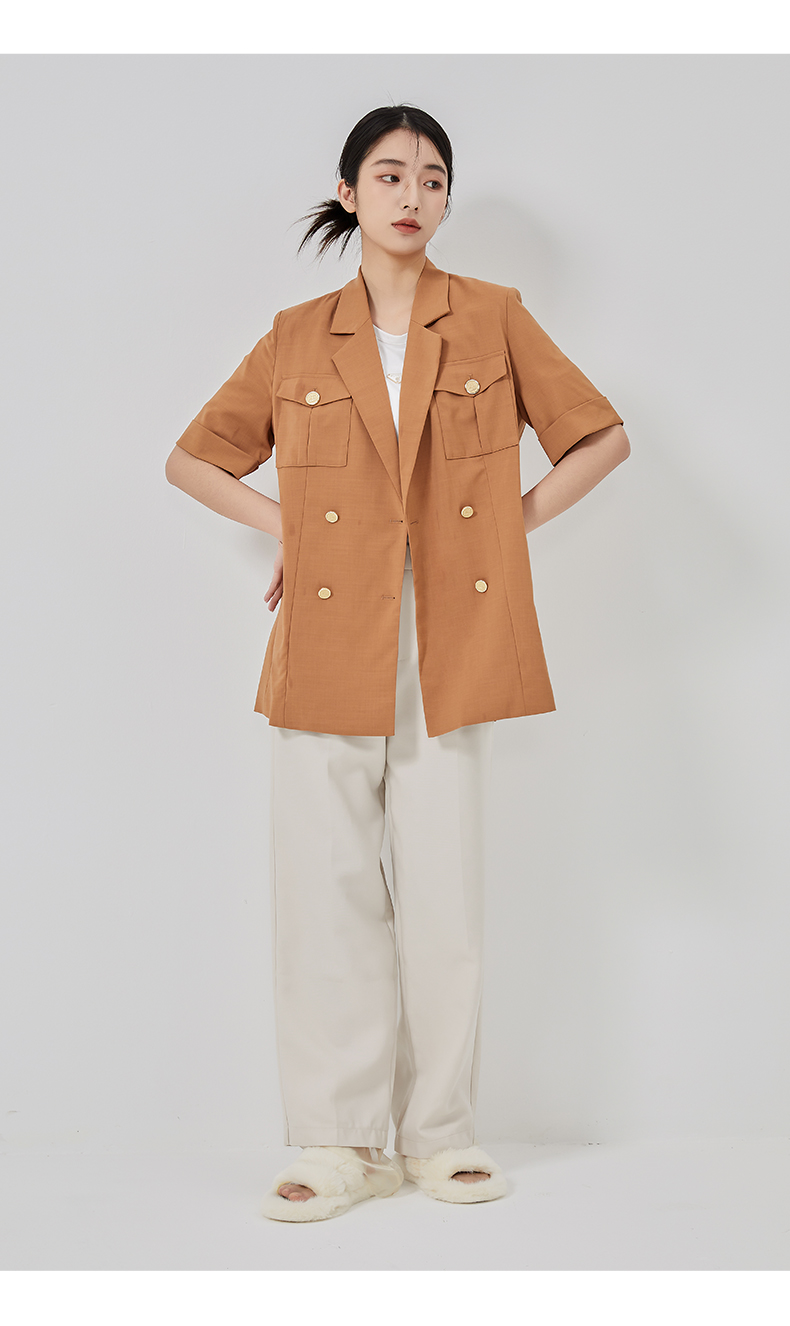 oldcolour2023春季新款休闲简约直筒宽松短袖西装外套女O13048327