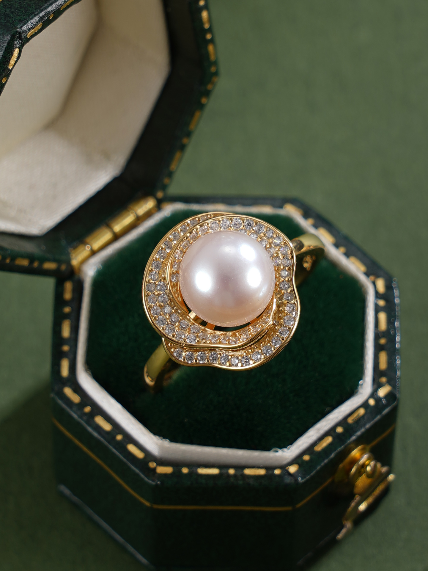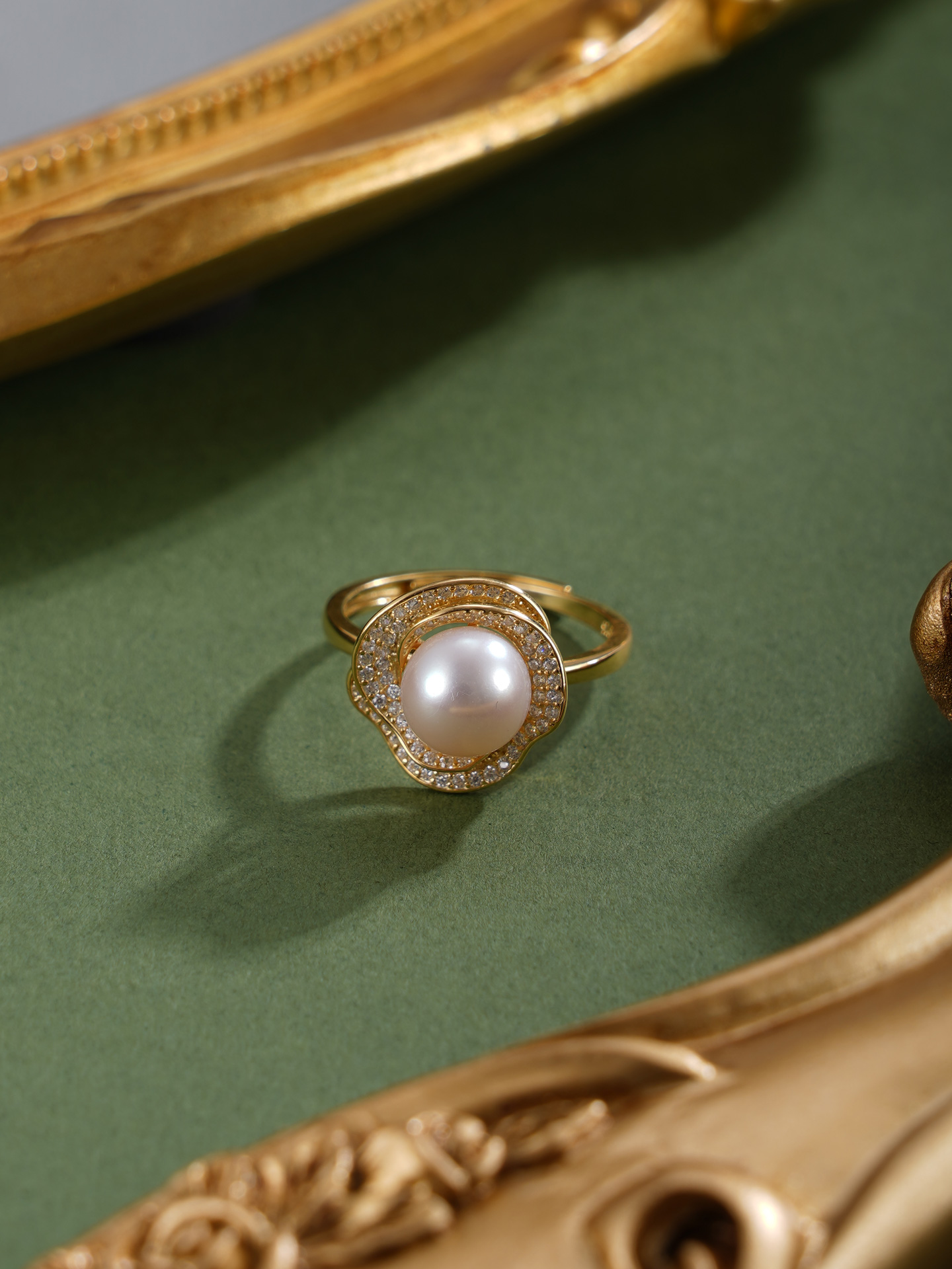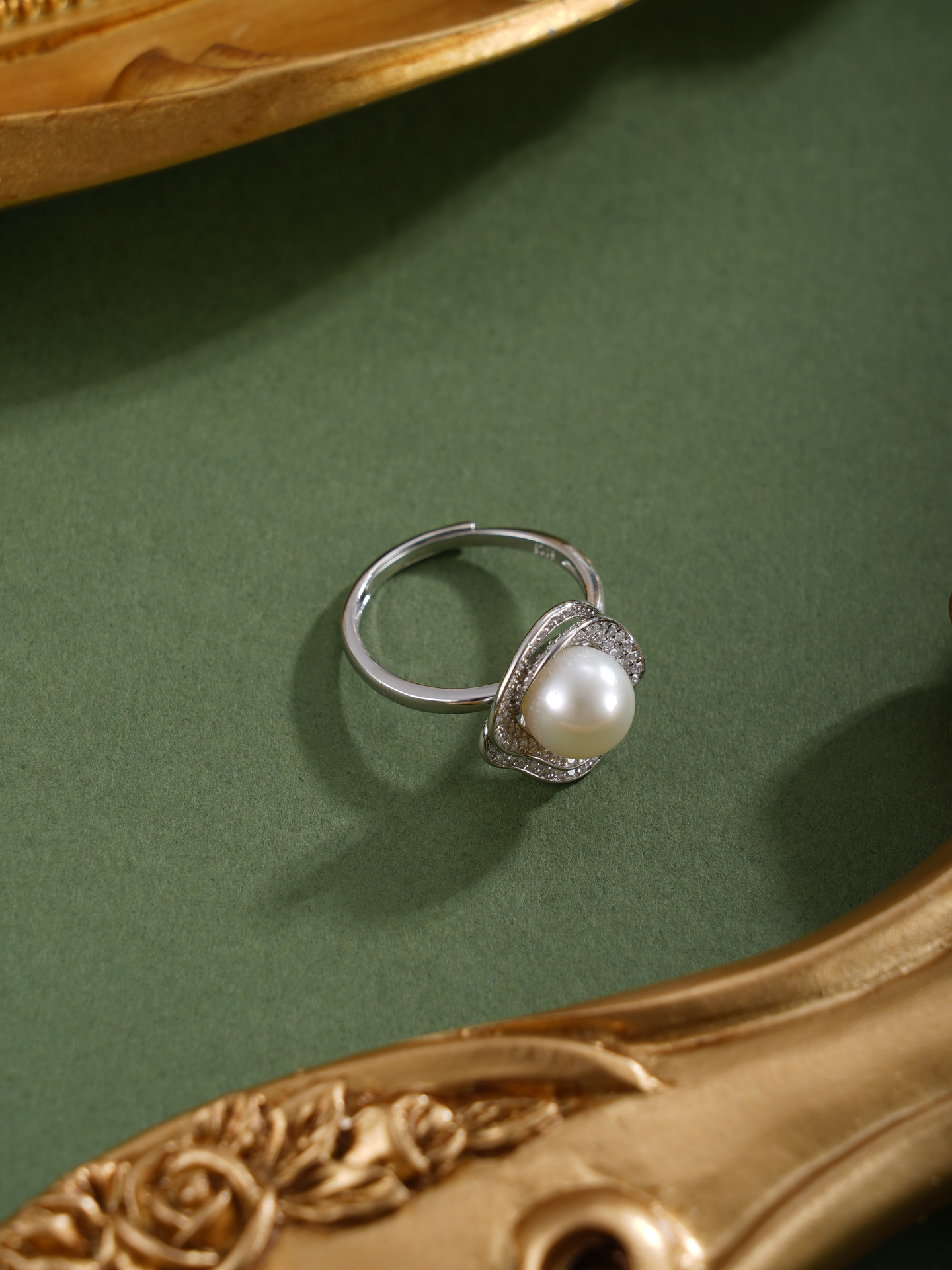 子佩集【花缘情定】银S925珍珠惜王妃戒指【R2139】7.5mm珠双色玫瑰花朵2601