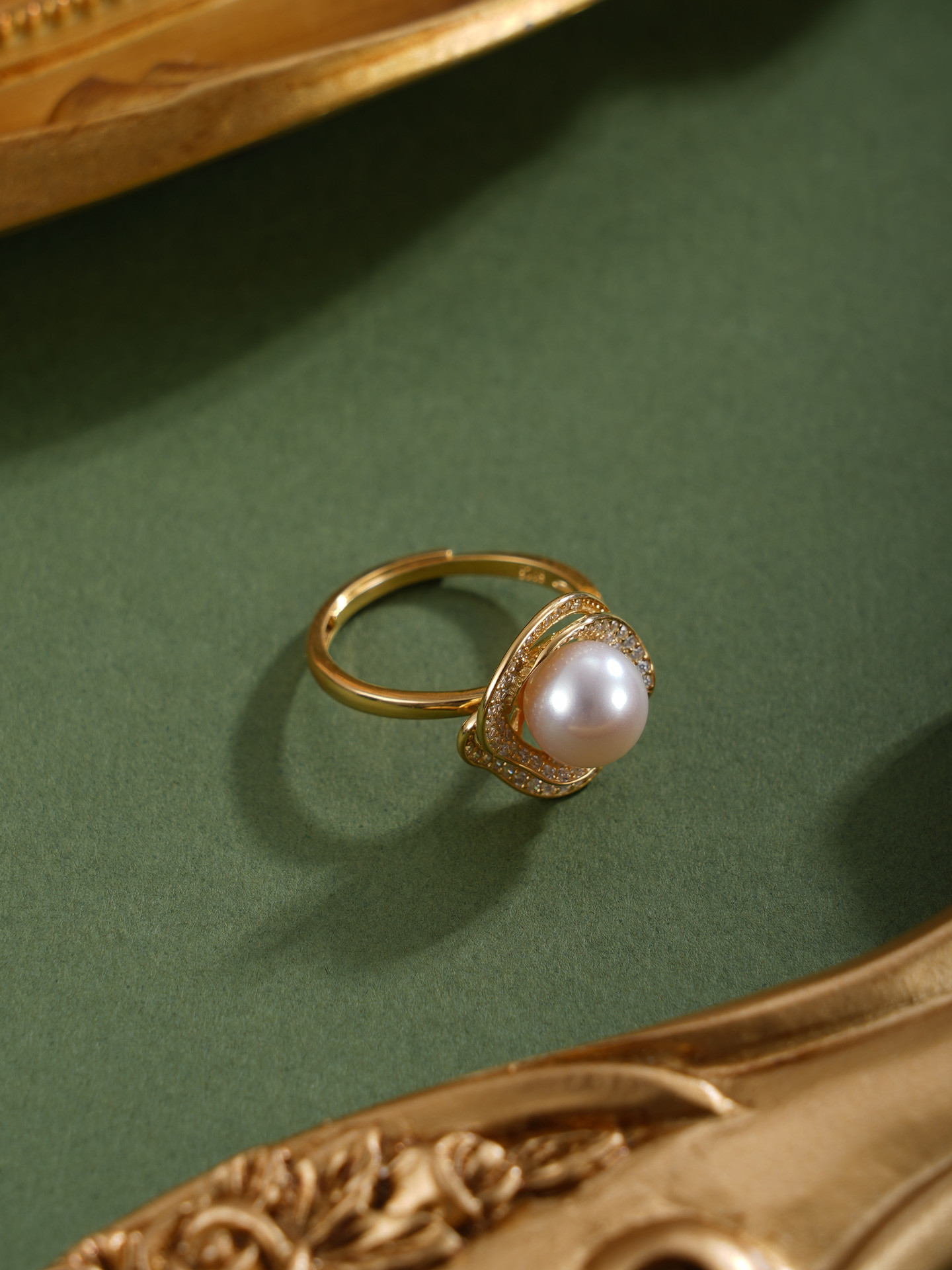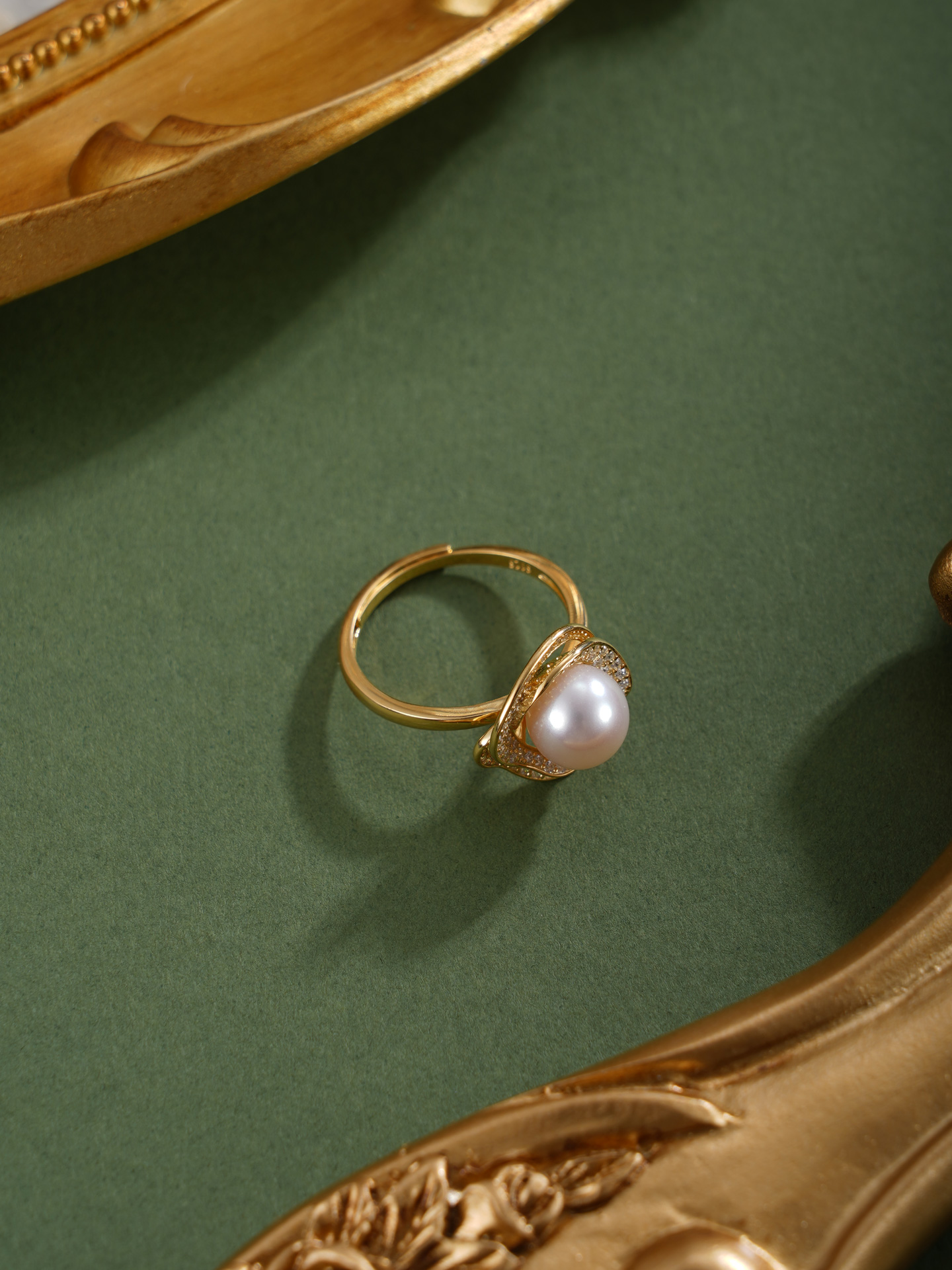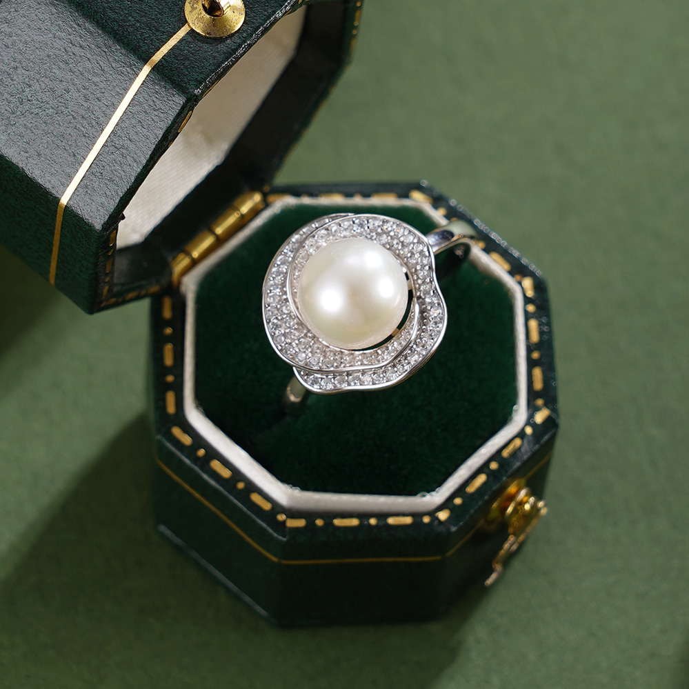 子佩集【花缘情定】银S925珍珠惜王妃戒指【R2139】7.5mm珠双色玫瑰花朵2601
