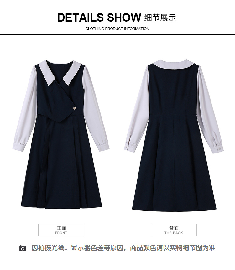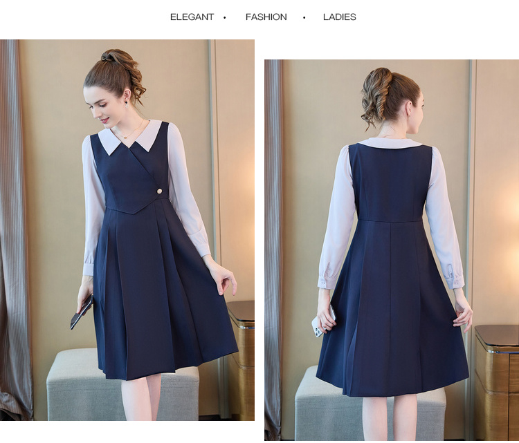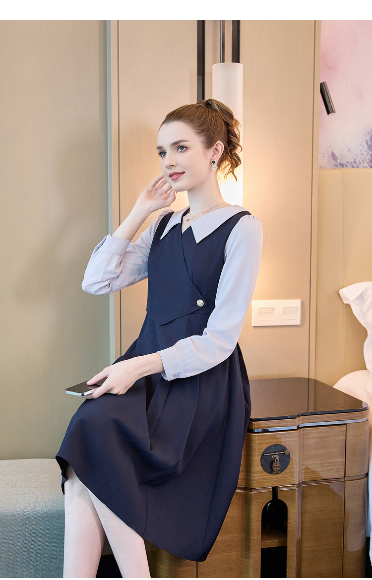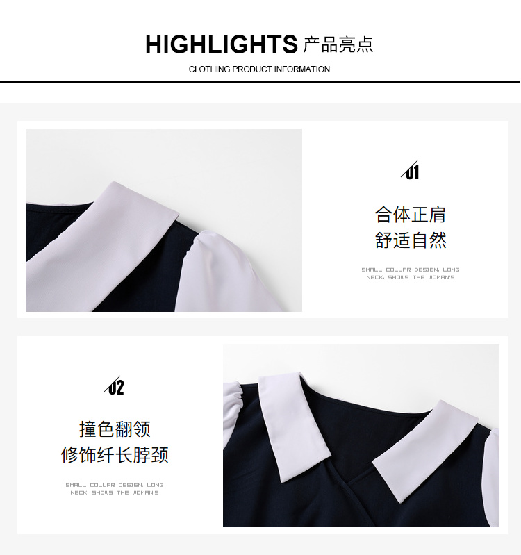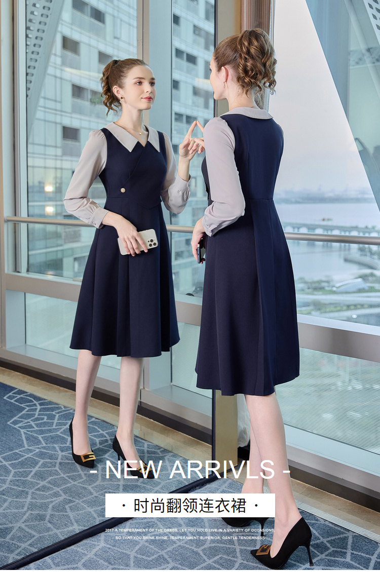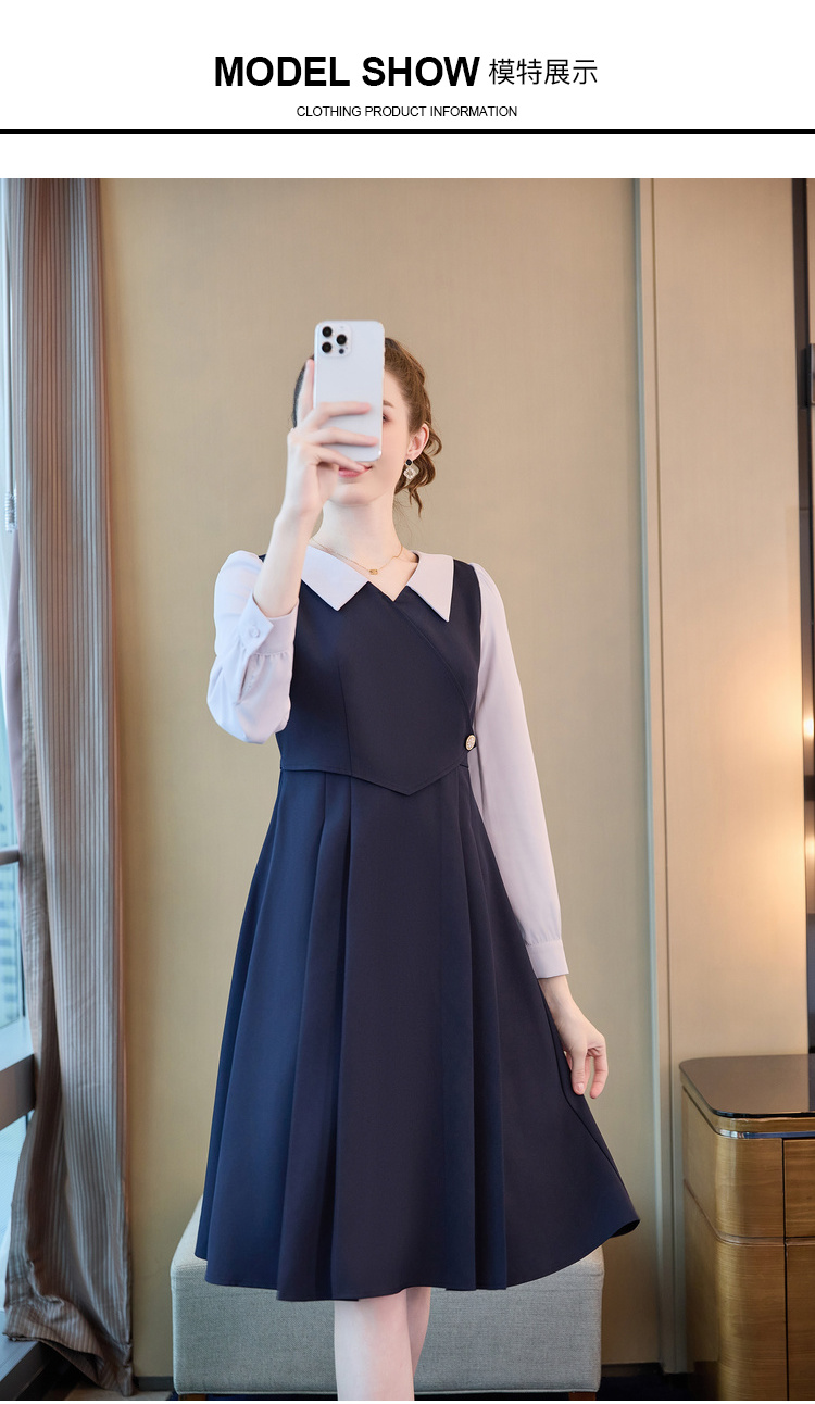 奢姿2024年秋季新款大码女装翻领减龄裙子胖mm撞色简约时尚连衣裙9933860185