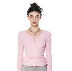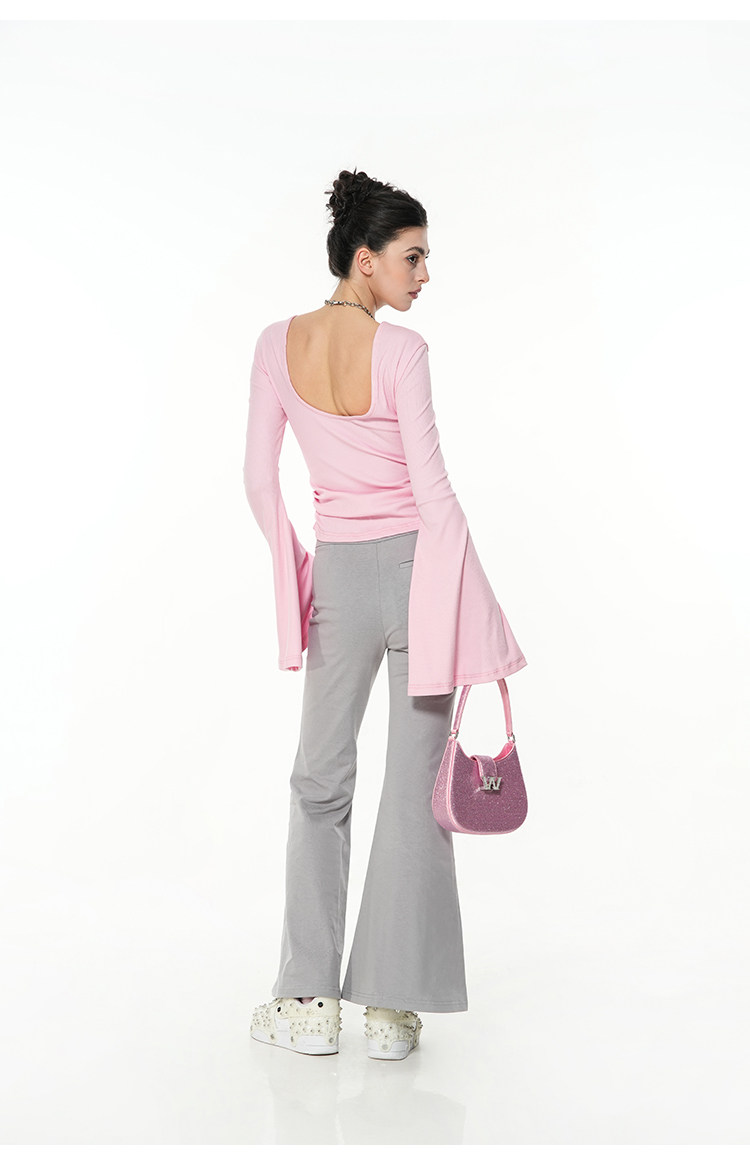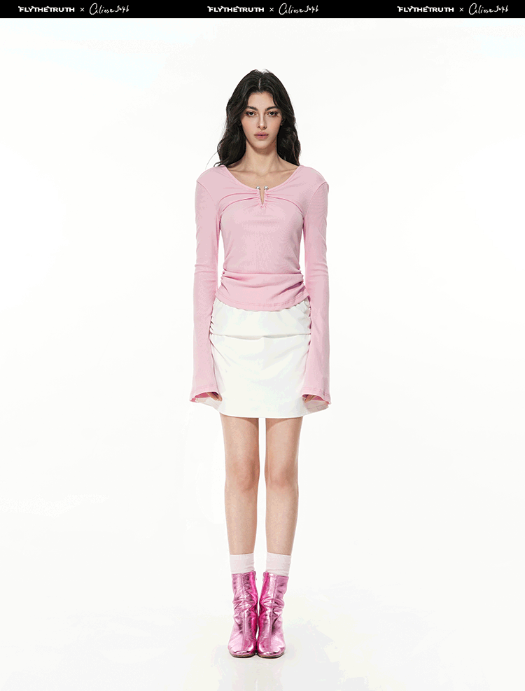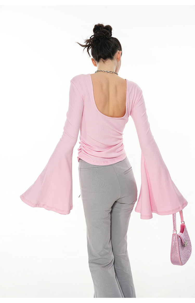 FTT Flythetruth绯红梦境 纯欲珍珠环喇叭袖打底衫女早秋长袖上衣