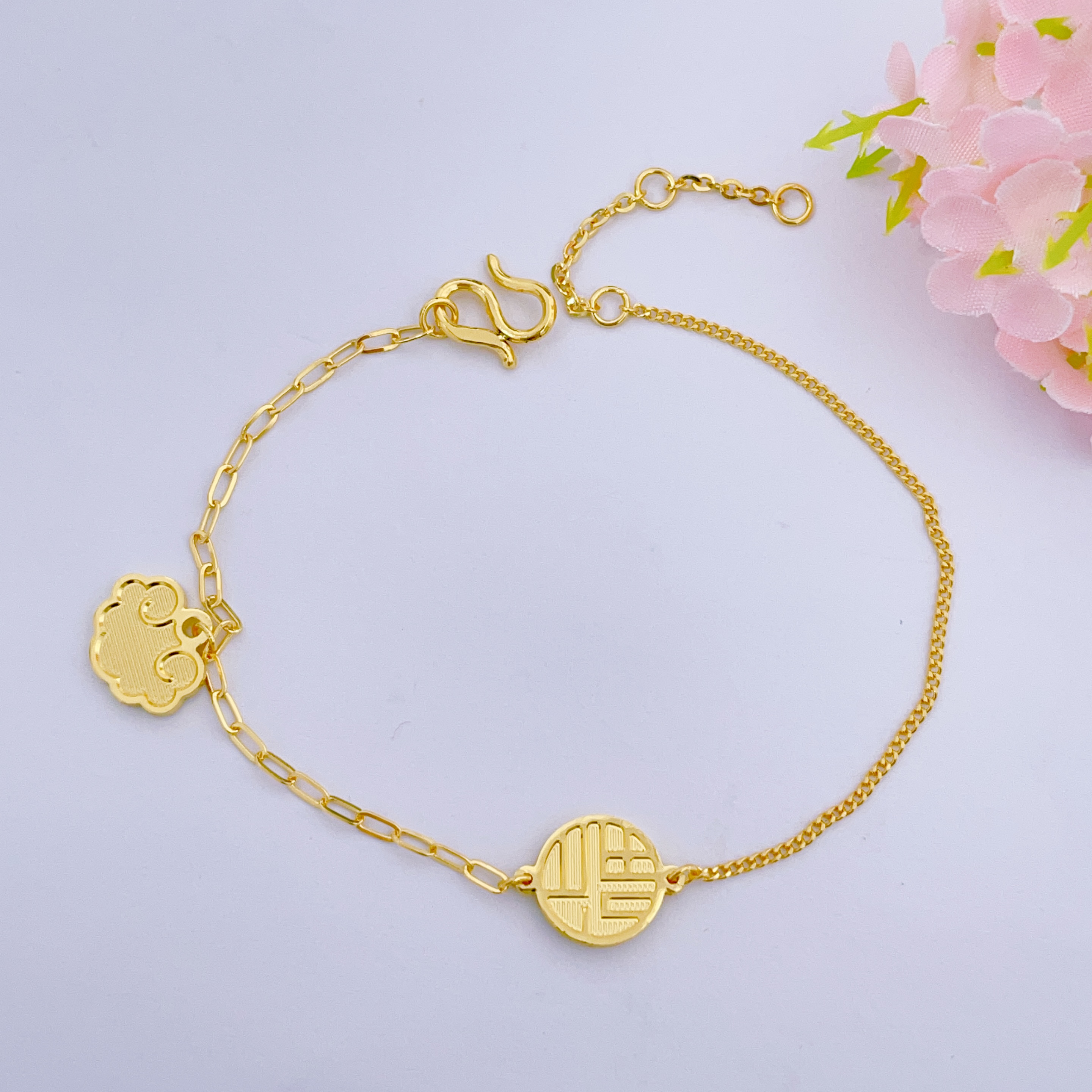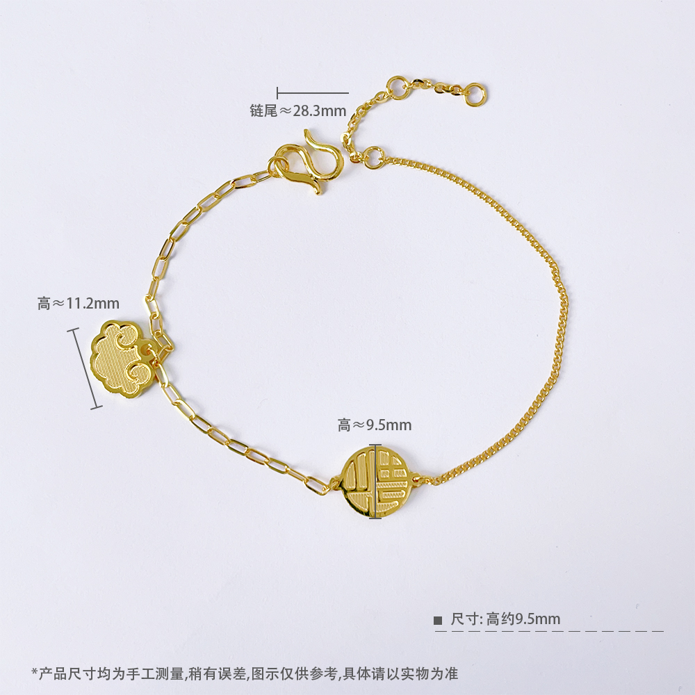 【限时克减150元】足金999.99 【精品】五9黄金调节AB链如意锁福牌手链(ACSL00143)(预售产品下单后不退款不退货不换货不补差价)(预售产品下单后不退款不退货不换货不补差价)