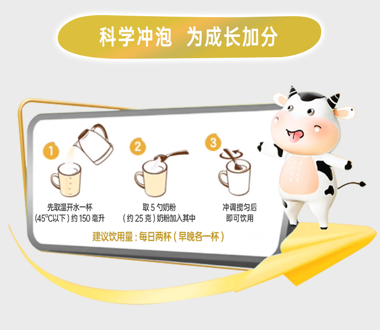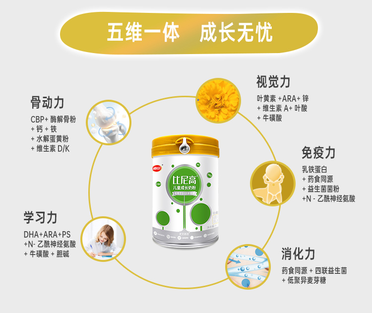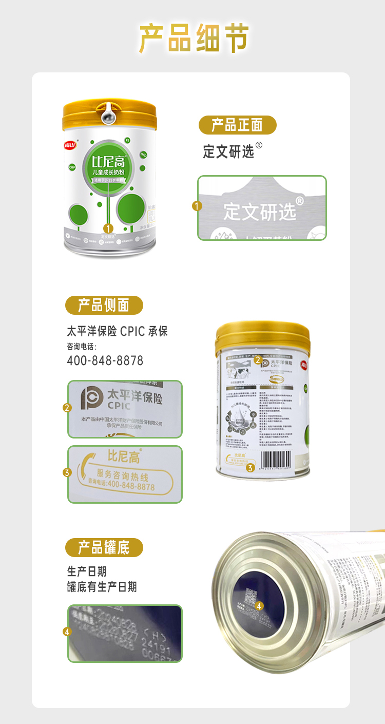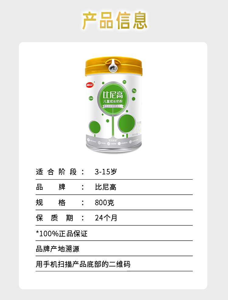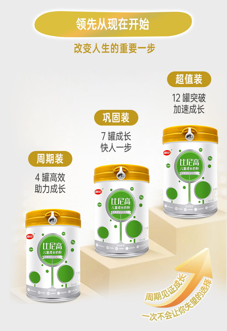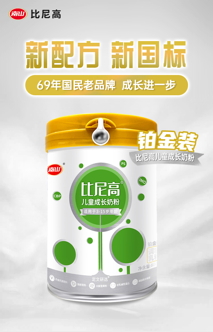 【升级铂金版】南山 比尼高儿童成长奶粉青少年学生儿童营养牛奶成长高钙奶粉补钙铁锌维生素800g