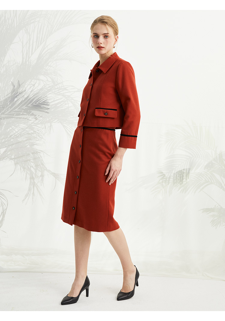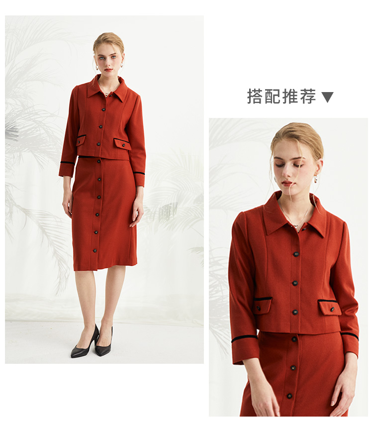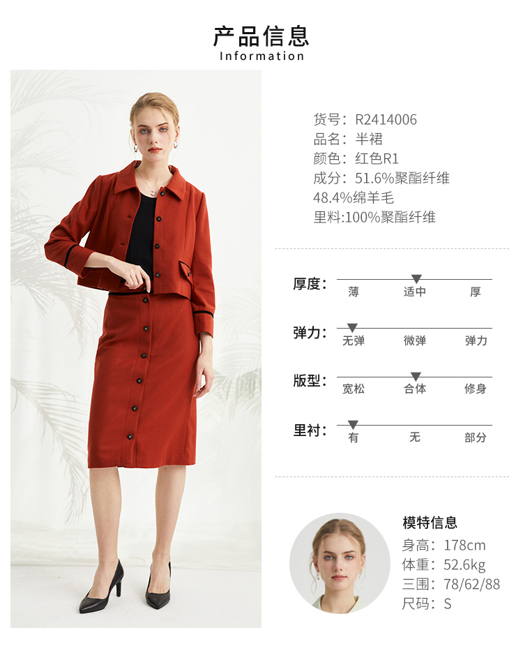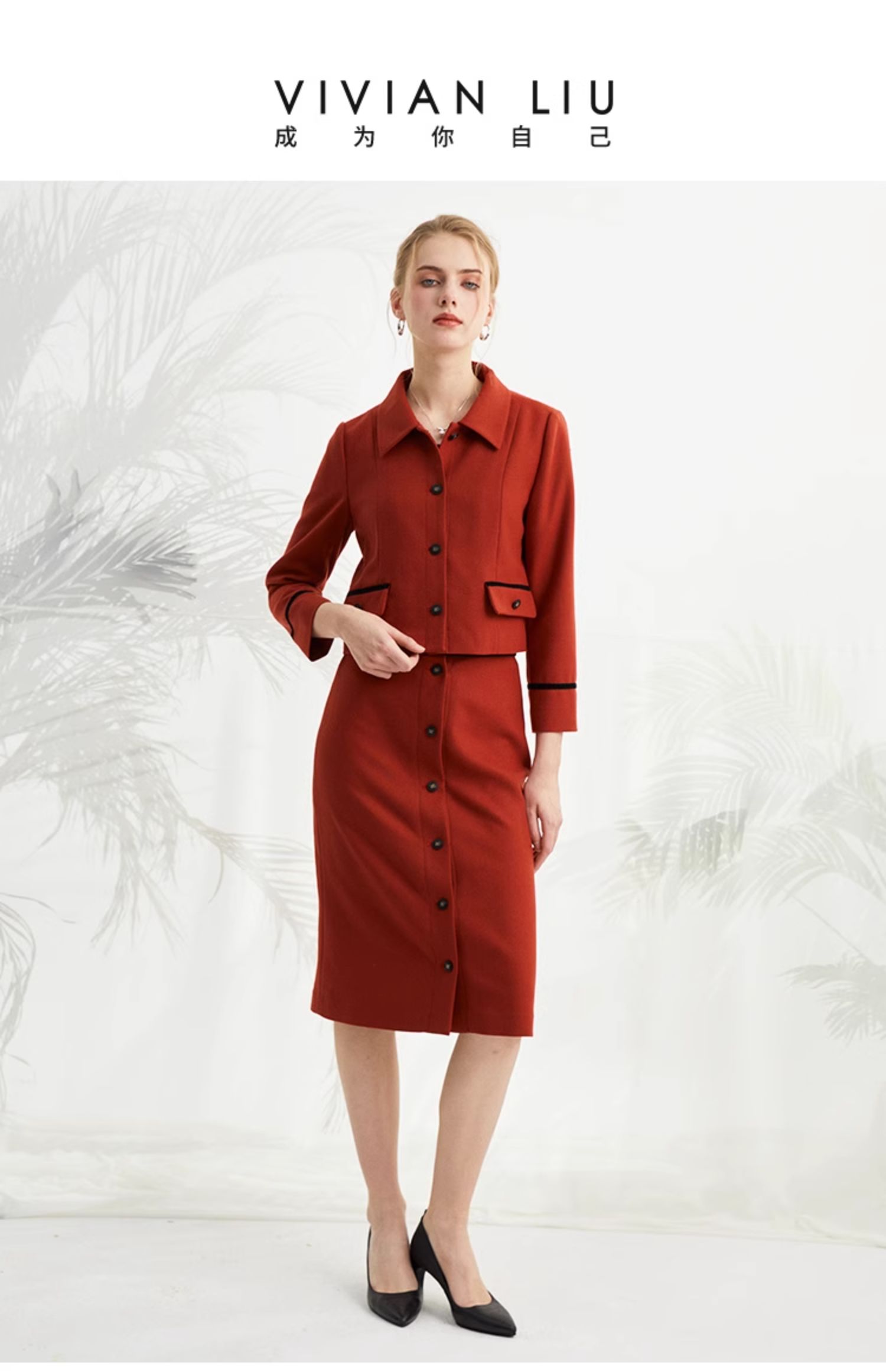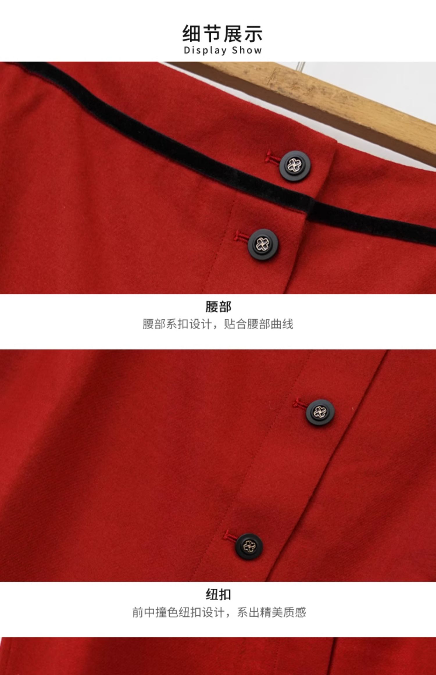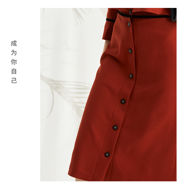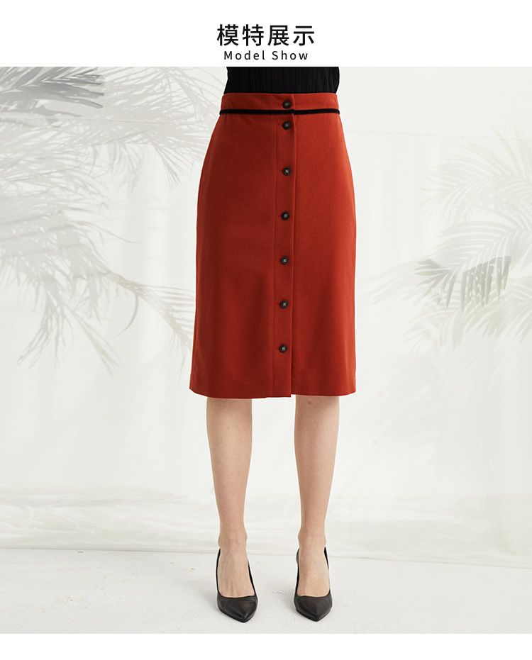 VIVIAN LIU薇薇安刘R2414006春女装新款前中撞色纽扣小香风半裙