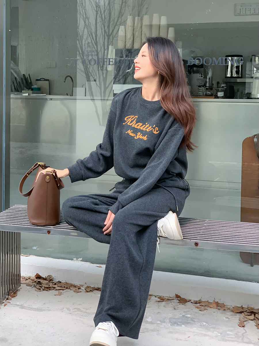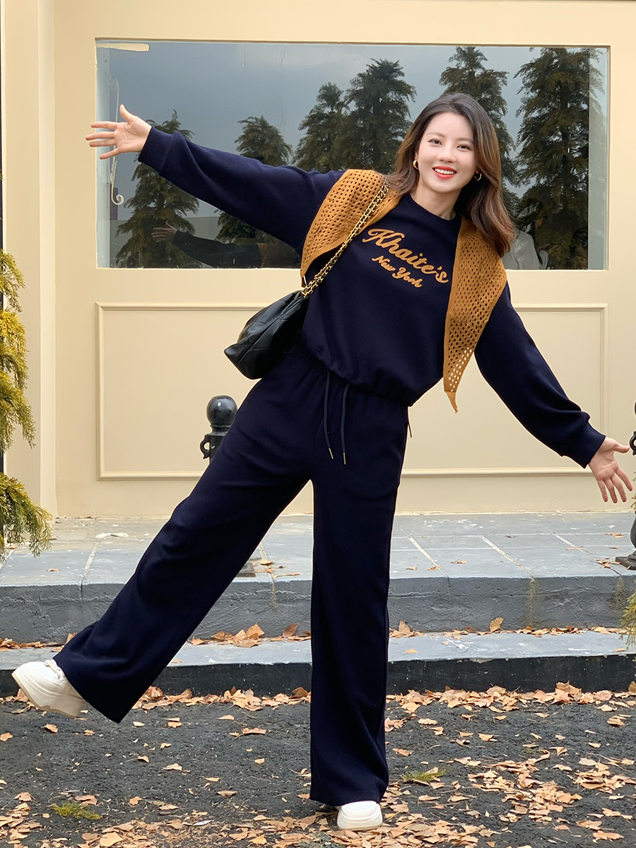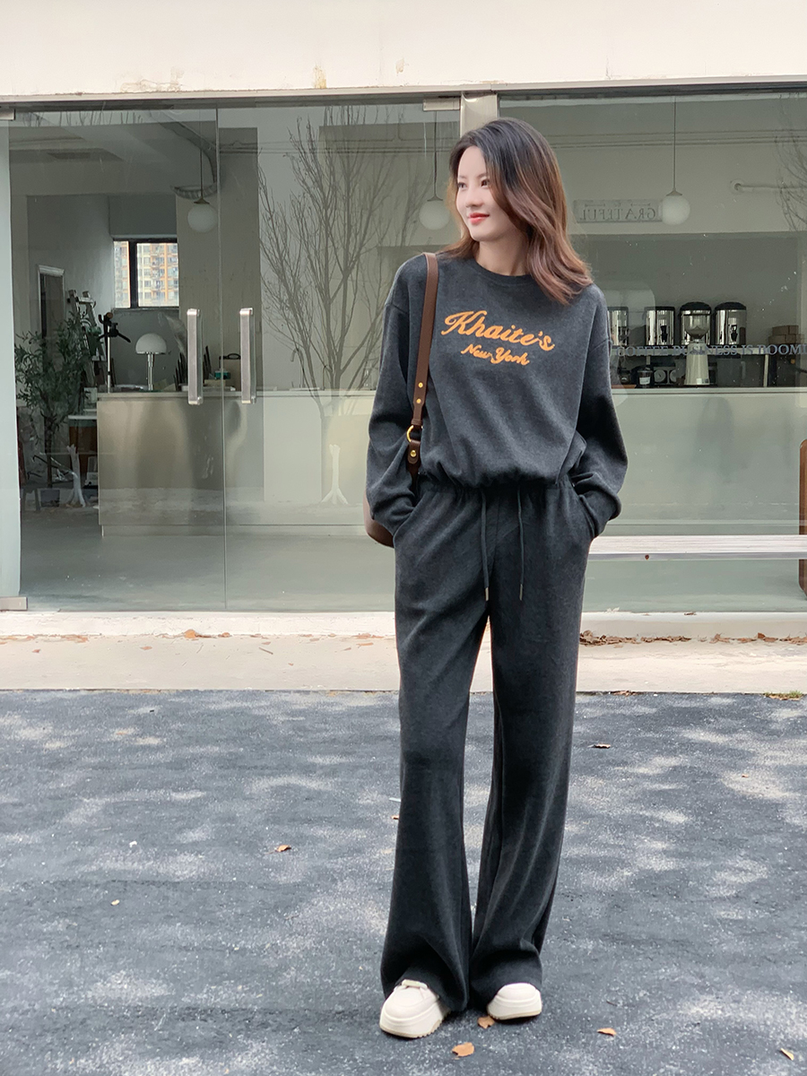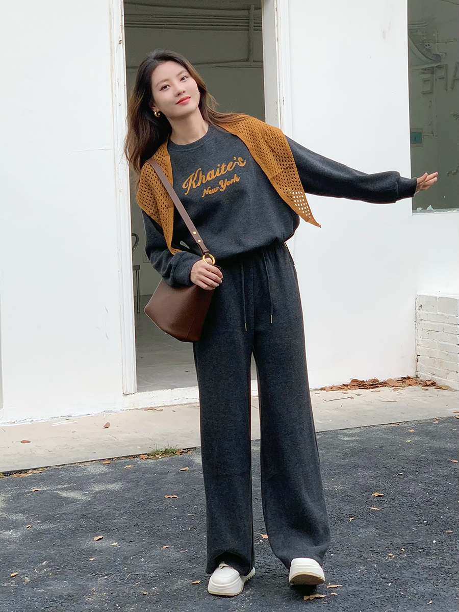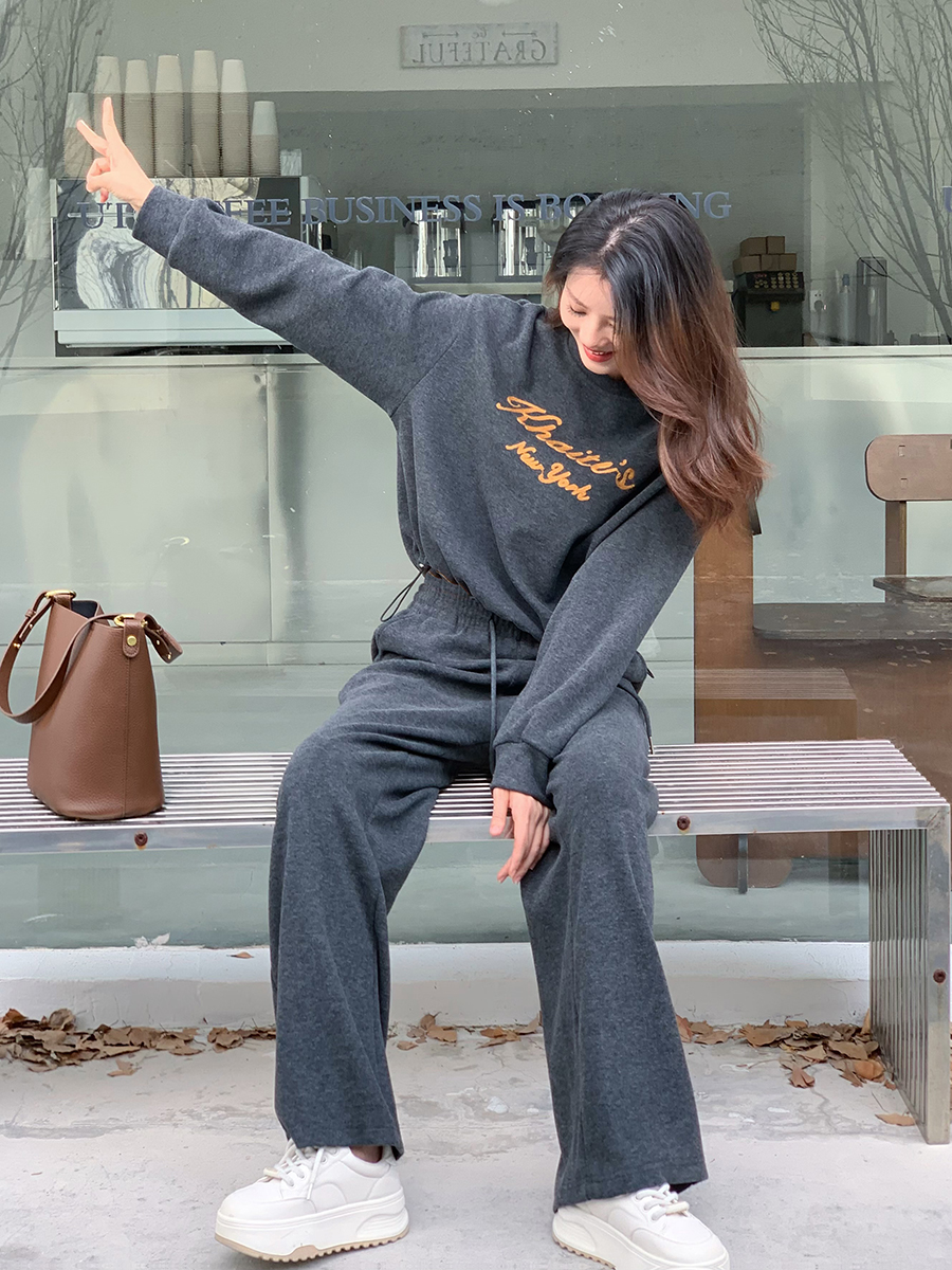 【百图lulu定制】【纽约慢行套装】【一套269元】赠披肩 软糯 下摆抽绳 短款上衣 弹力腰围 双口袋休闲裤 套装