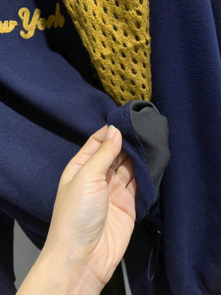卫衣下摆有抽绳,锁紧能防风