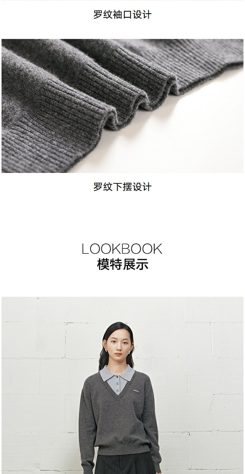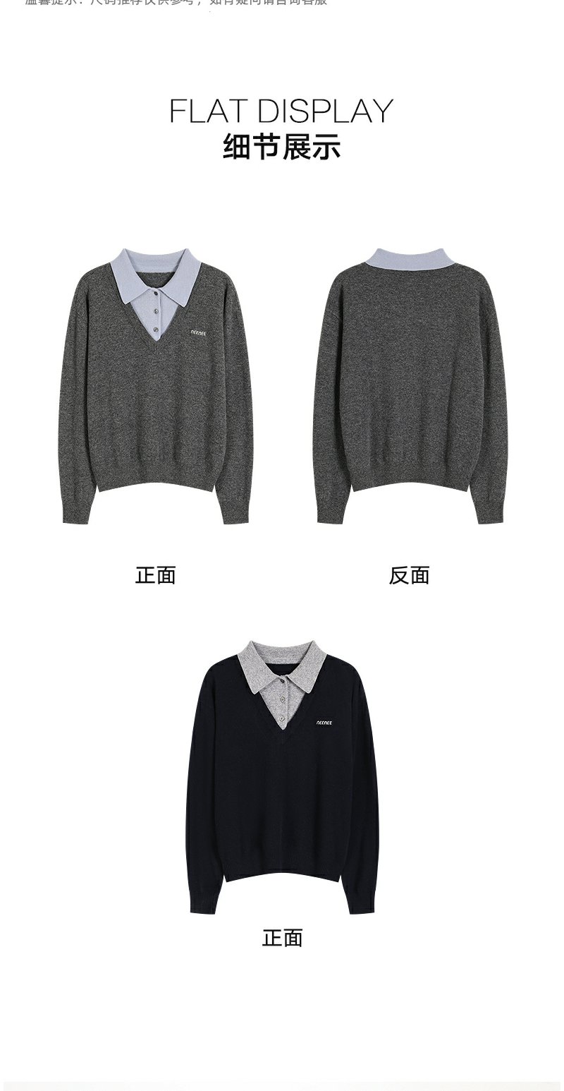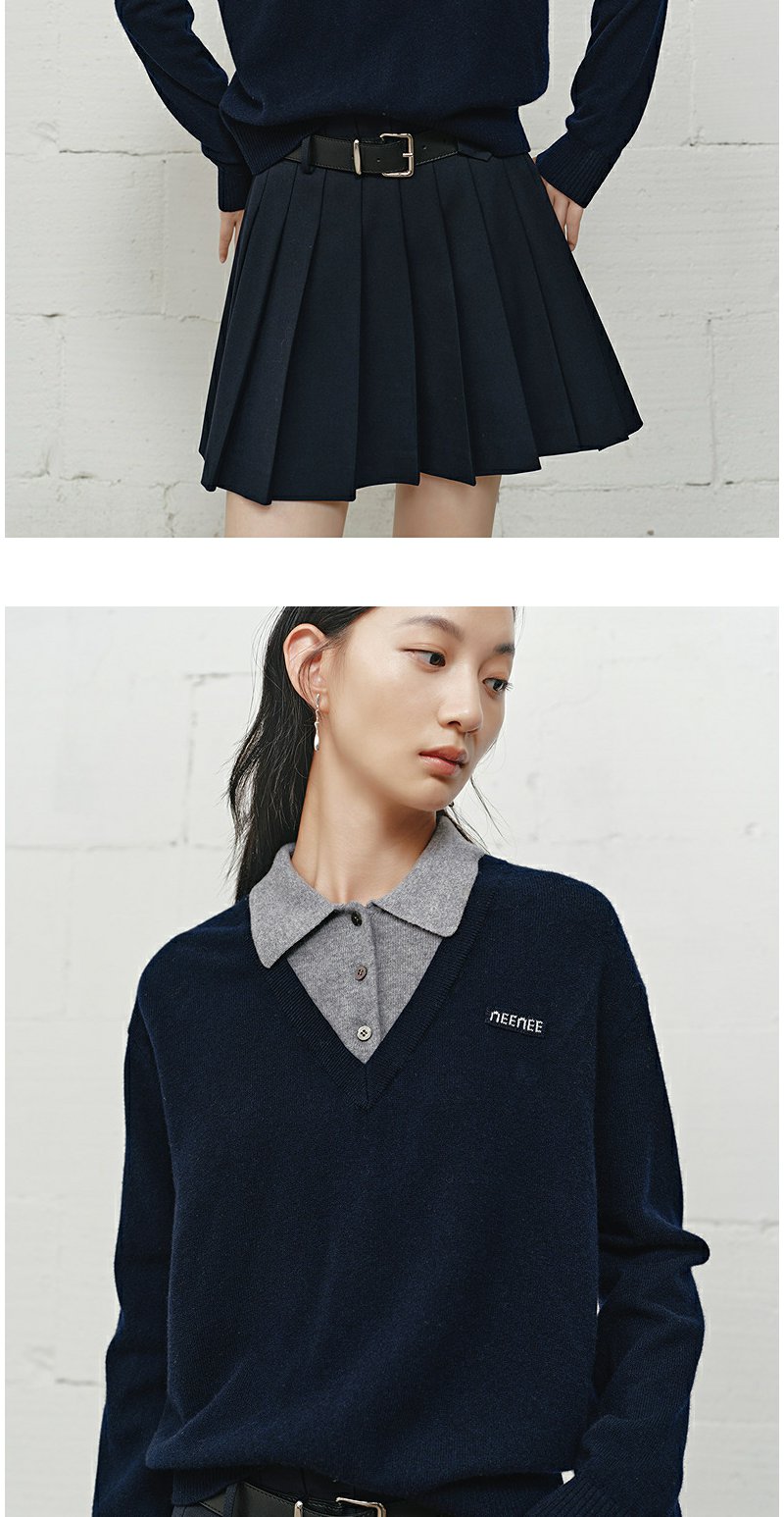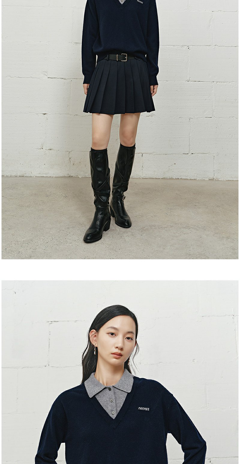 NEELLY纳俪商场同款冬季新款学院风显白宽松针织女撞色慵懒风上衣N25101A01001