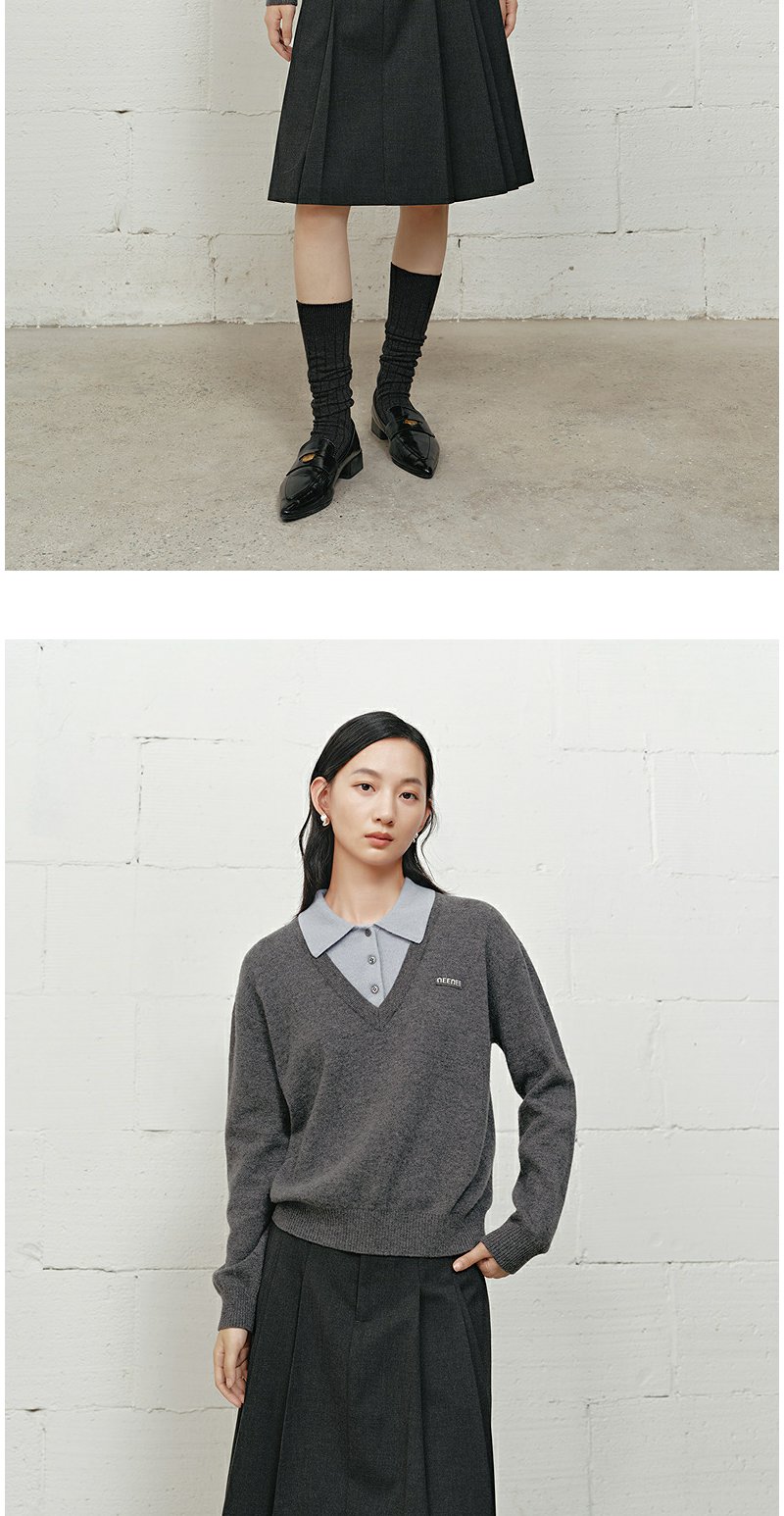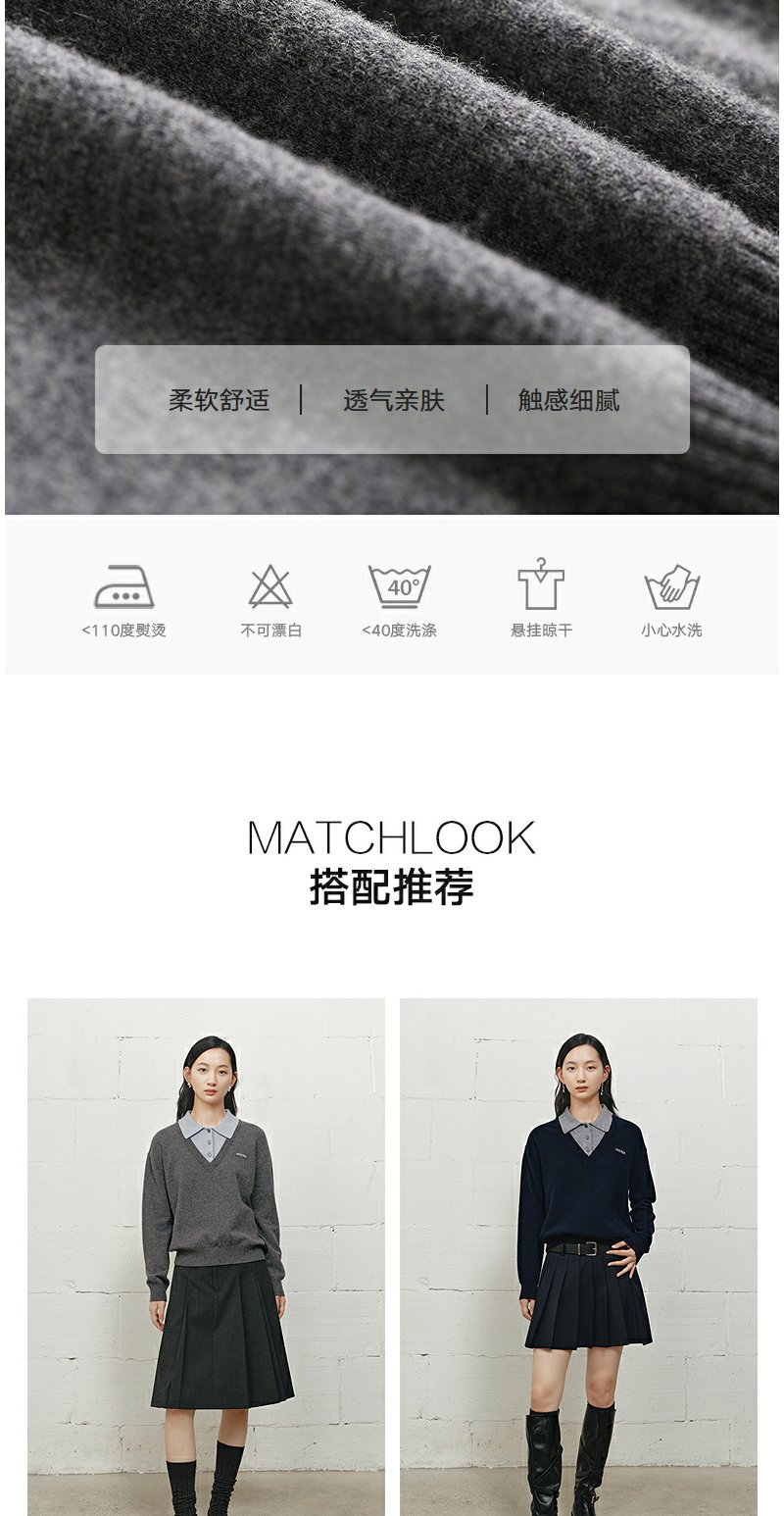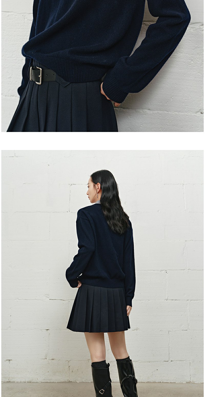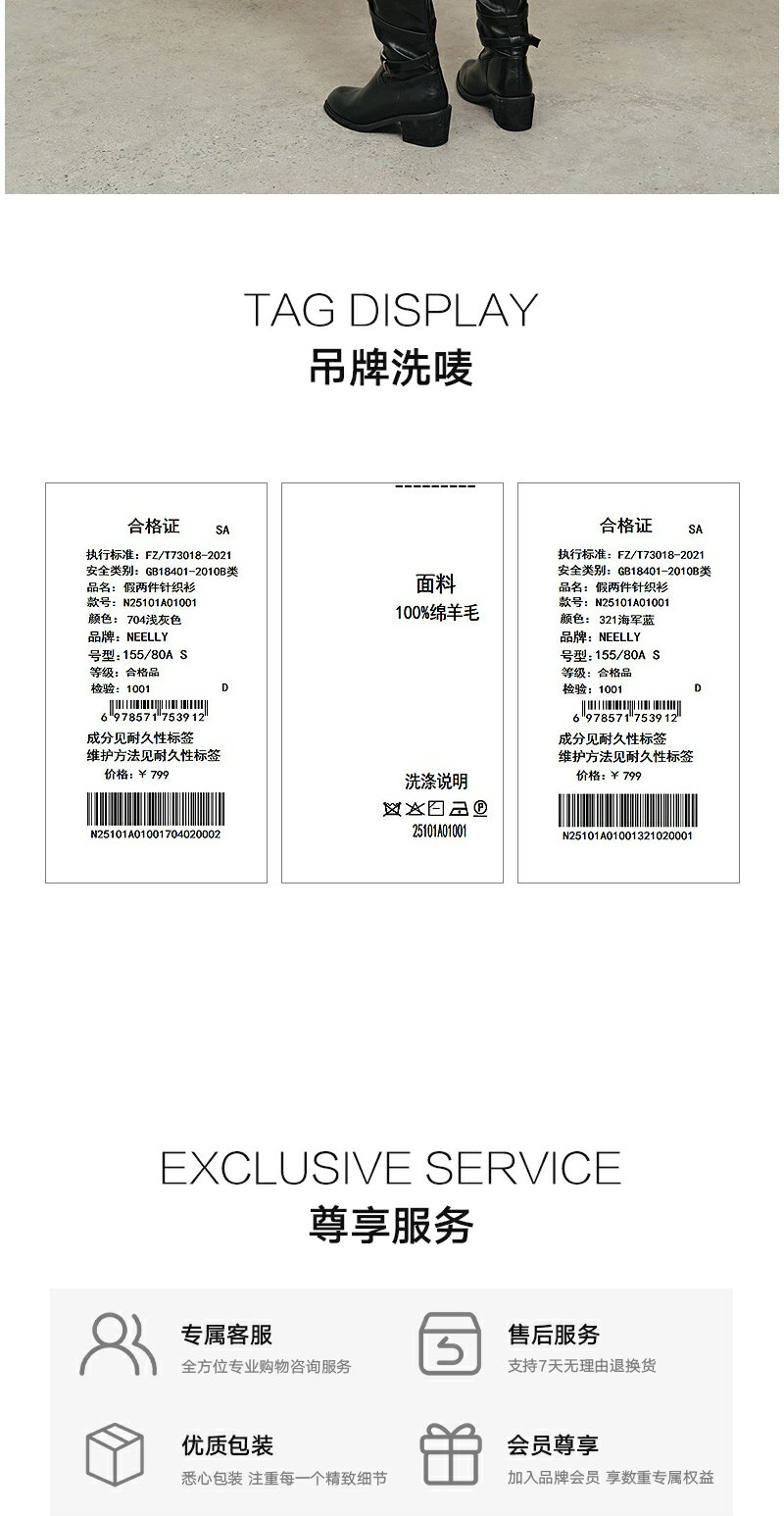 NEELLY纳俪商场同款冬季新款学院风显白宽松针织女撞色慵懒风上衣N25101A01001