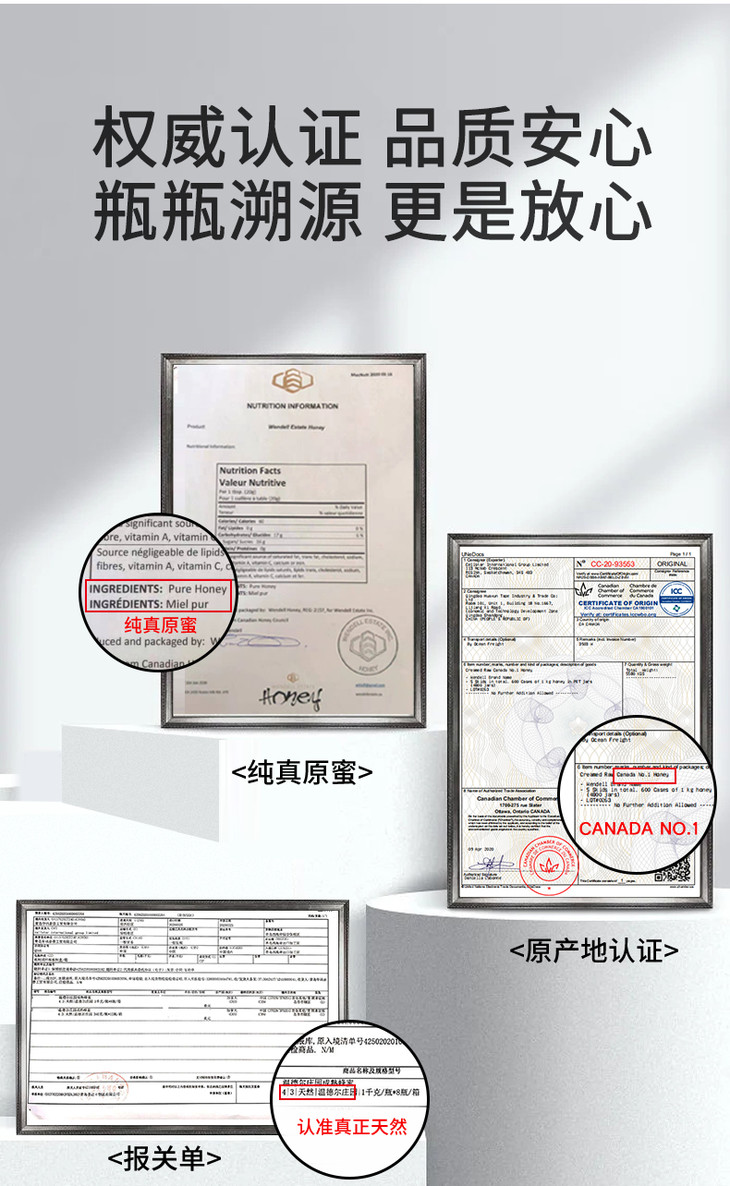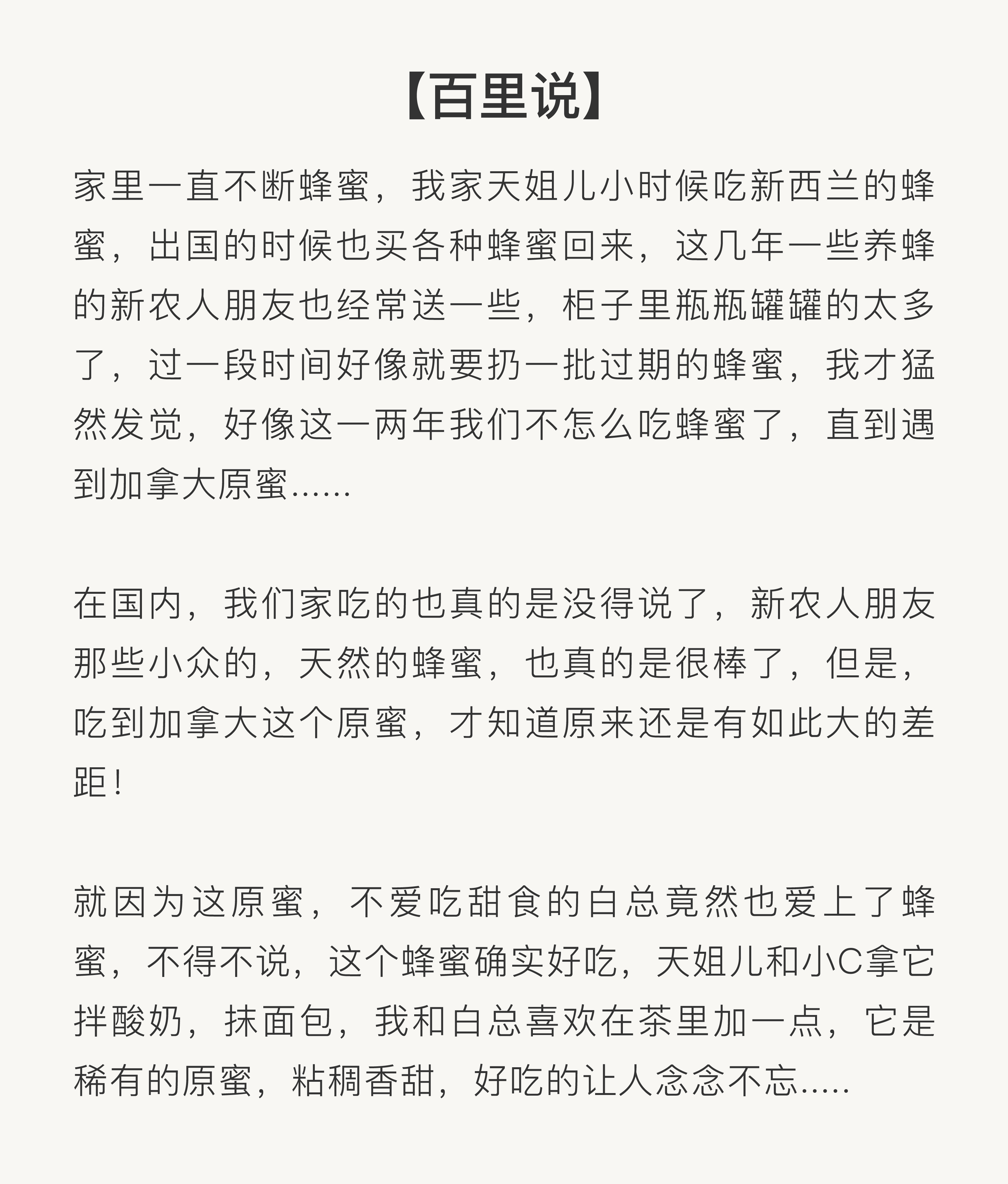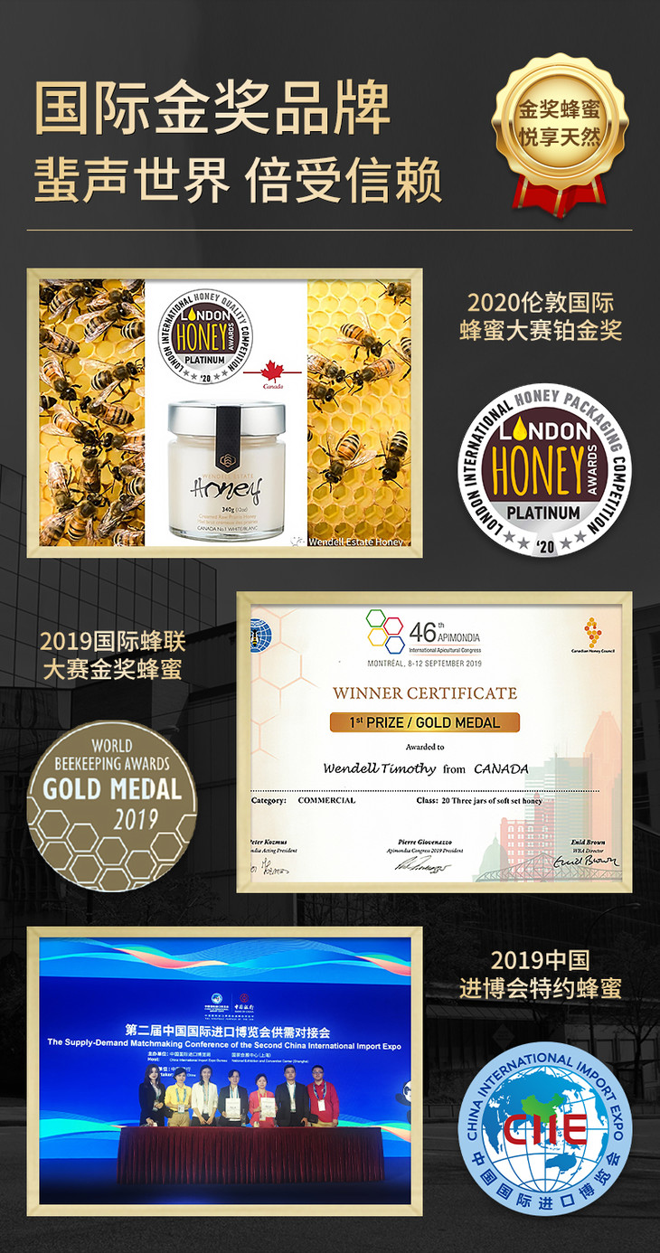 加拿大原产白蜜 原蜜 获多项国际大赛金奖 一年只产一次 粘稠香甜 无任何添加 原装进口 包邮 |百里食