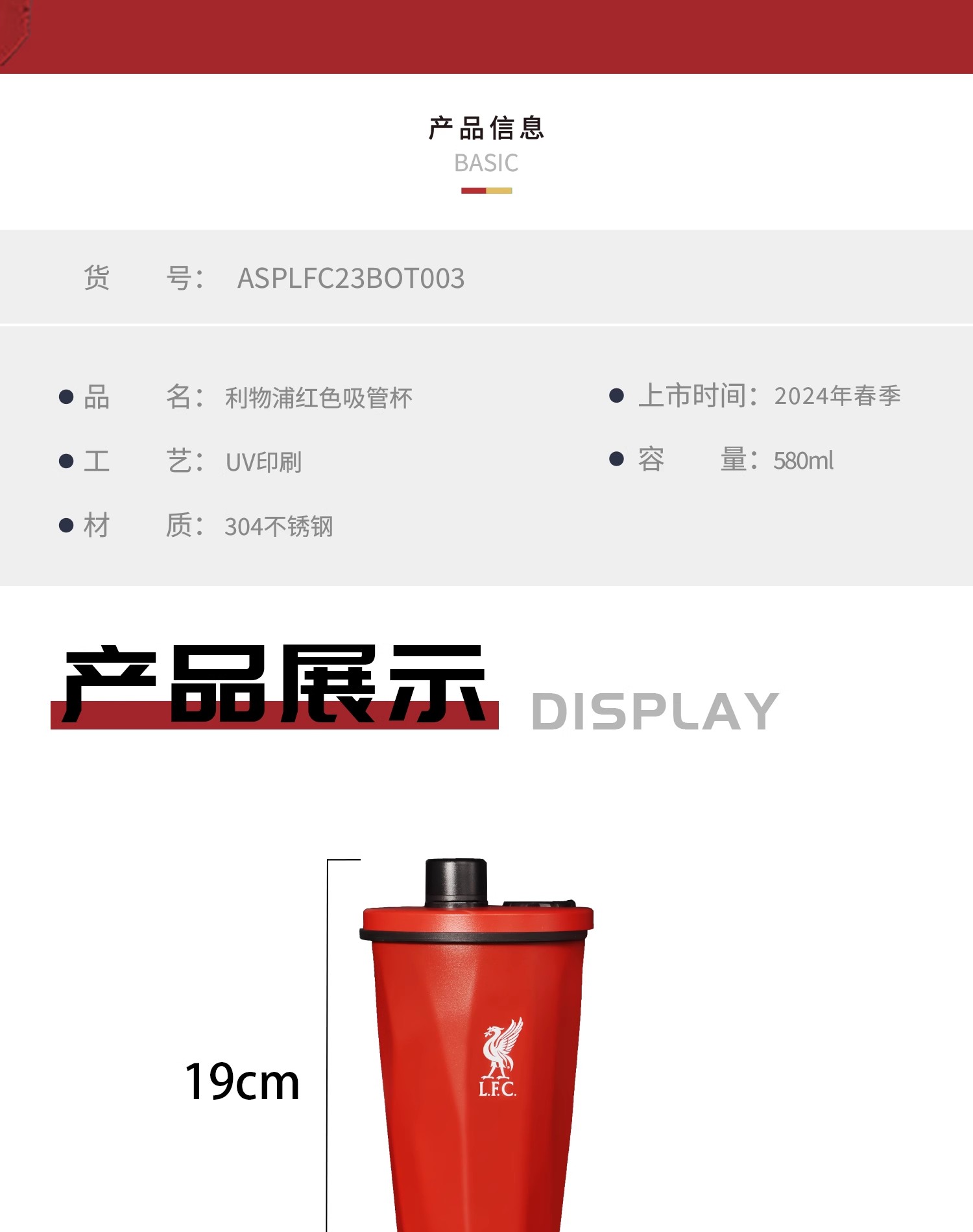 【官方正版】利物浦俱乐部 | 队徽红大容量保温吸管杯足球迷