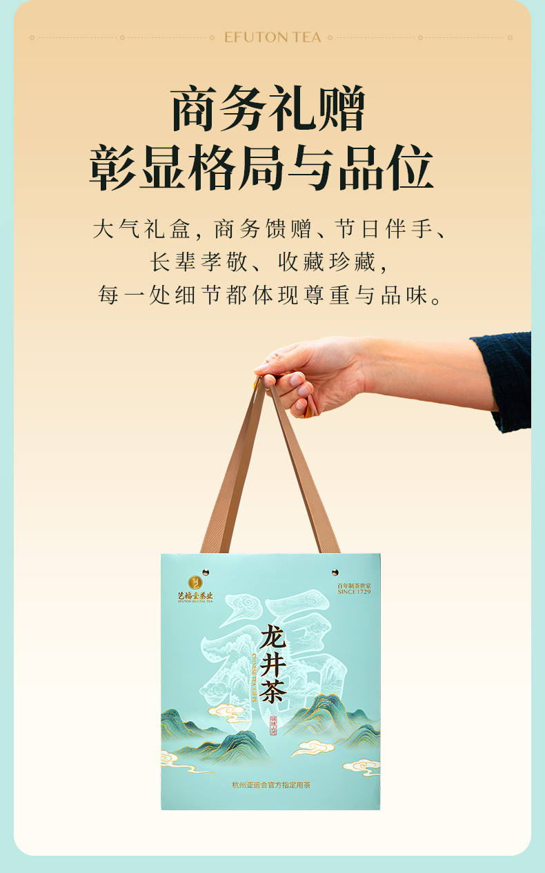“艺福堂茶业”创立于2008年,是一家集生产、销售、科研为一体的现代茶业企业,主打西湖龙井,兼营世界各地名优茗茶及花草茶,是中国茶行业为数不多的年销售额过5亿的品牌之一,是杭州亚运会官方指定用茶!