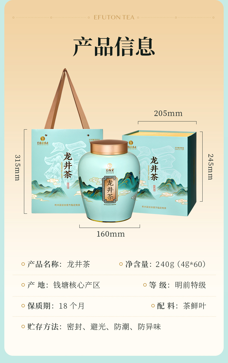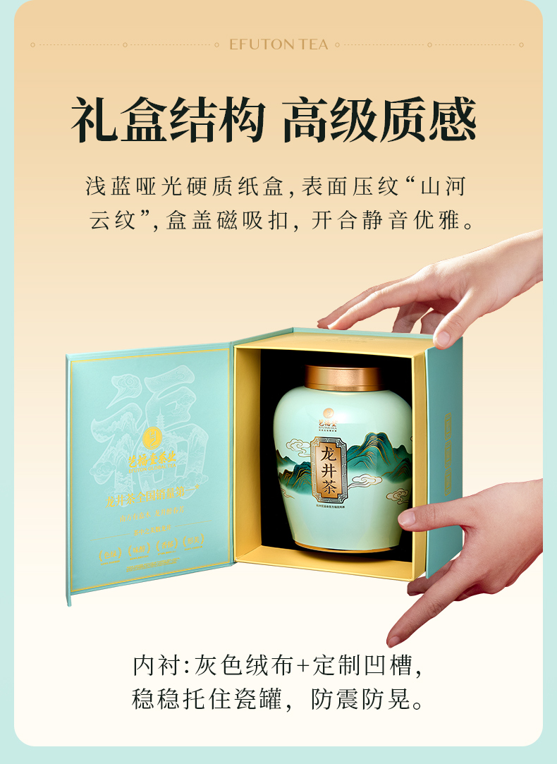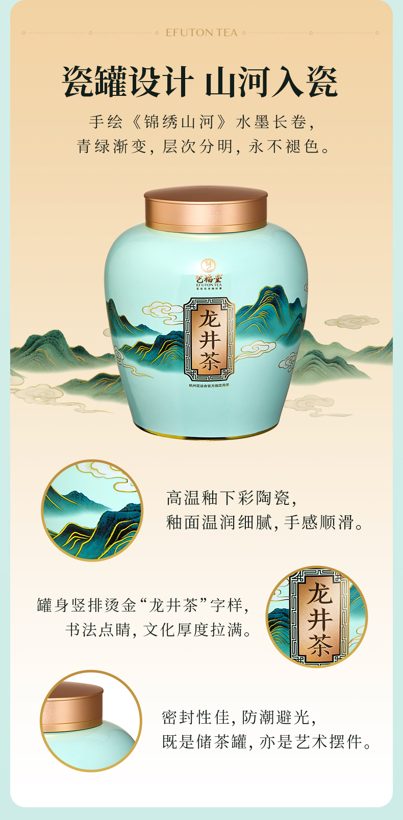 艺福堂龙井茶锦绣山河瓷罐礼盒240g