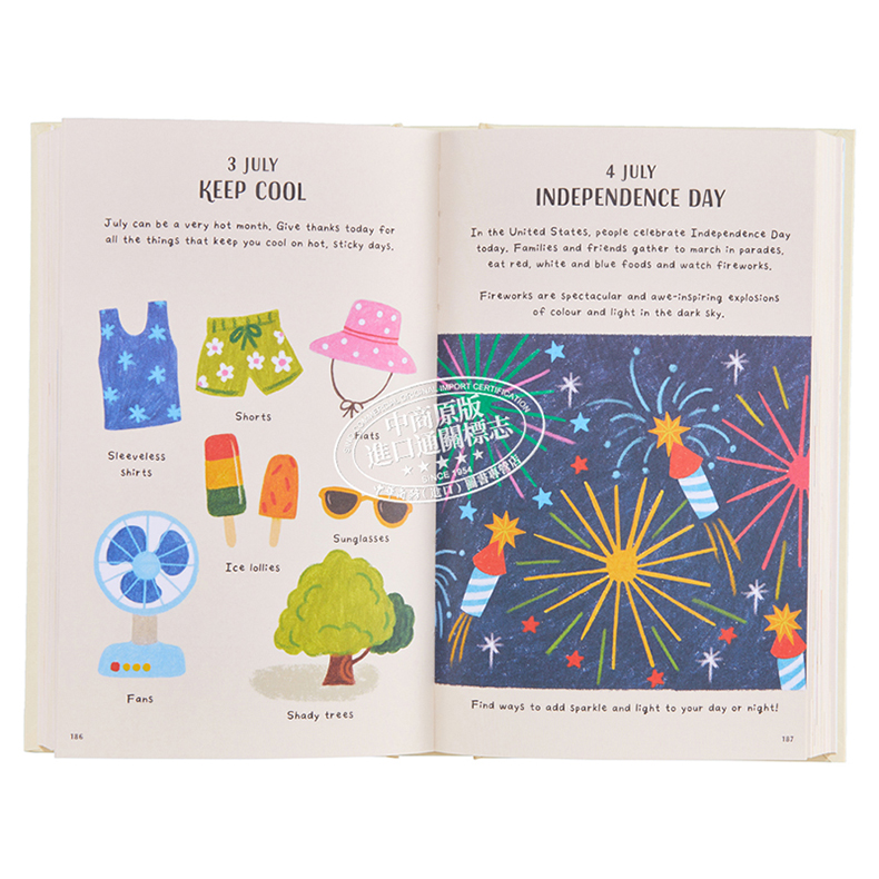 用这个口袋发现一年中每一天寻找快乐的不同方式 -大小书庆祝带来巨大欢乐的小事。在名人生日时受到名人的启发;学习如何在每个季节发现和寻找花朵;创建自己的感恩罐;学习如何制作糕点;给你爱的人做礼物;发现写信的乐趣;并在下雨天找到快乐。每一页都充满了艺术活动、著名的生日、发明、国际假期、事实和关于我们周围世界的琐事,每一页都提供了一个用心的提示来鼓励我们每天对我们所拥有的事物表示感谢。