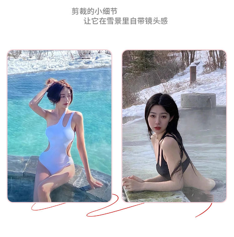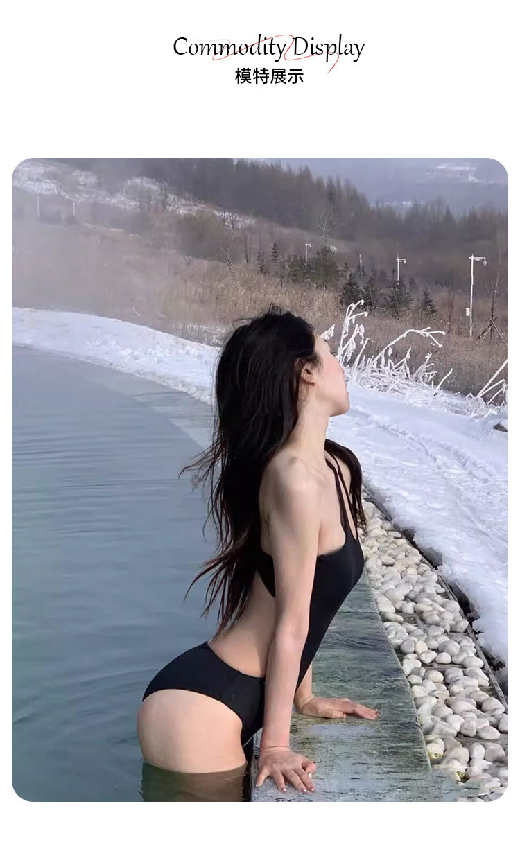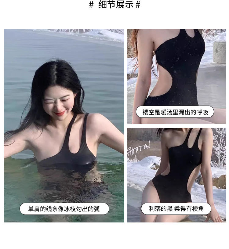 【单肩露背!黑色显瘦剪裁立体】冬日温泉服,女性感连体泳衣,黑色复古比基尼,小胸聚拢,露背女士泡温泉