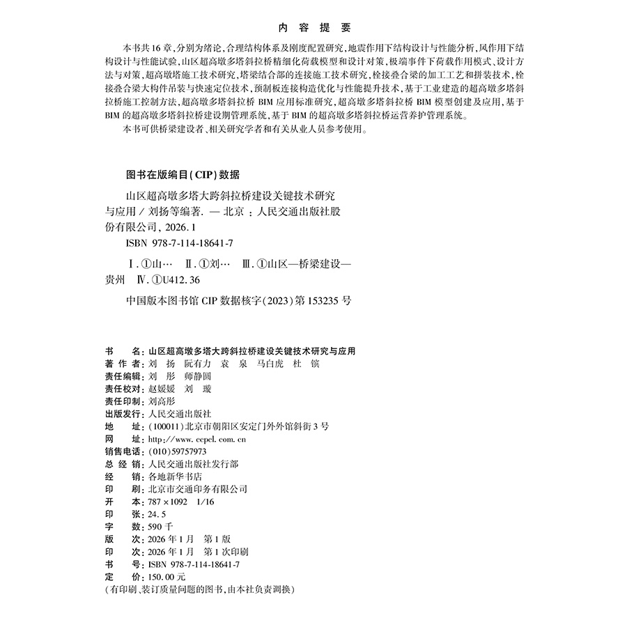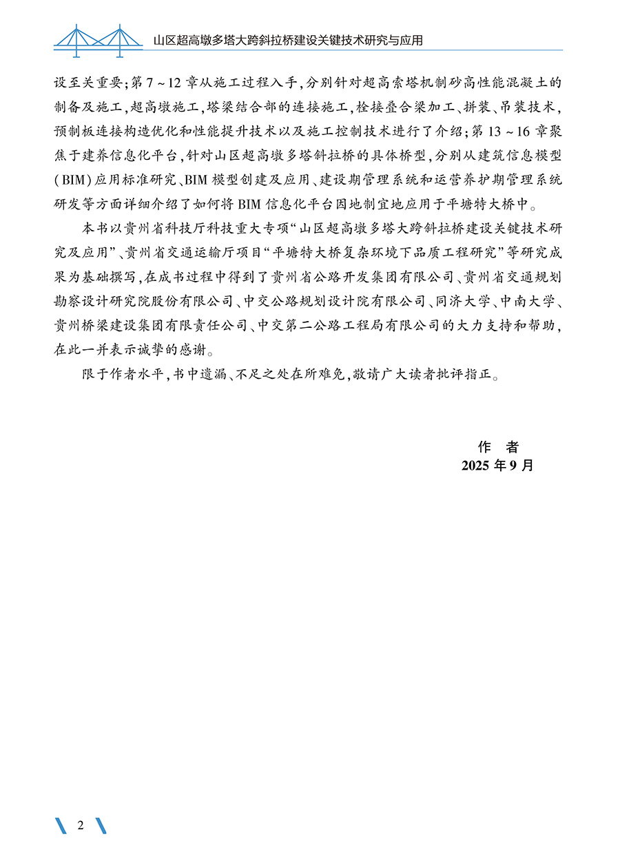 书名:山区超高墩多塔大跨斜拉桥建设关键技术研究与应用