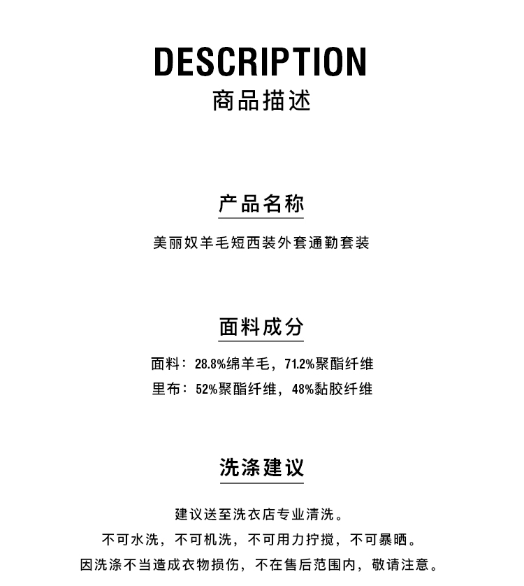 HIDEMI 美利奴羊毛短西装外套通勤上衣阔腿西八分裤套装