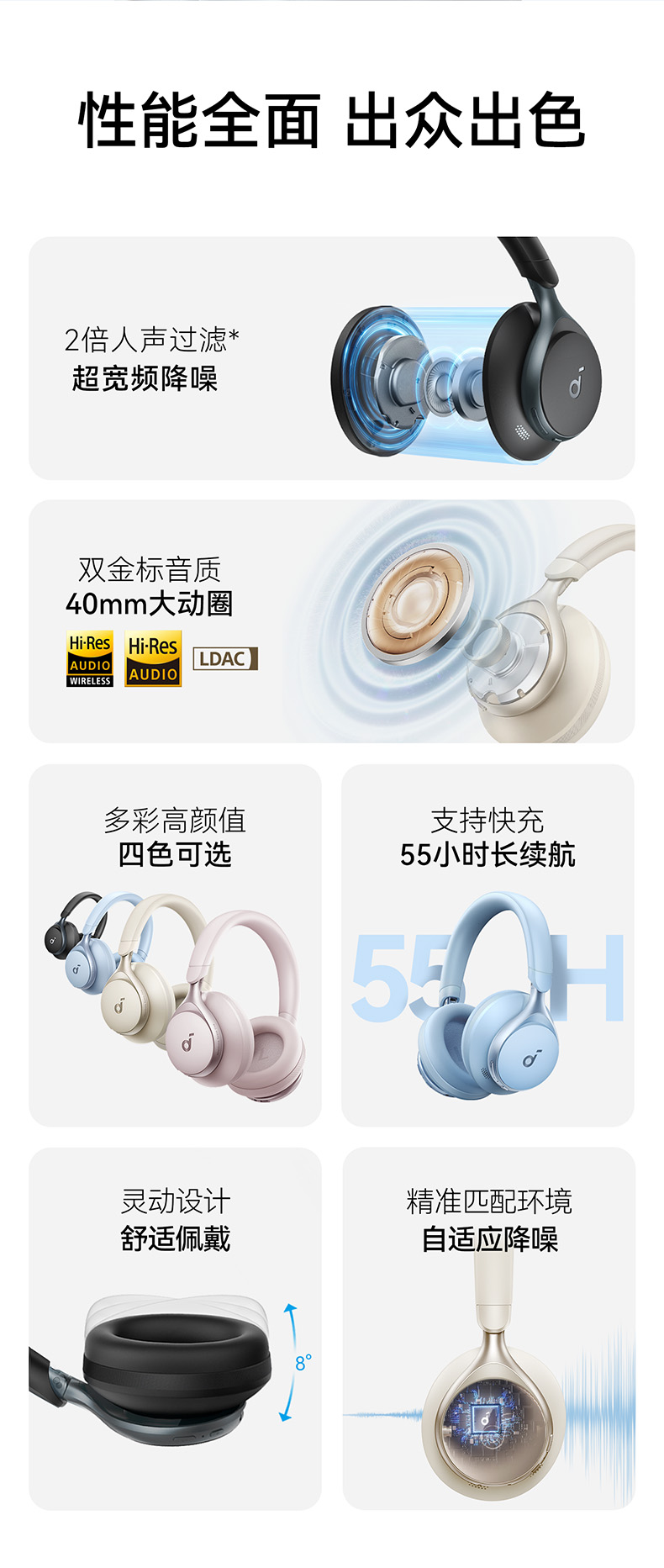 【热销】Soundcore声阔 SpaceOne漫游 S1头戴式无线蓝牙耳机 A3035