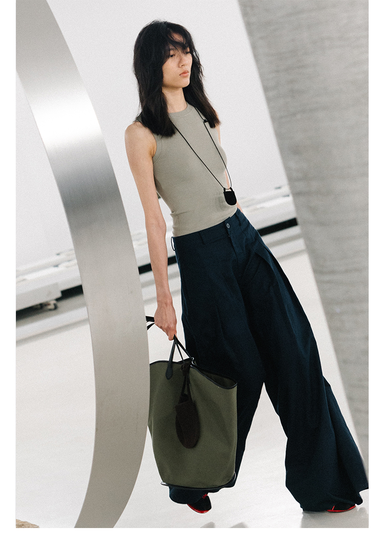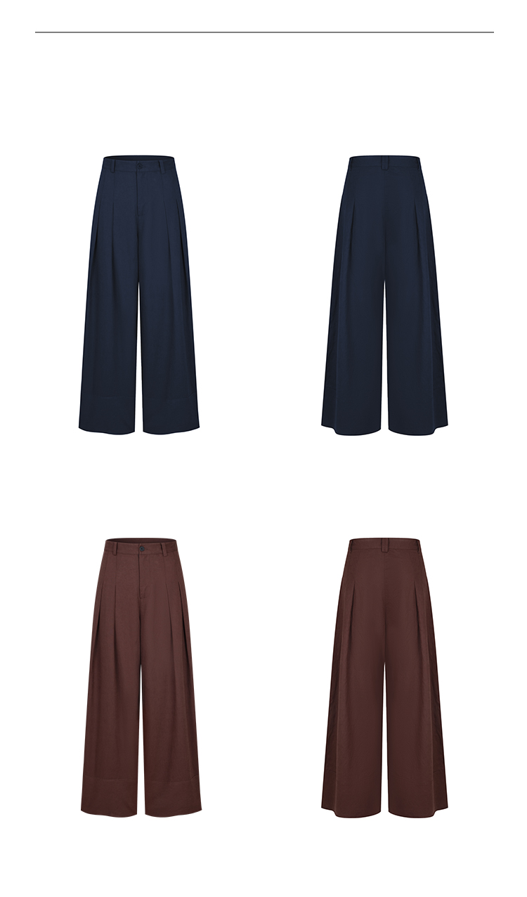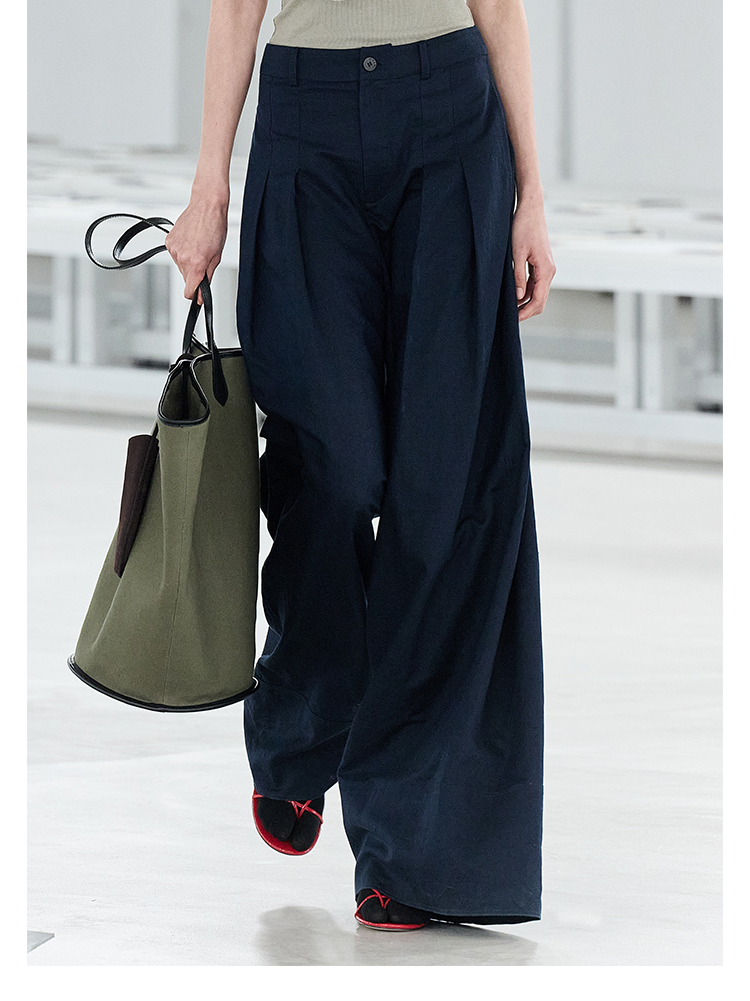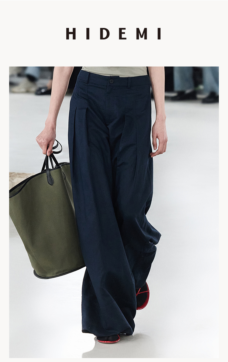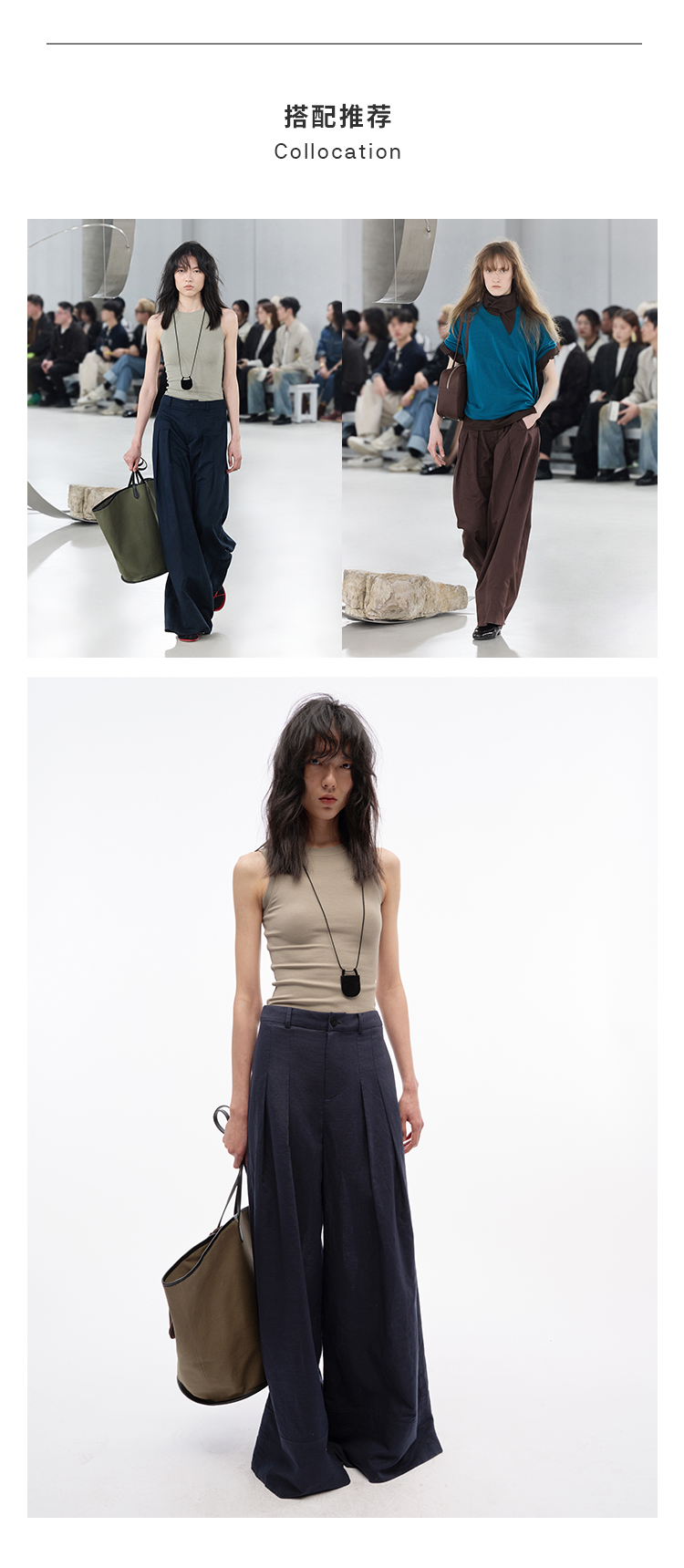 HIDEMI 【超模裤】极简自然水洗亚麻廓形高腰休闲阔腿裤休闲长裤
