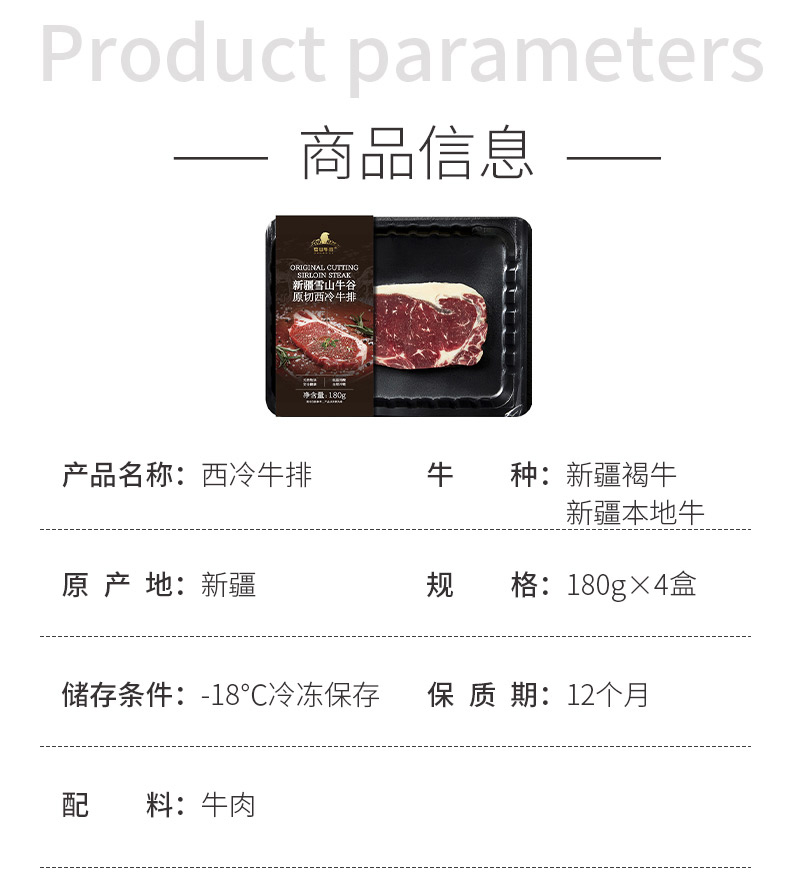 【冷冻】【雪山牛谷】新疆精选原切西冷牛排180g*3盒/4盒