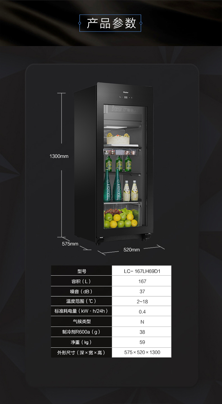 海尔(Haier)冰吧 LC-167LH69D1钢琴黑