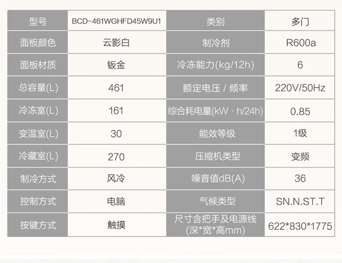 海尔(Haier) 冰箱 BCD-461WGHFD45W9U1