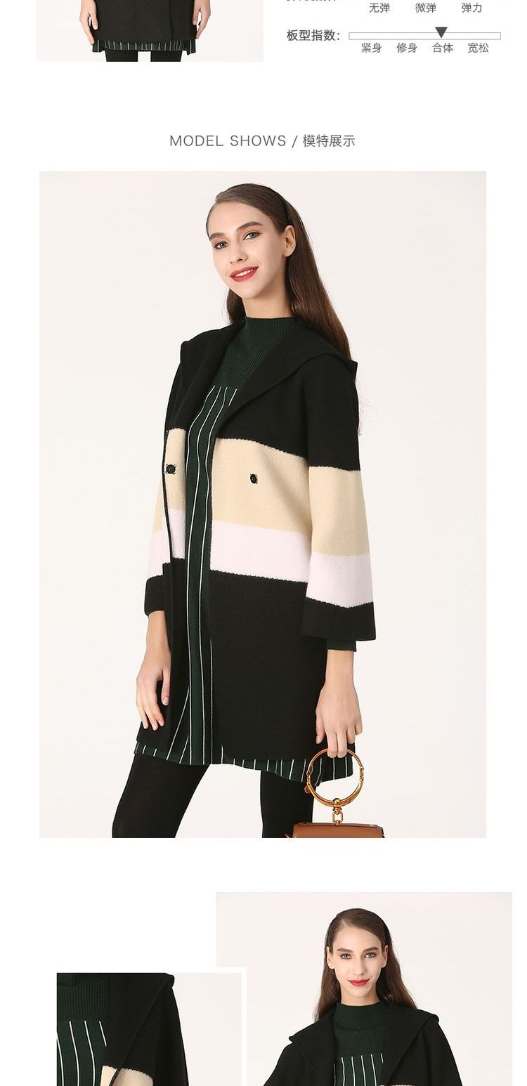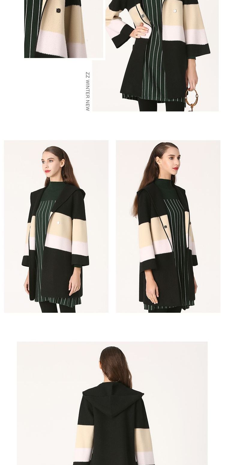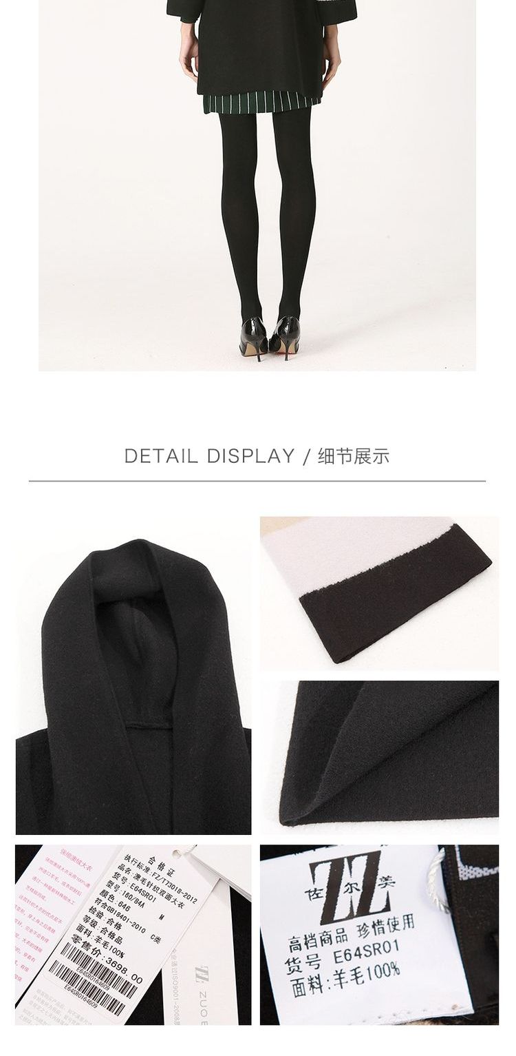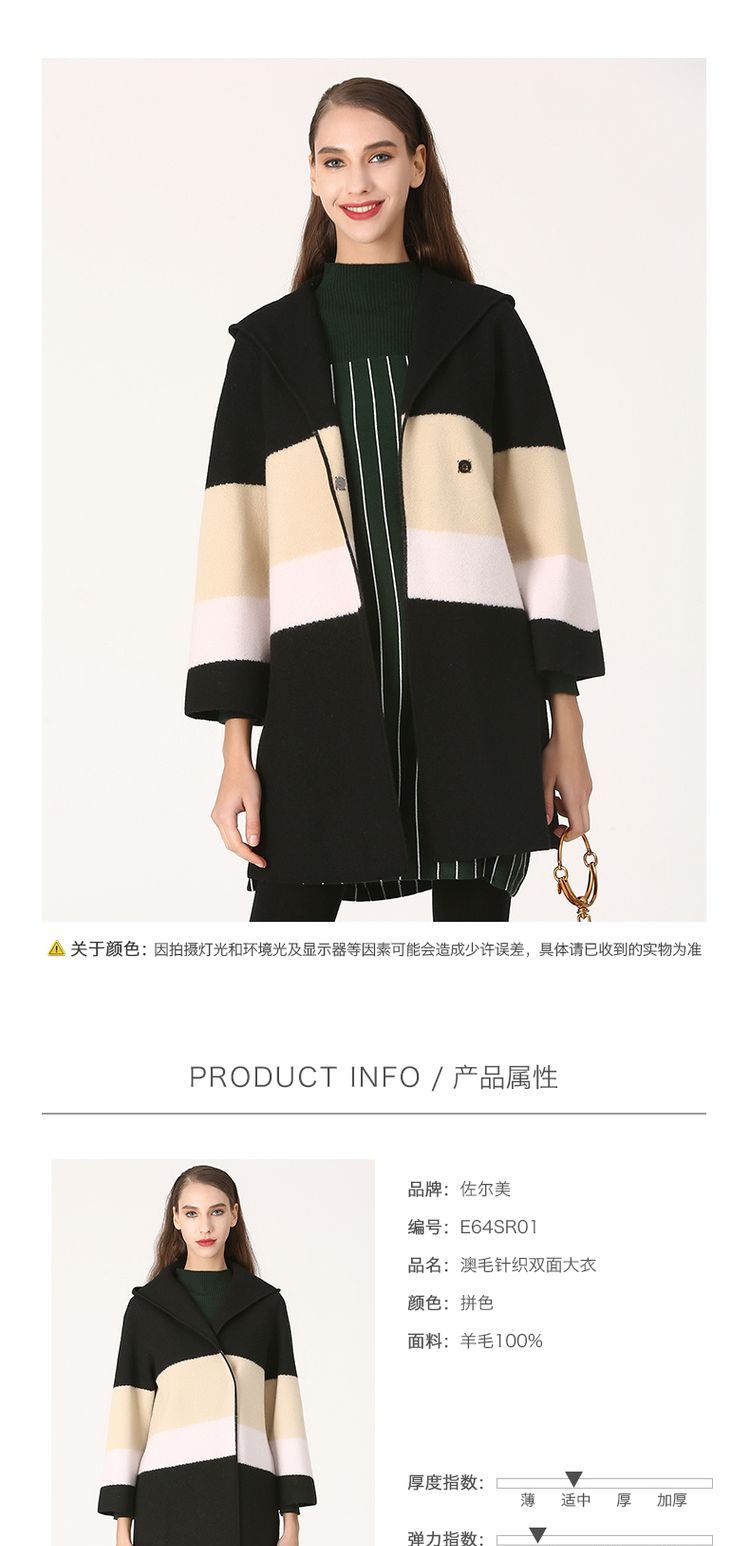 佐尔美冬季女装拼色百搭针织羊毛呢子大衣外套双面呢E64SR01