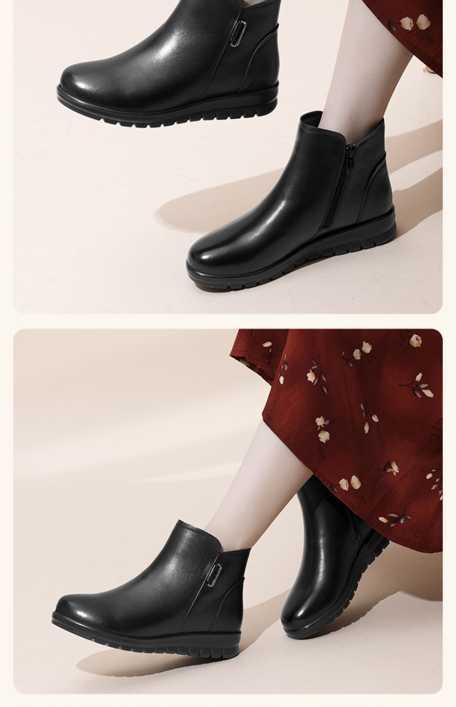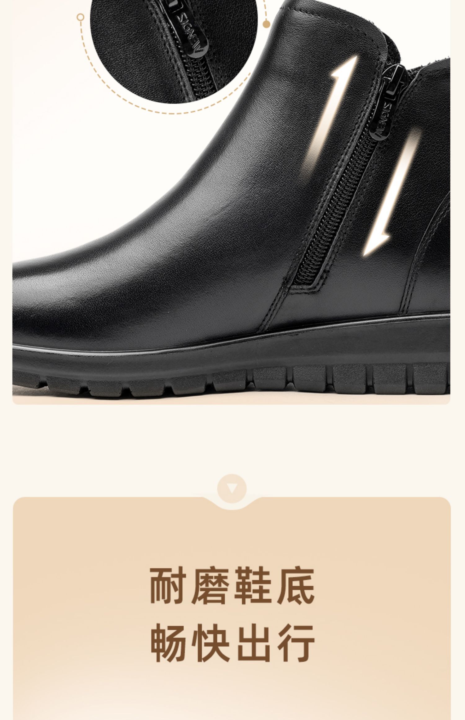 信诺真皮厚底短靴女款舒适加绒靴子2024冬季新款妈妈棉鞋软底女鞋M739-5D