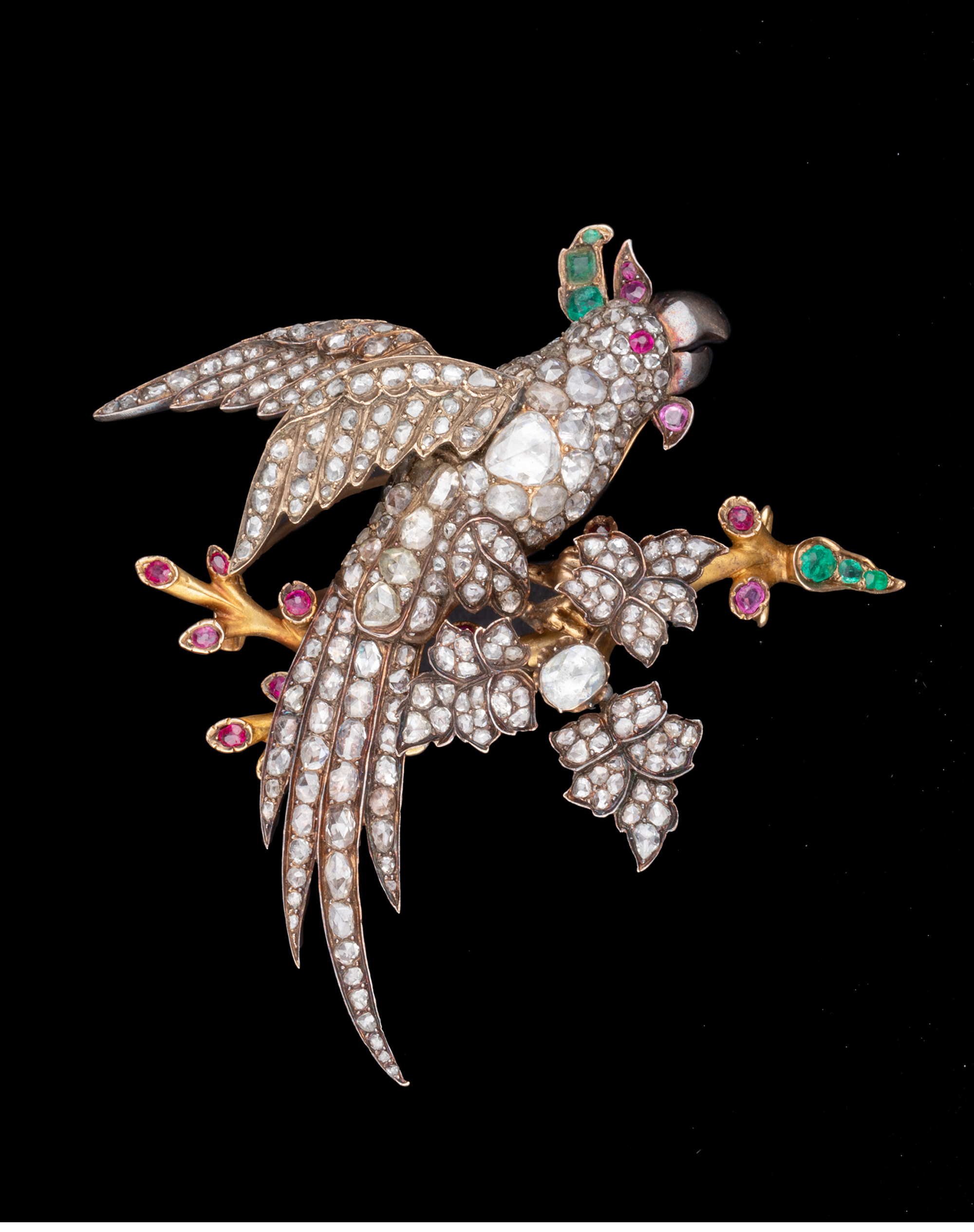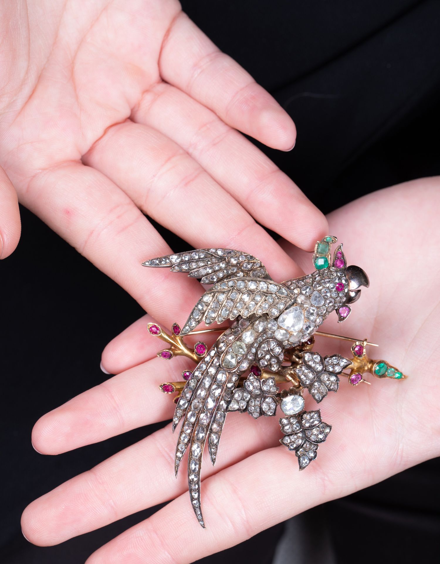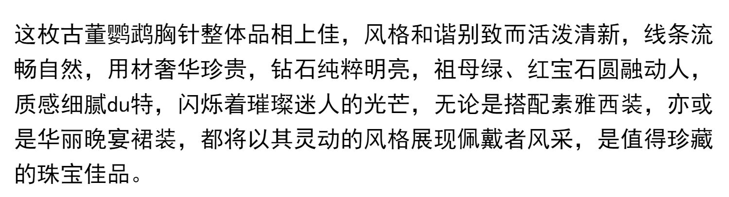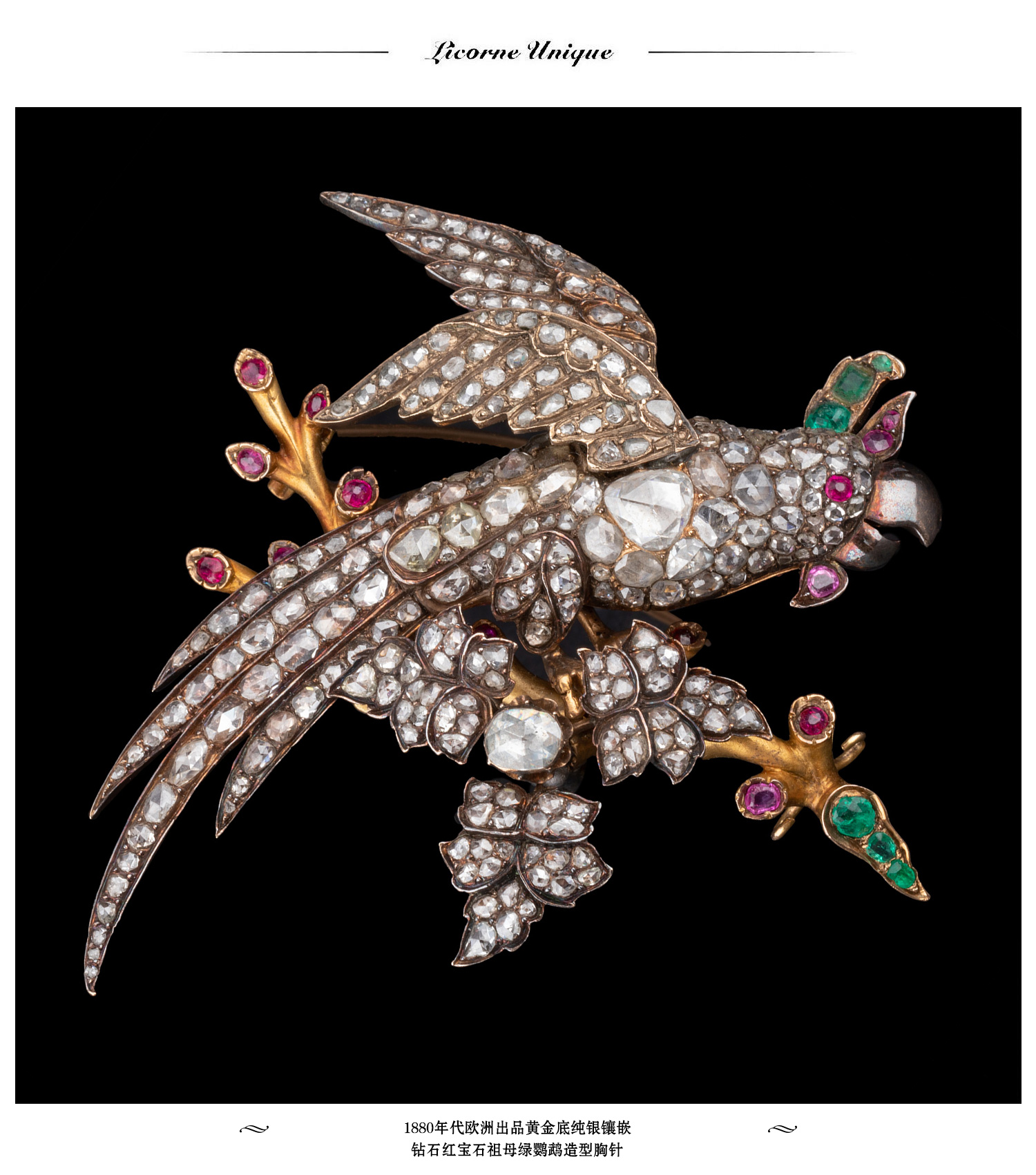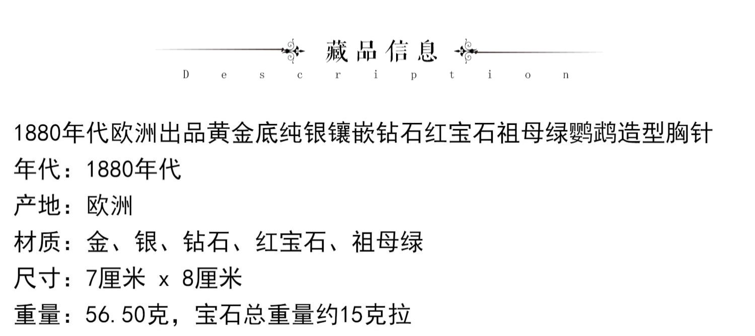独角鹿西洋古董珠宝首饰黄金纯银镶钻石红宝石祖母绿鹦鹉造型胸针